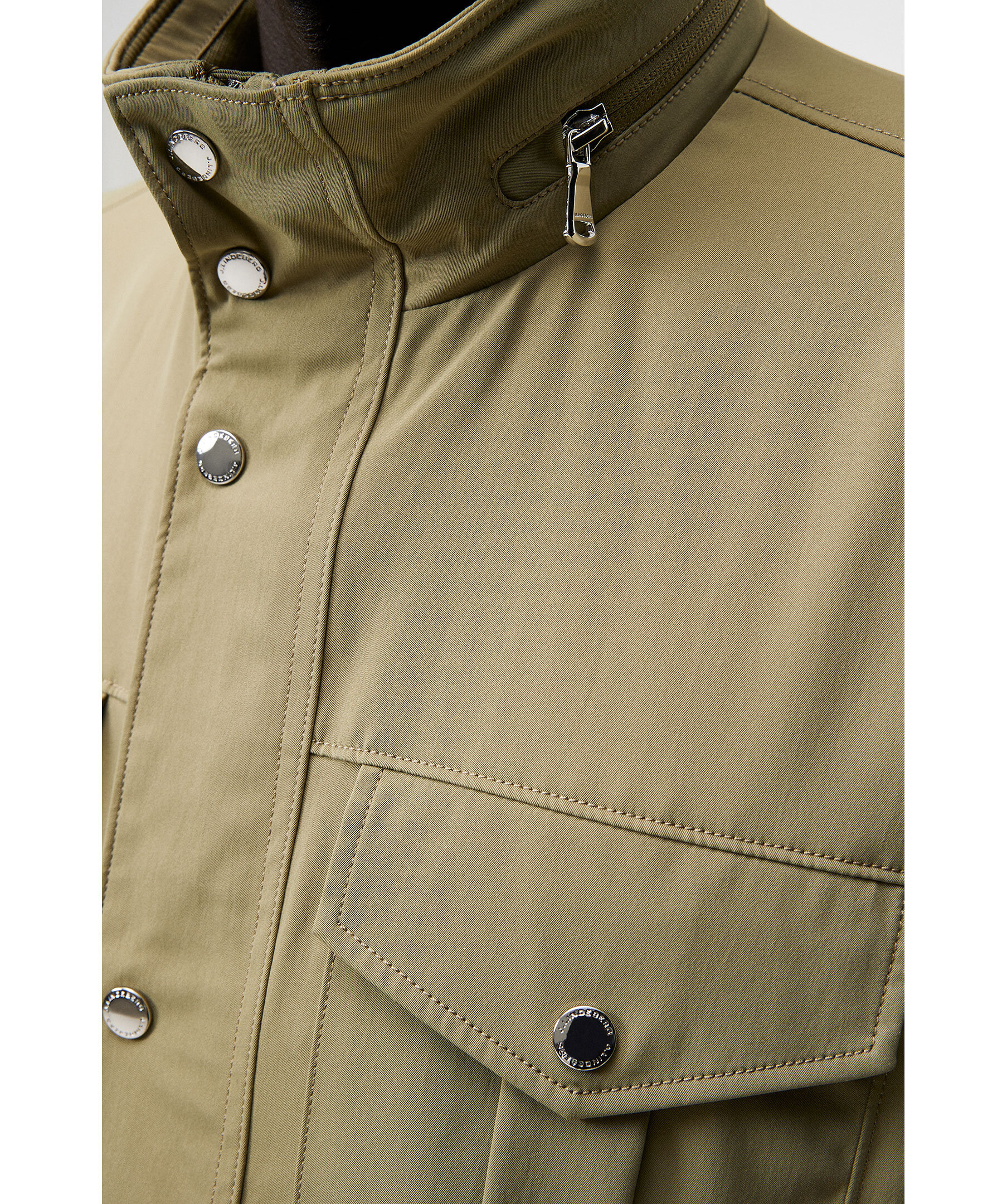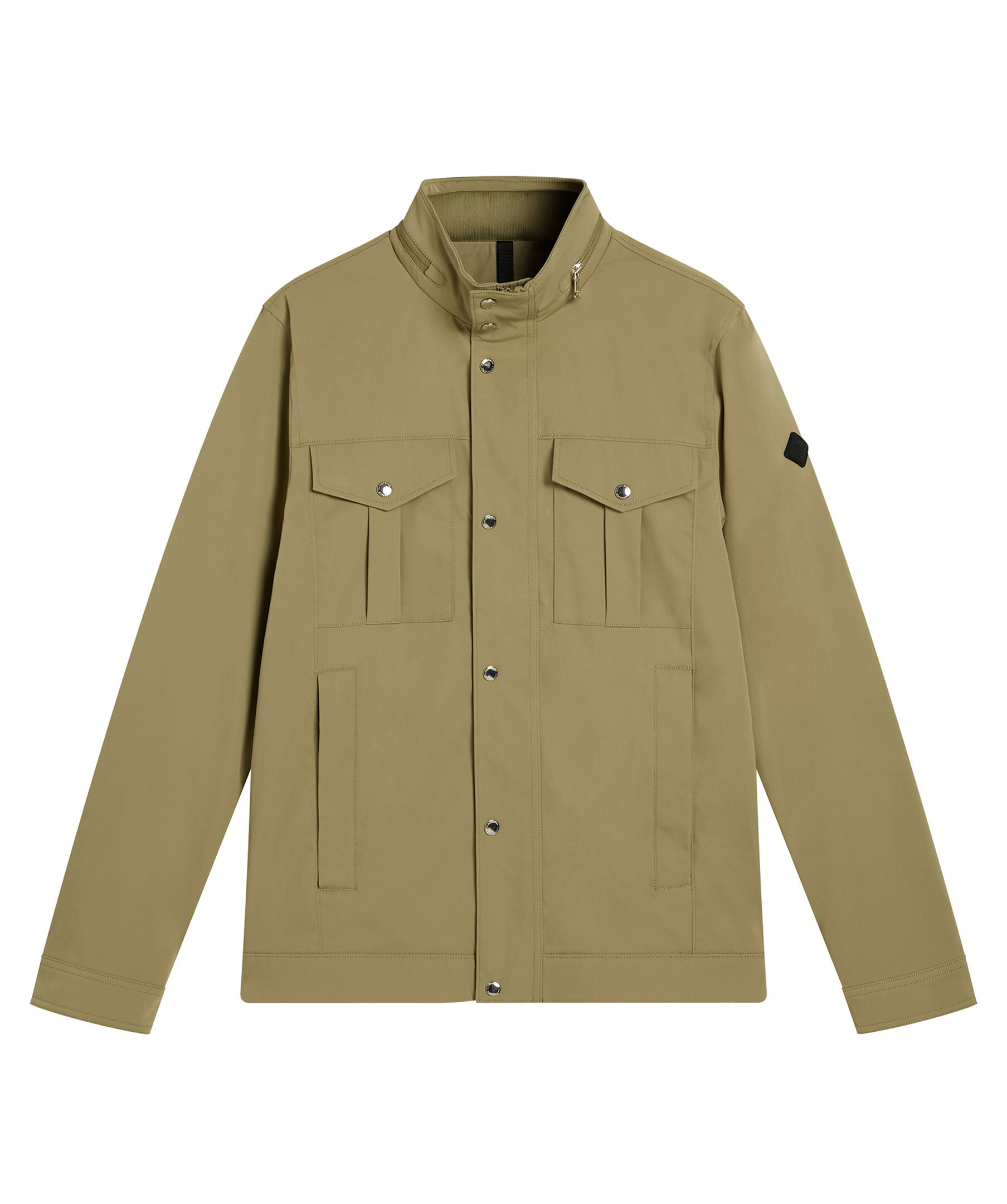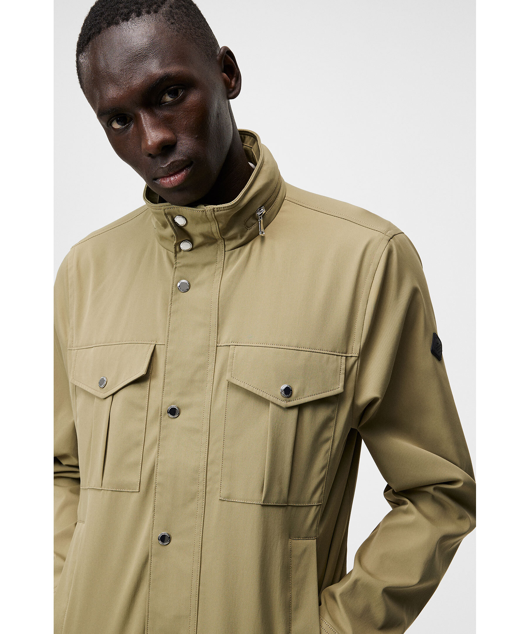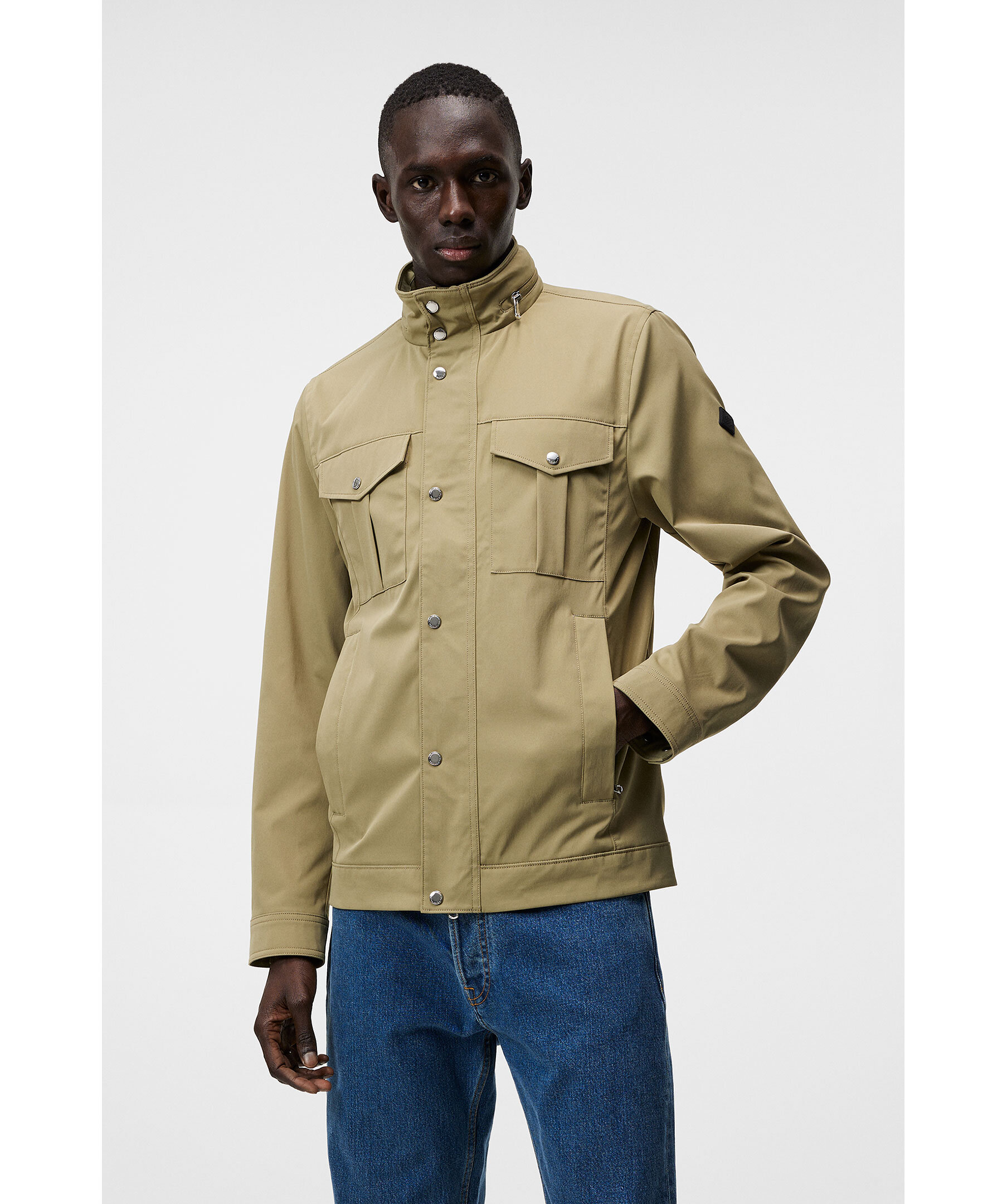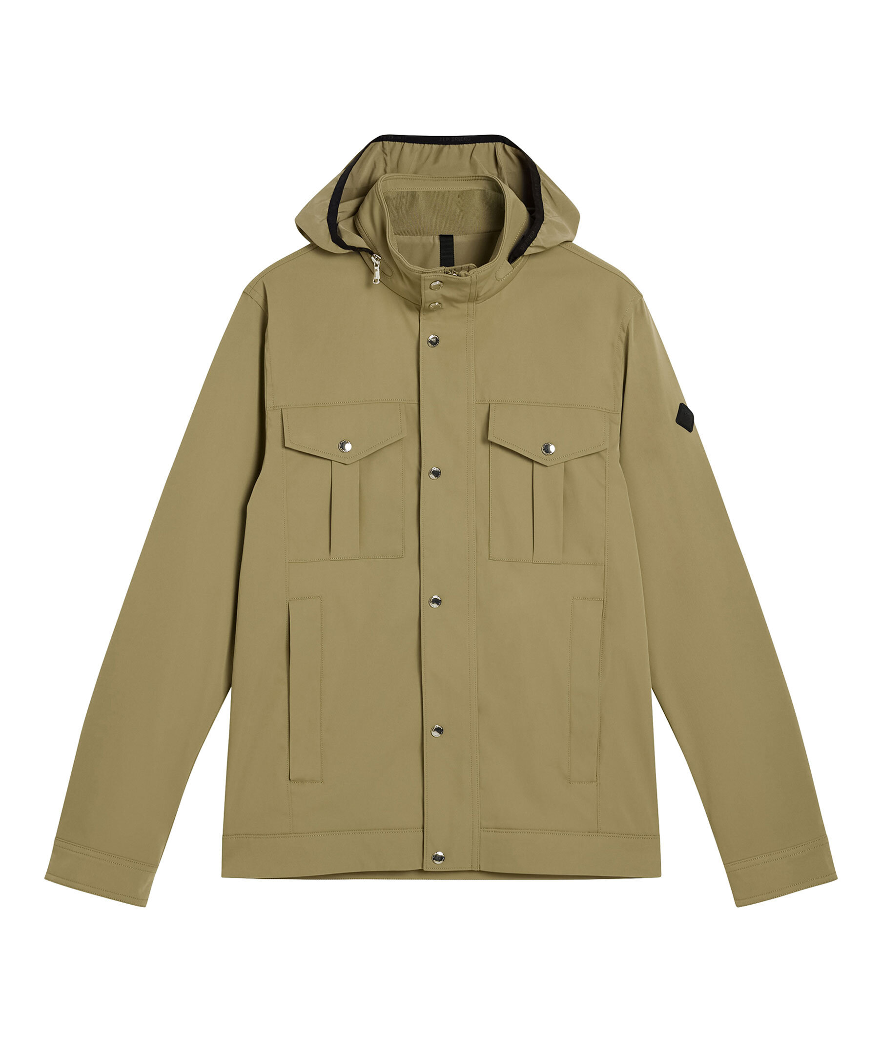Grön jacka från J.Lindeberg med vattenavvisande yttre, tvåvägsdragkedja, knappslå och flertal praktiska fickor. Hög krage med uttagbar huva i kragen. Logotyp på ena ärmen. Tunt fodrad.
