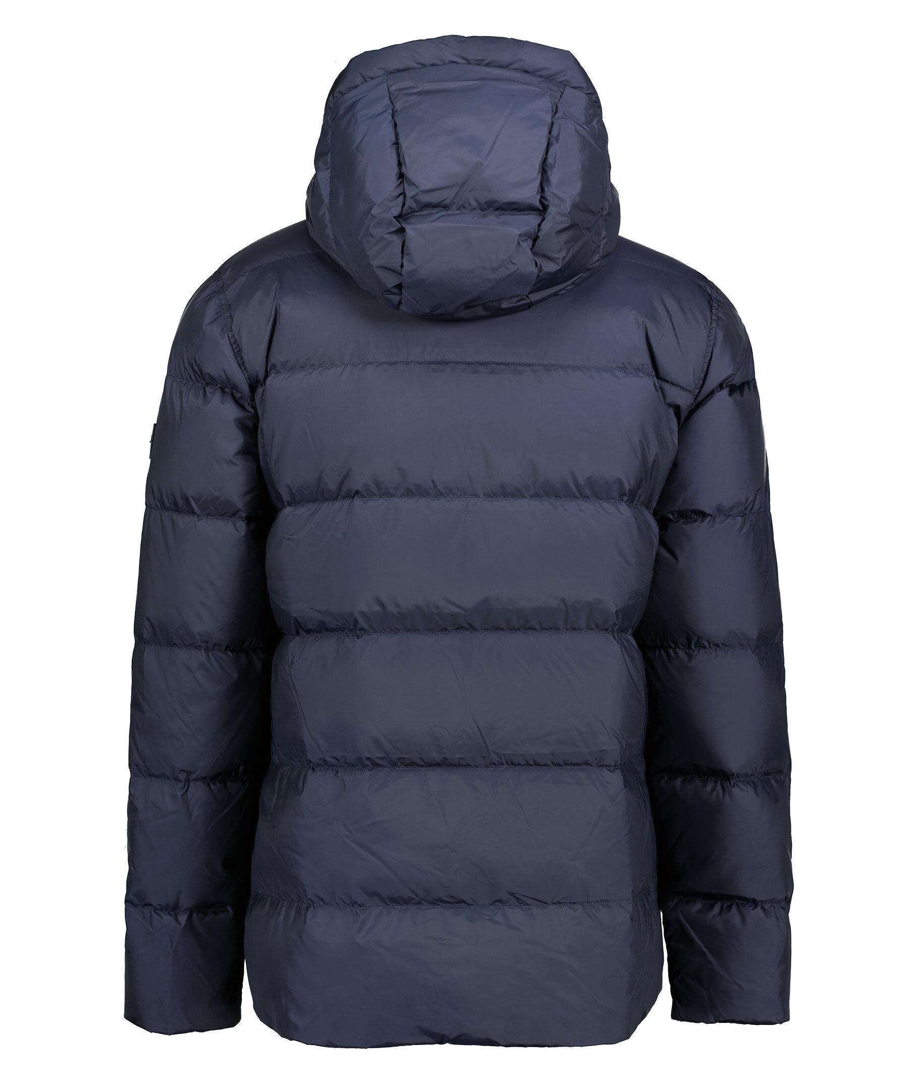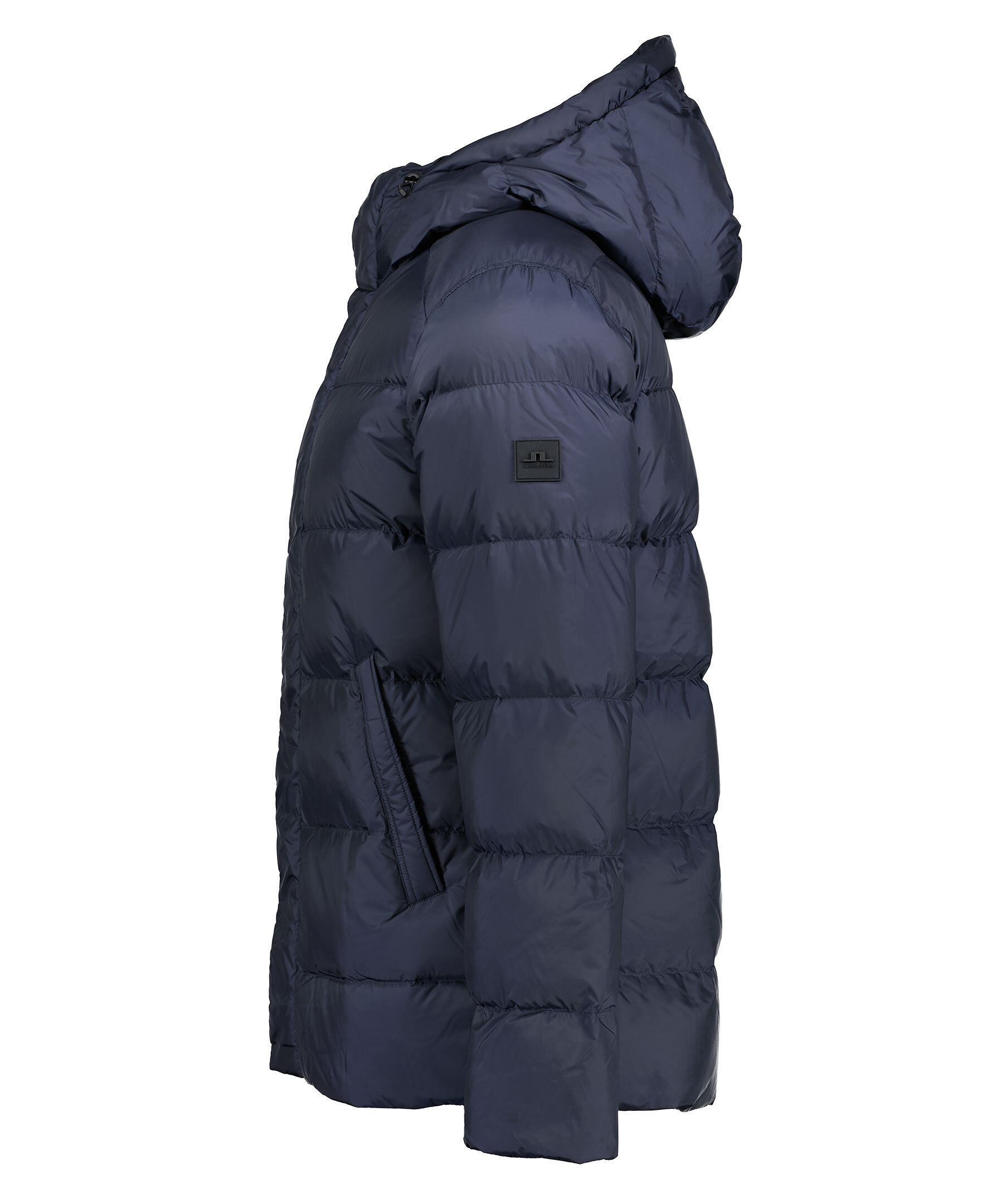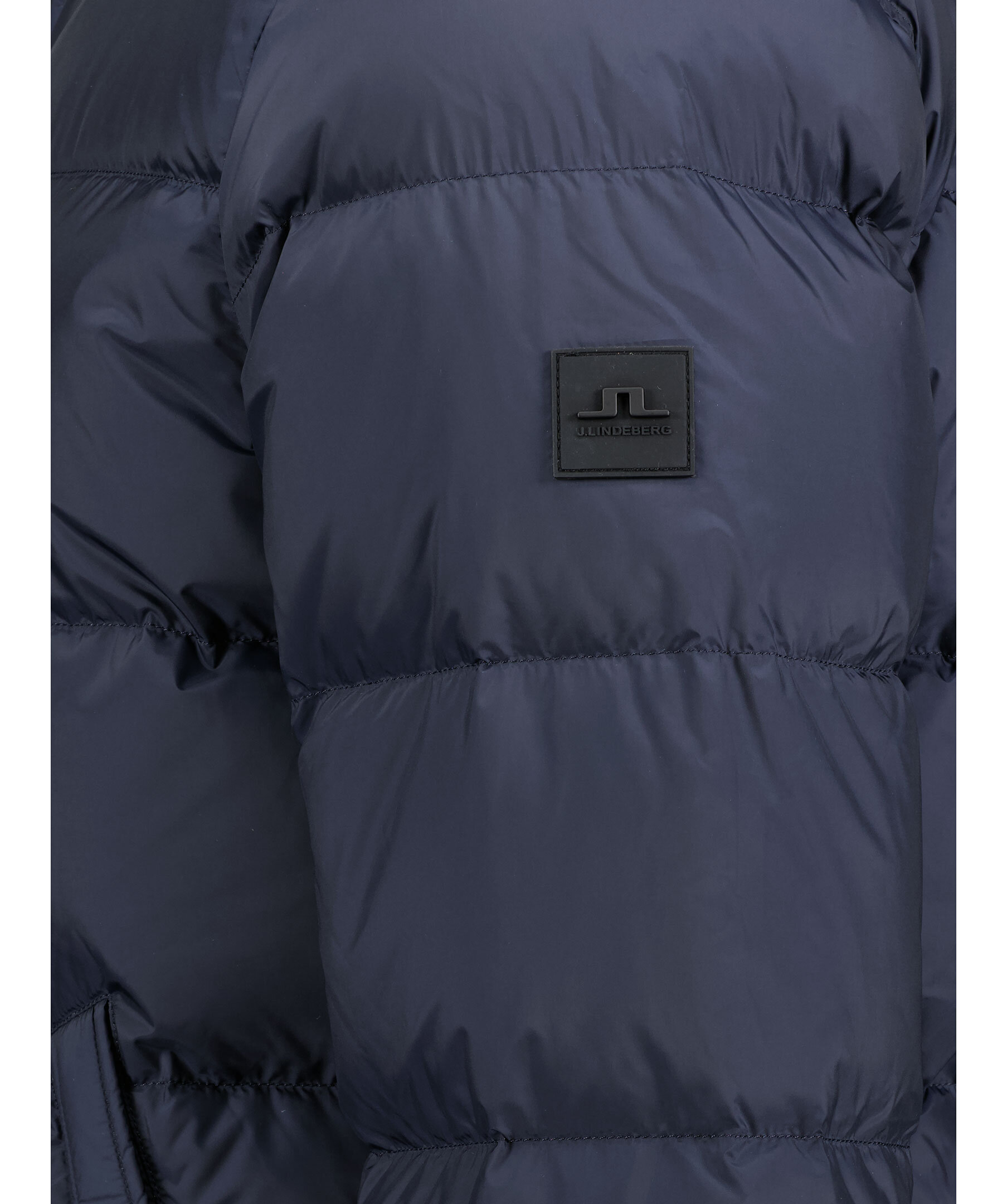 Mörkblå pufferjacka från J Lindeberg. Stängs framtill med tvåvägsdragkedja och tryckknappar. Två fickor framtill som stängs med dragkedja. Innerficka som stängs med dragkedja. Ribbstickad mudd vid ärmslut. Luva med dragsko. Gummerad patch med logotyp i metall.