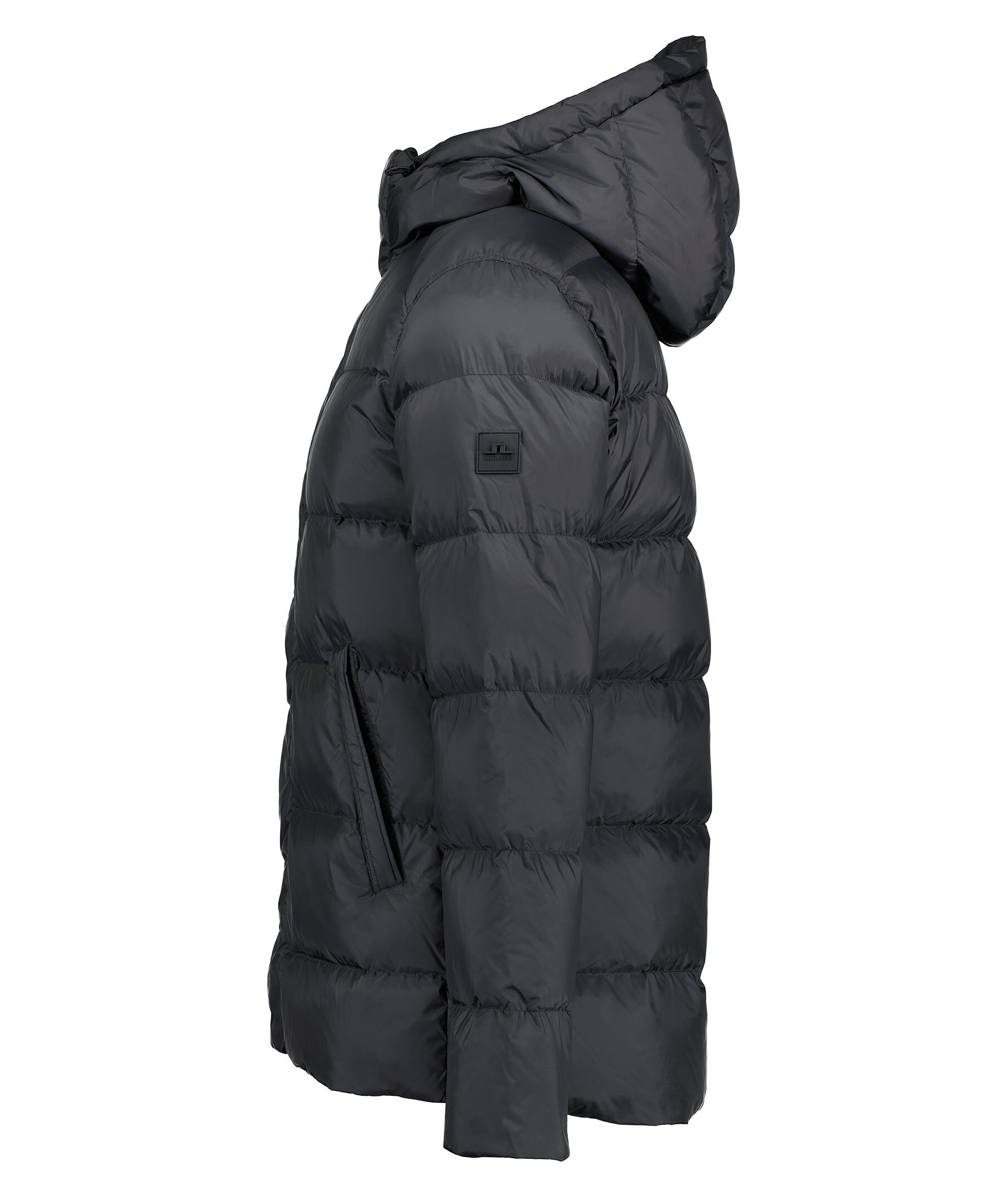 Svart pufferjacka från J Lindeberg. Stängs framtill med tvåvägsdragkedja och tryckknappar. Två fickor framtill som stängs med dragkedja. Innerficka som stängs med dragkedja. Ribbstickad mudd vid ärmslut. Luva med dragsko. Gummerad patch med logotyp i metall.