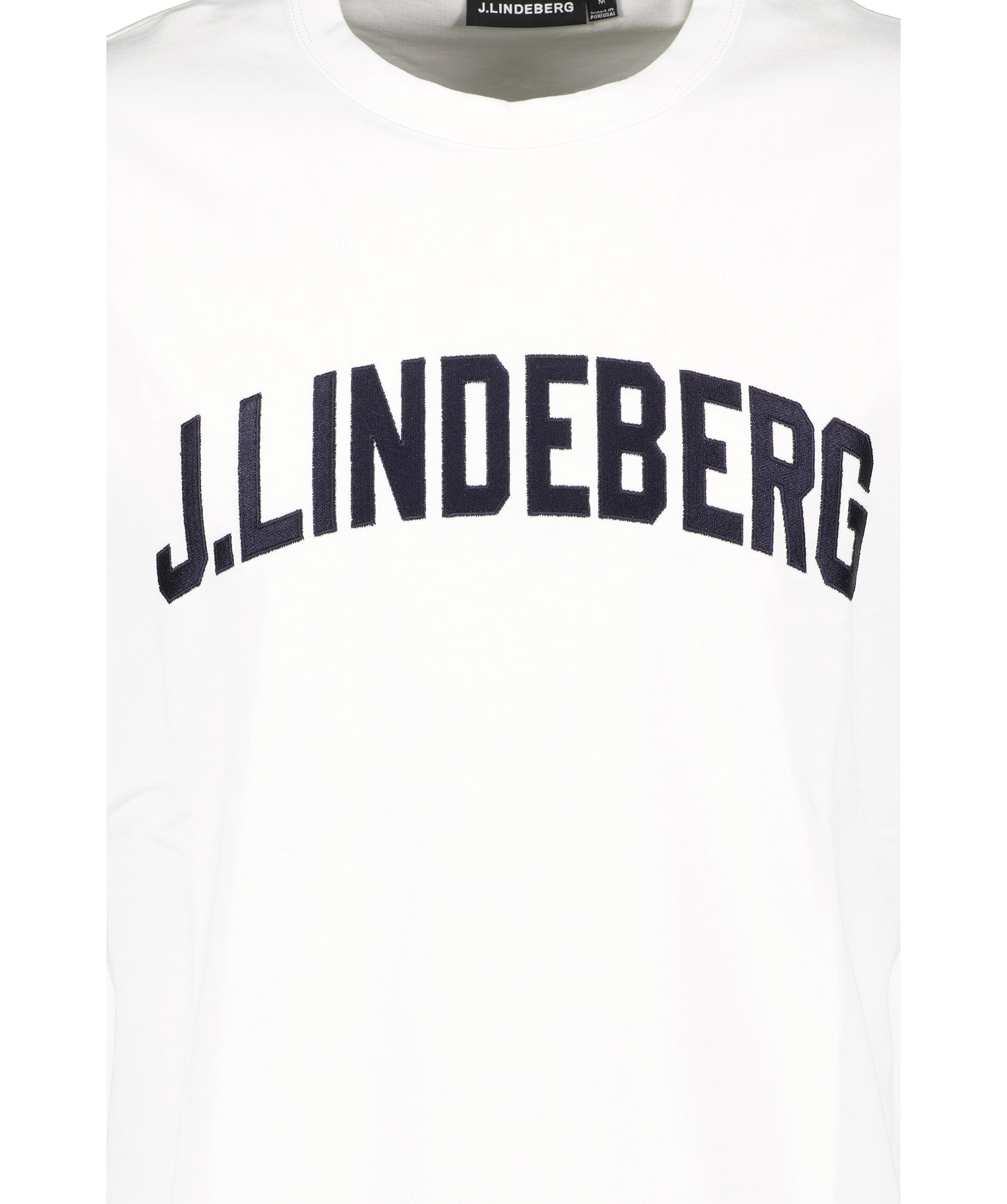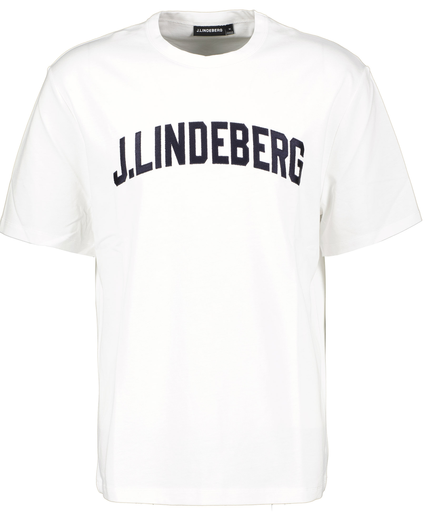 Vit T-shirt från J Lindeberg med broderad logotyp över bröstet. Rundad halsringning. Tillverkad i 100% bomull.