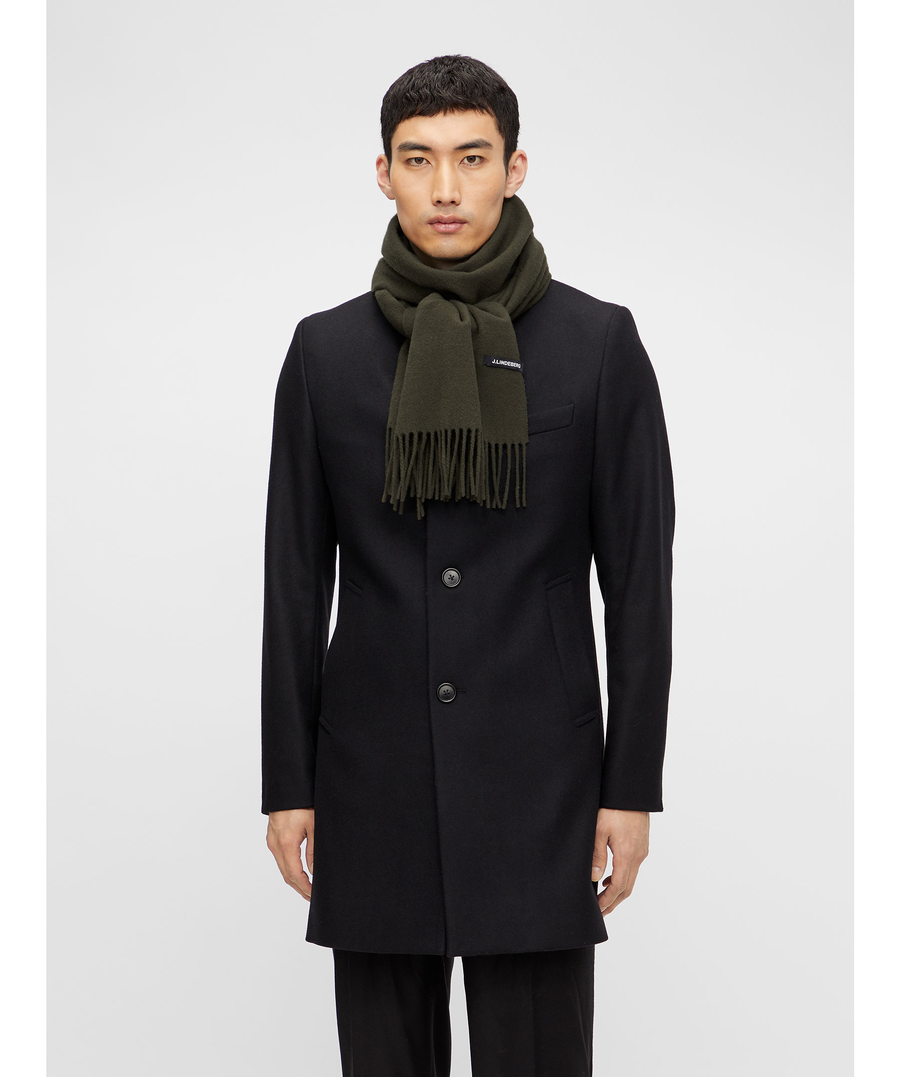 Grön halsduk från J. Lindeberg. Slät yta, fransar vid kortsidorna. Tillverkad i 100% ull. *Slät yta *Fransar *100% ull