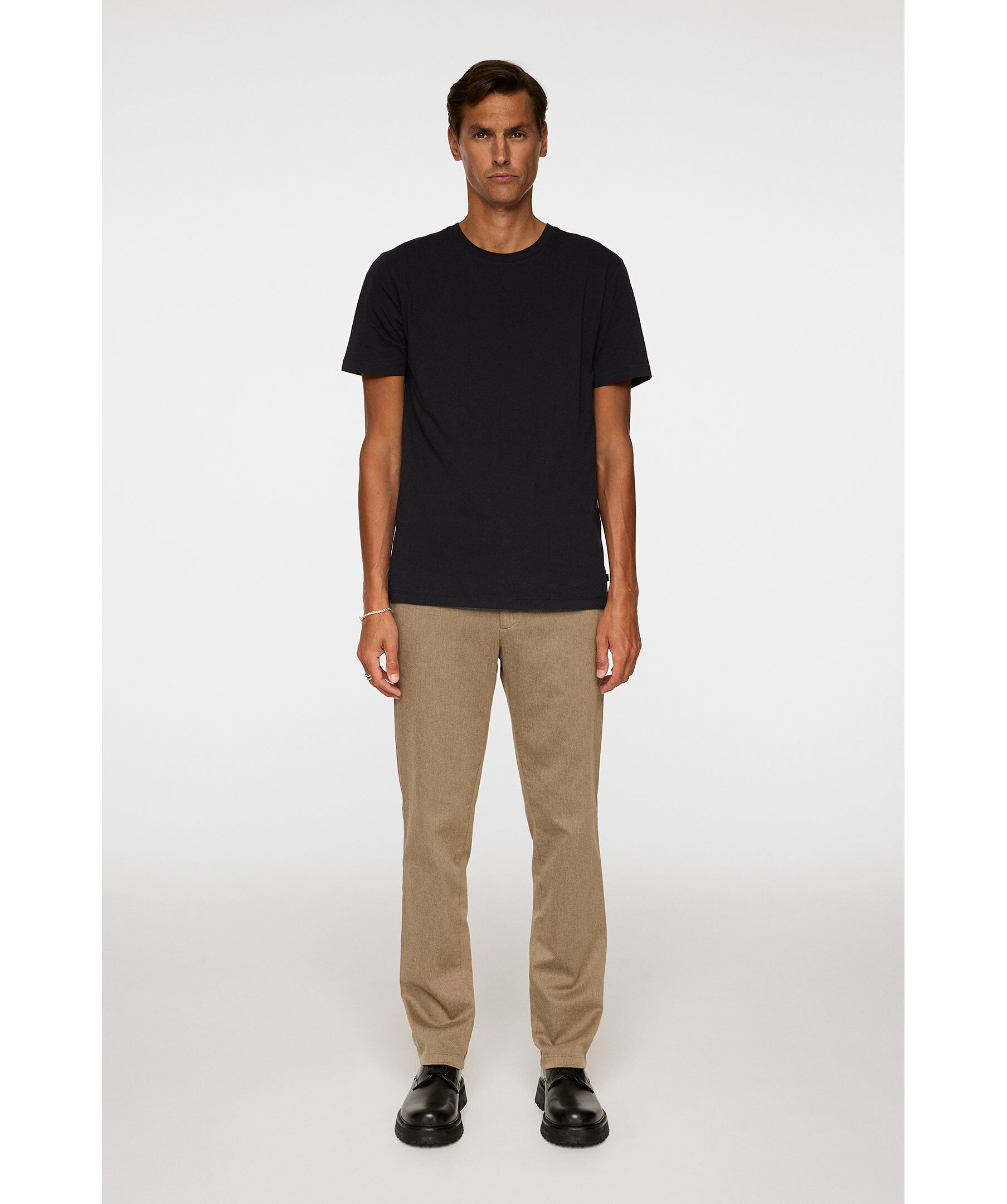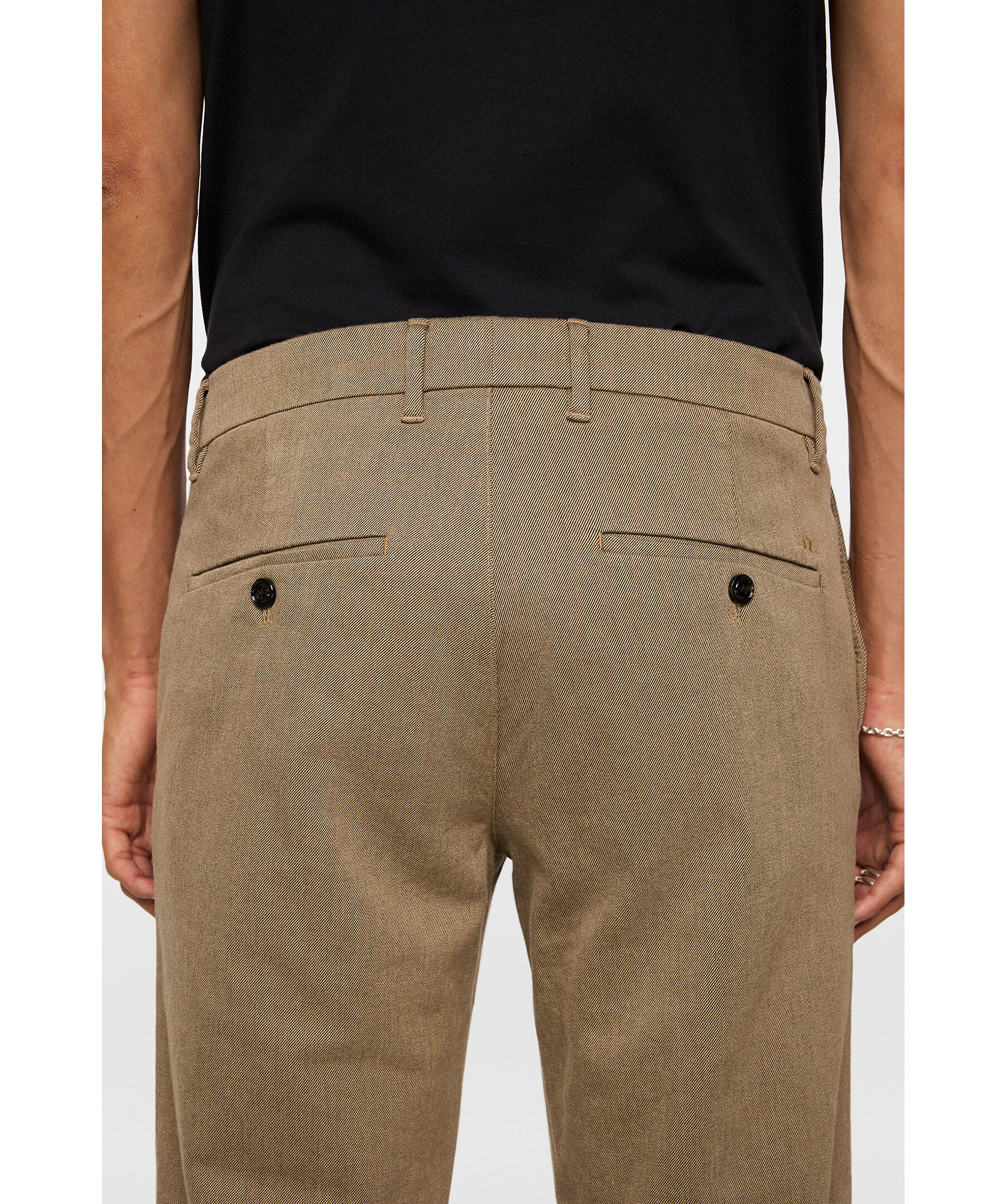 Skräddarsydda byxor från J.Lindeberg i stretchig flanell‑twill för mjuk struktur och optimal rörelsefrihet. Med snedställda sidfickor och paspolerade bakfickor med märkesknappar.