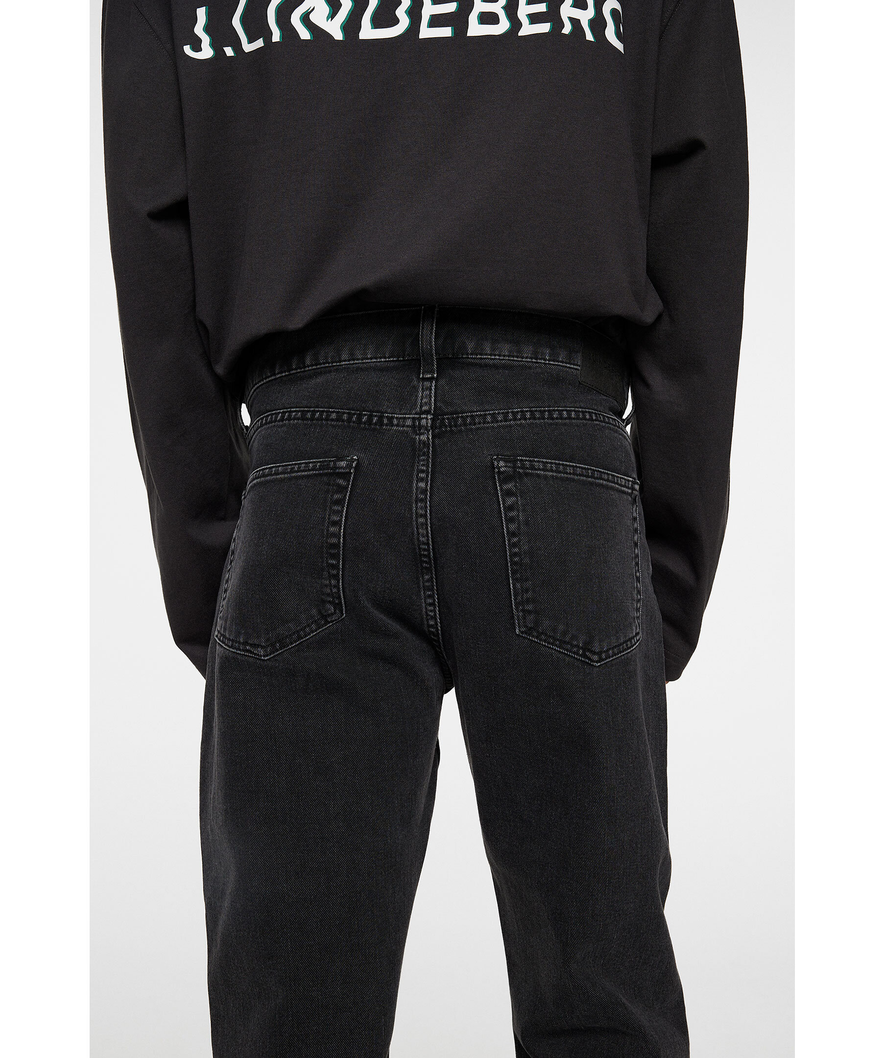 Svarta jeans från J Lindeberg. Jeansen har fem fickor, gylf med dragkedja, bälteshällor i midjan, en Jacron-lapp på baksidan och litet logotyp i metall på myntfickan. Tillverkade i bomull. Regular fit.