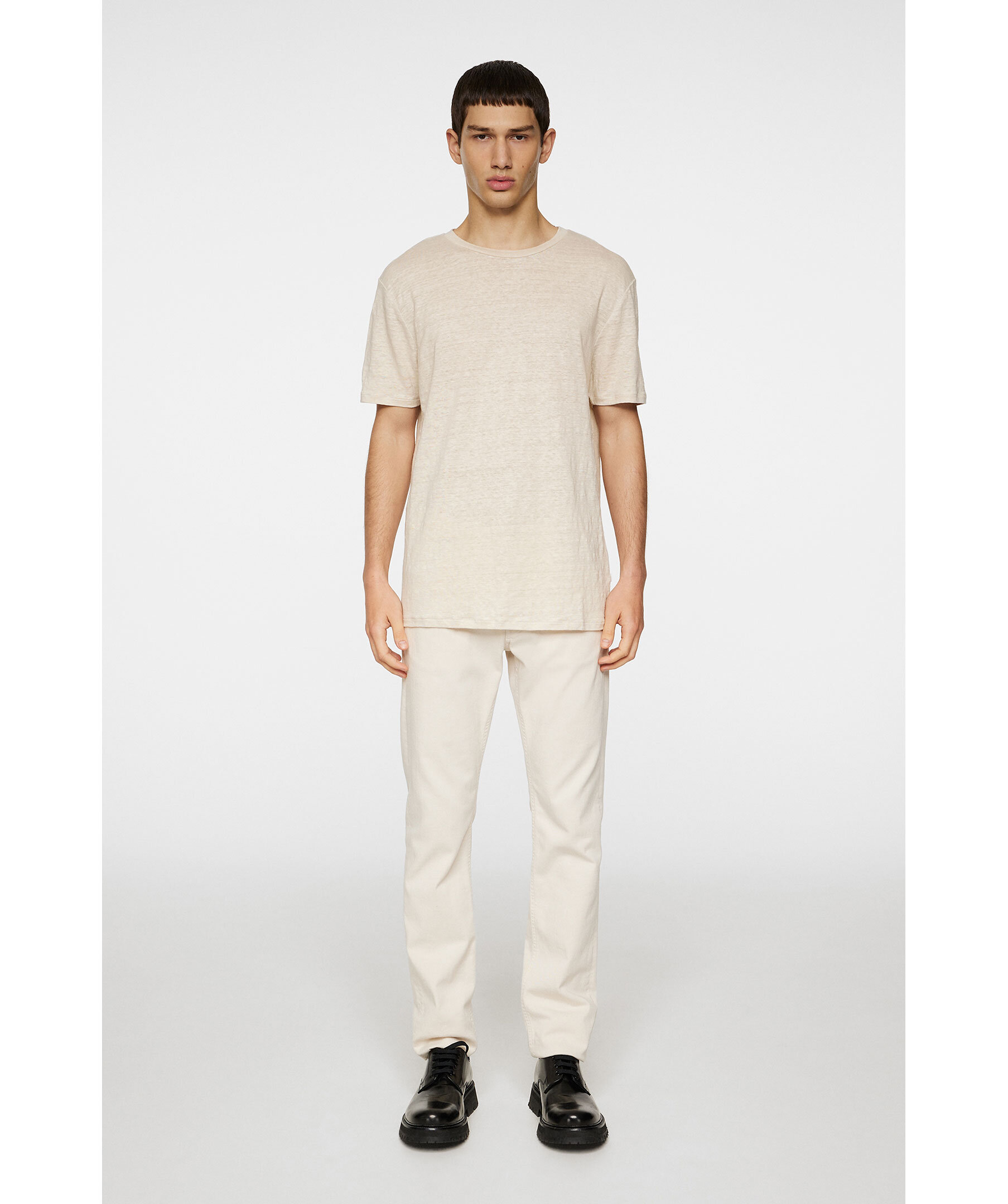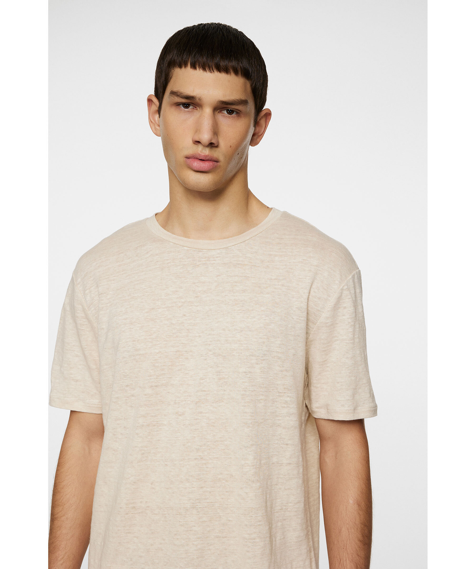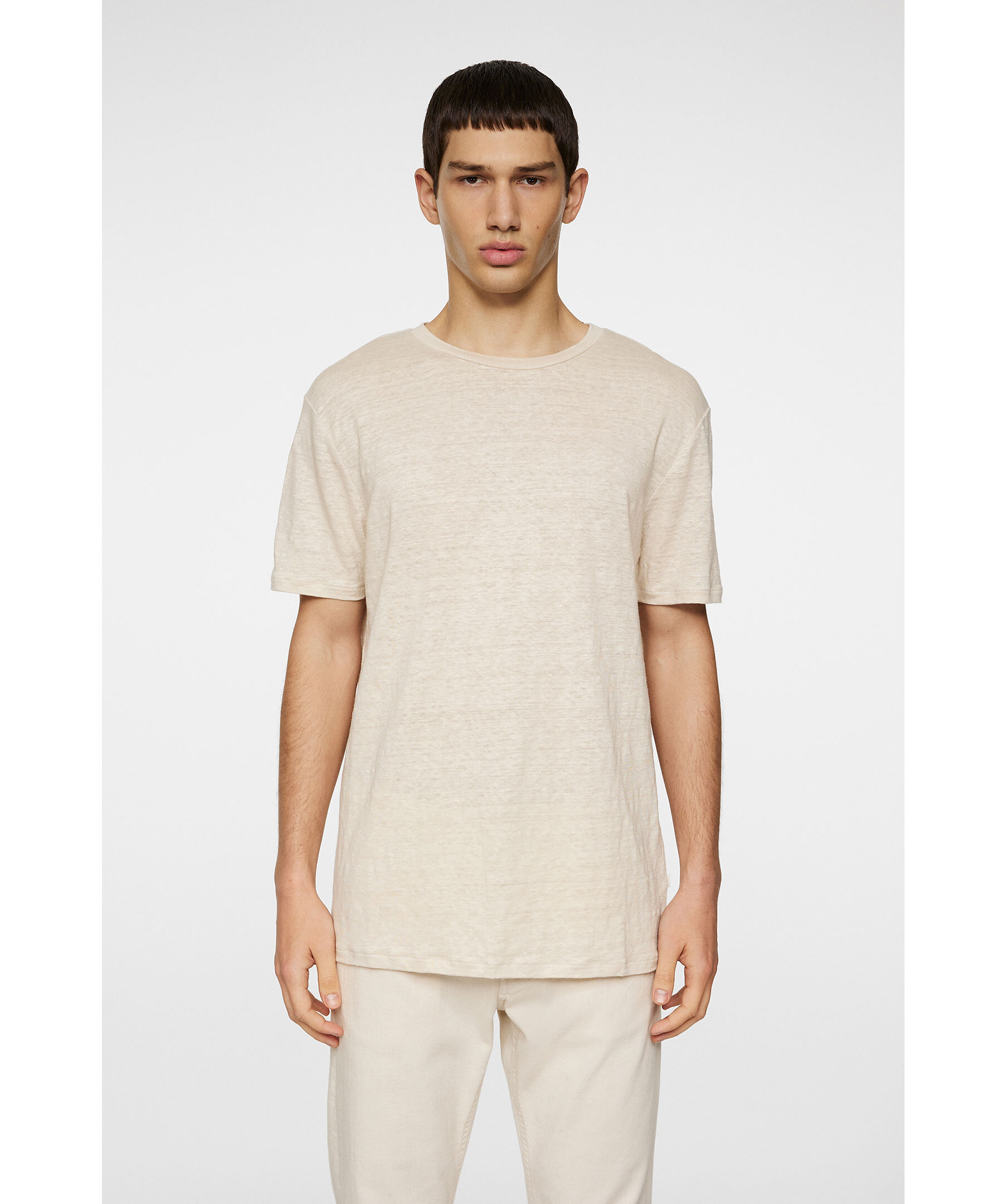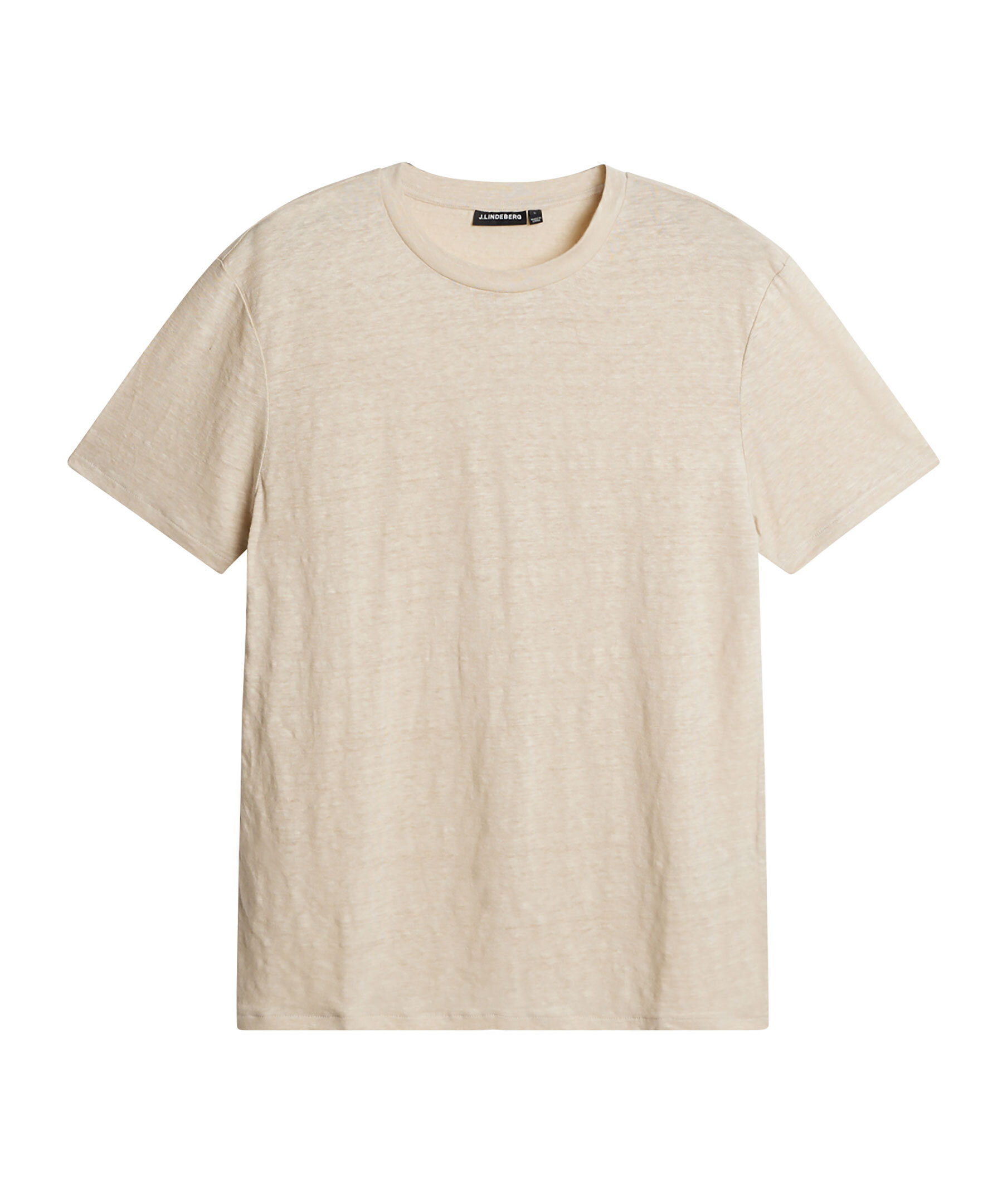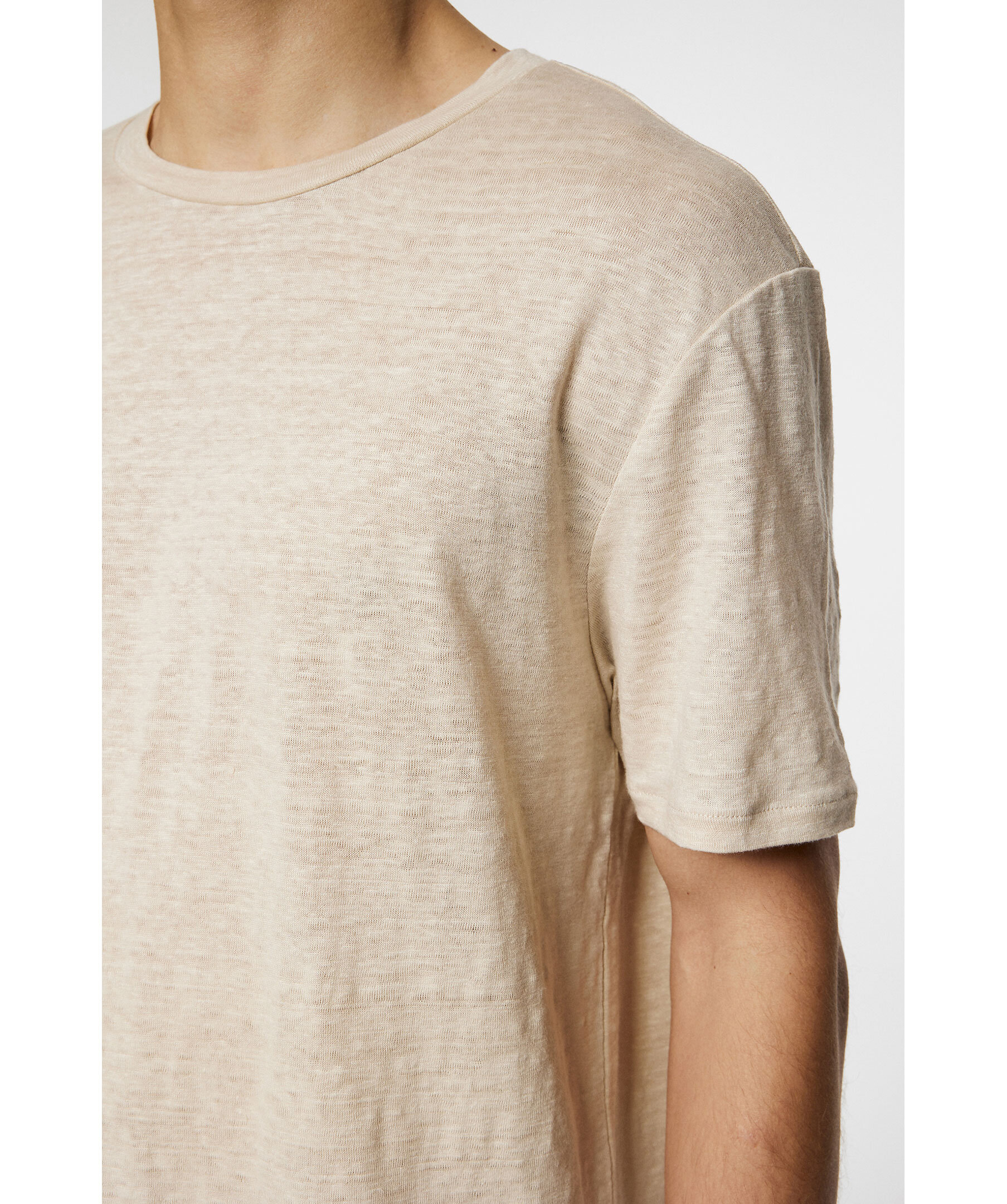Beige, melerad t-shirt från J Lindeberg. T-shirten har rundad halsringning, korta ärmar och är tillverkad i 100% lin.