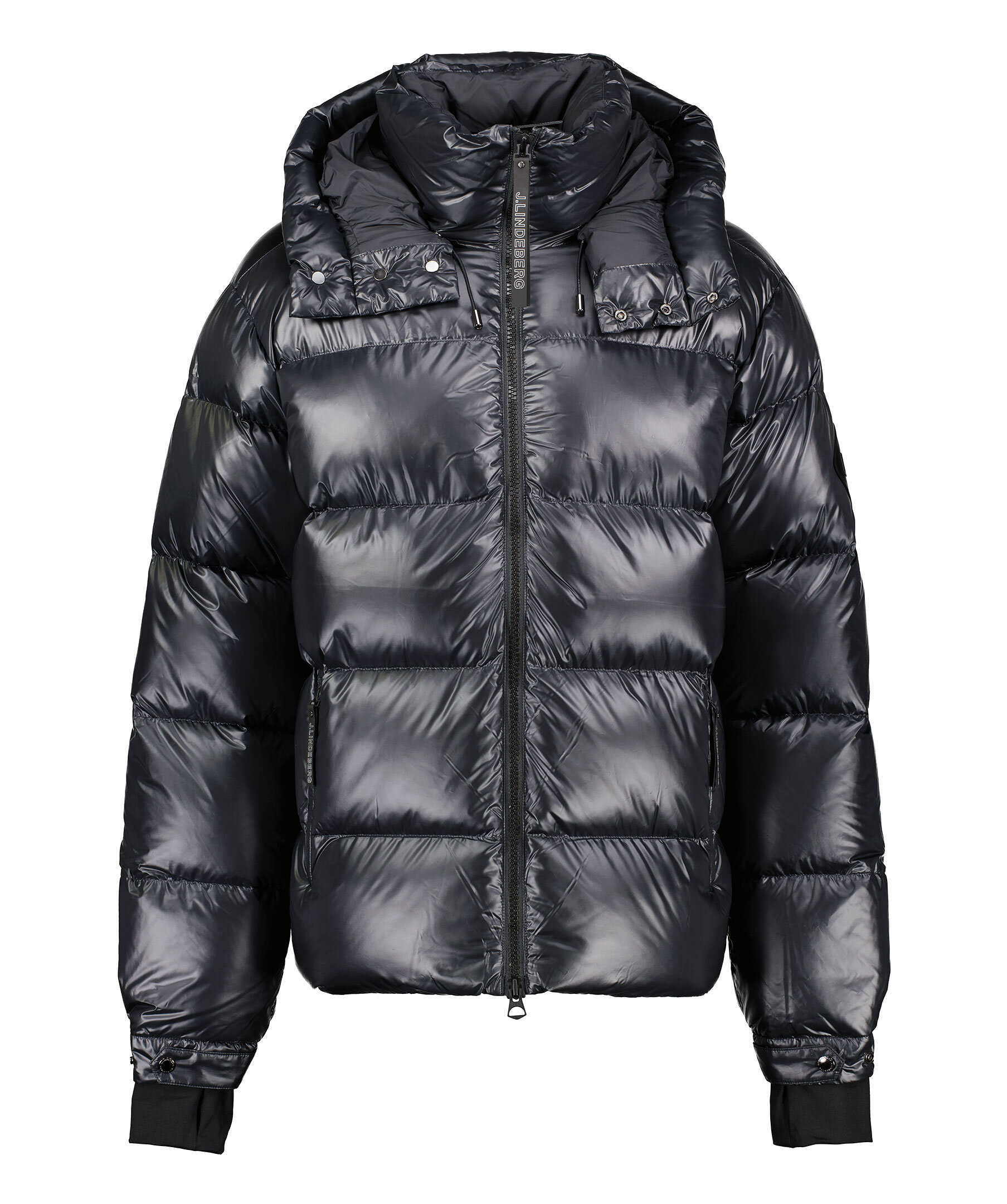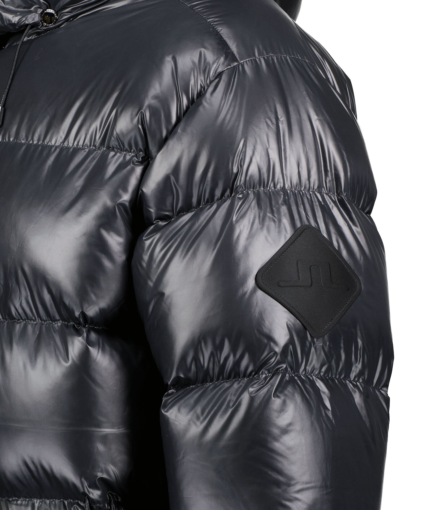 Svart quiltad dunjacka från J Lindeberg. Stängs framtill med tvåvägsdragkedja. Avtagbar luva med dragsko. Två fickor framtill som stängs med dragkedja. Gummerad patch med logotyp på vänster ärm. Justerbara ärmslut med tryckknappar. Dragsko vid jackslut.