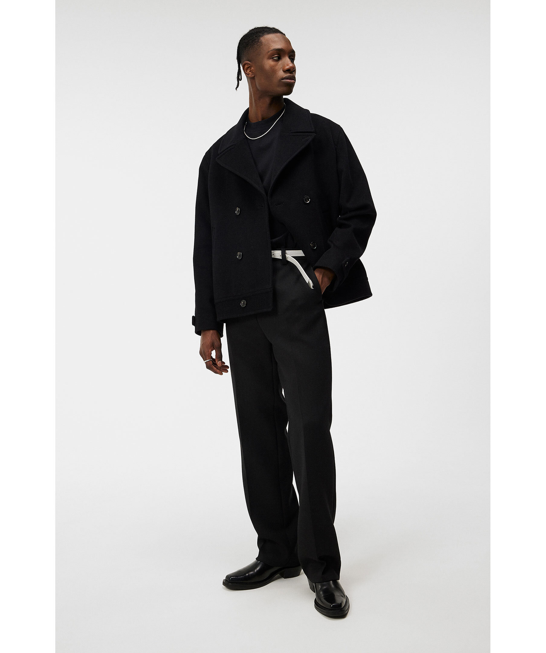 Svart jacka från J Lindeberg. Dubbelknäppt. Stora slag. Justerbara ärmslut med knapp. Tillverkad i Ullblandning. Handfickor, innerfickor. Fodrad.