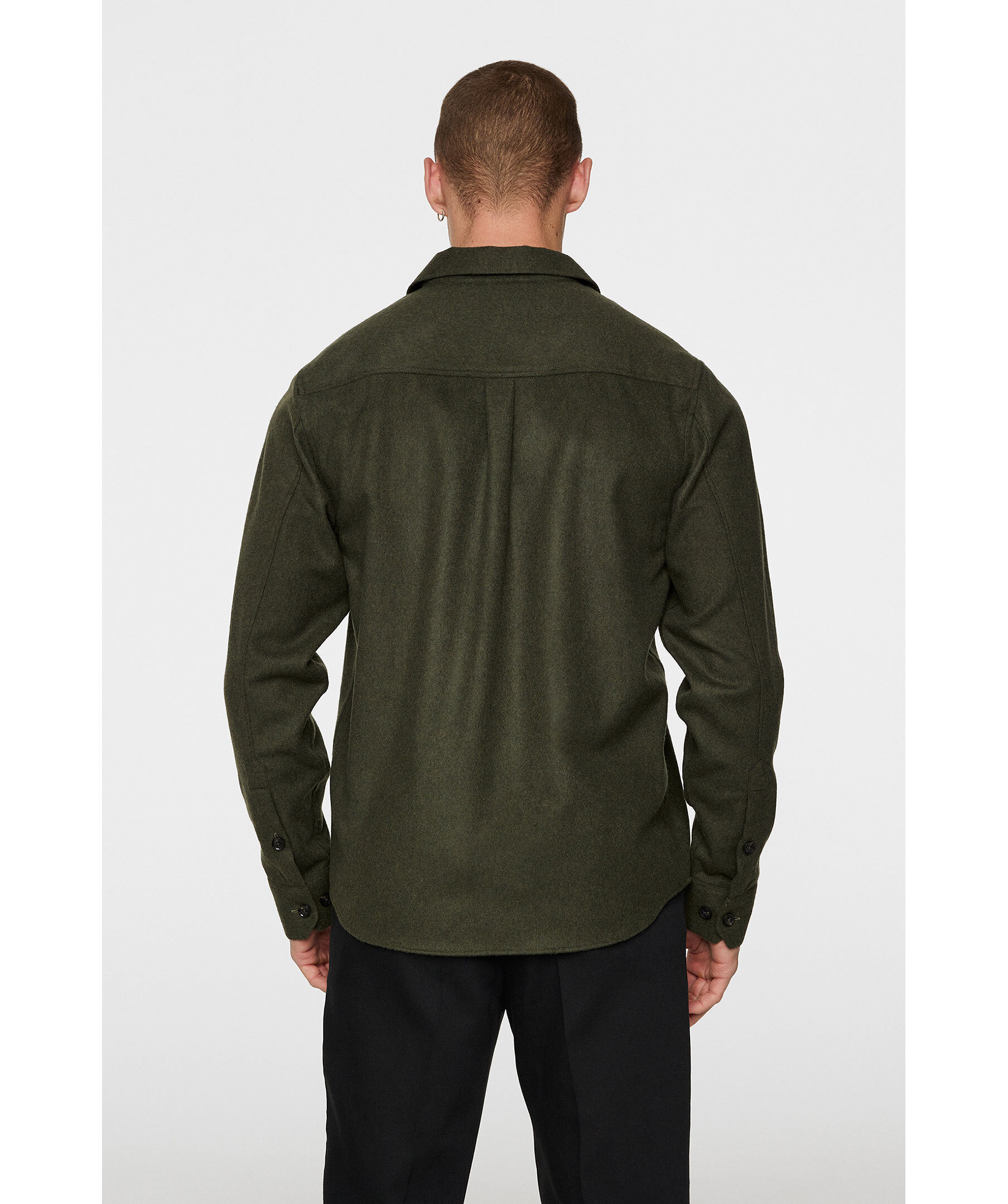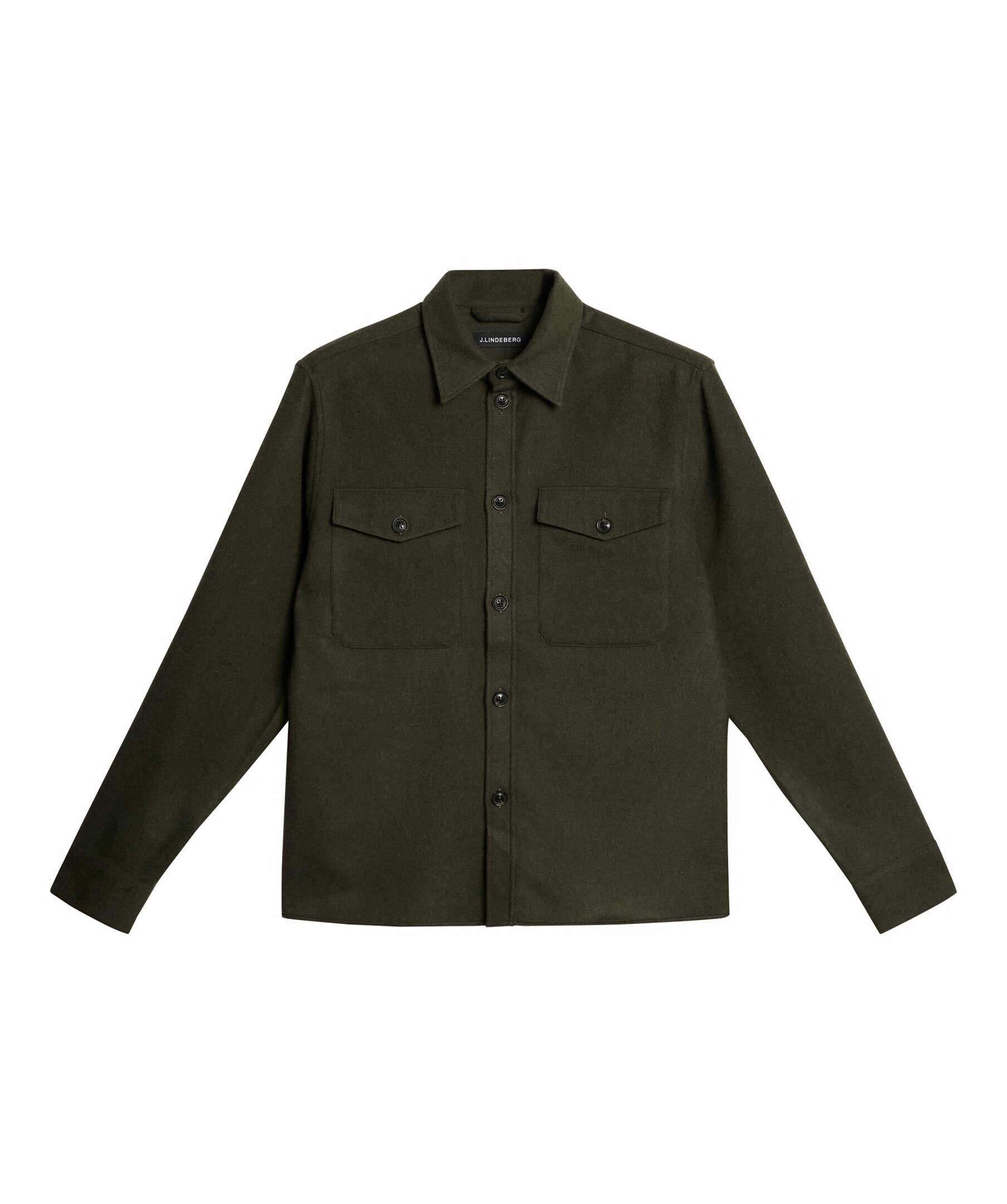 Mörkgrön overshirt från J.Lindeberg. Tillverkad i en mjuk och lyxig italiensk ullblandning och ger den perfekta finishen till varje look. Bär den som en lättare jacka på hösten eller som ett extra lager över din favorittröja under kallare dagar inomhus. Två bröstfickor med knappar är snygga och användbara och manschetter med knappar och ett veck baktill fullbordar detaljerna.