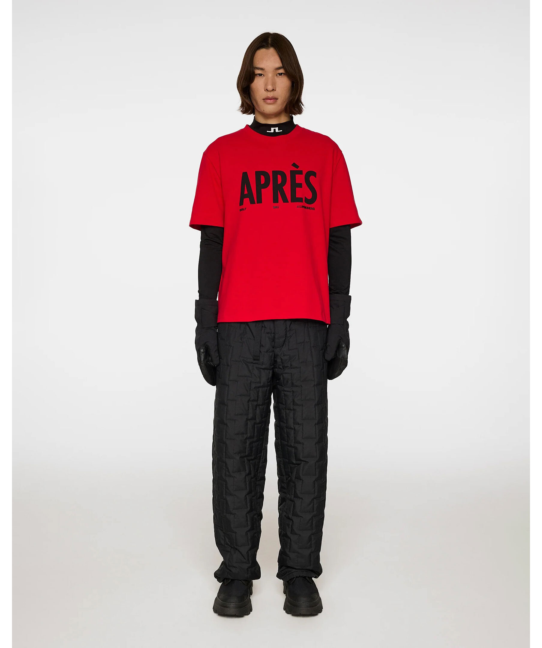 Hale T-shirt från J.Lindeberg är tillverkad av kraftig ekologisk bomull och har ett djärvt säsongsbetonat logotyptryck som fångar energin i Après-kollektion. Dess avslappnade passform och strukturerade ribbstickade krage ger en modern silhuett.