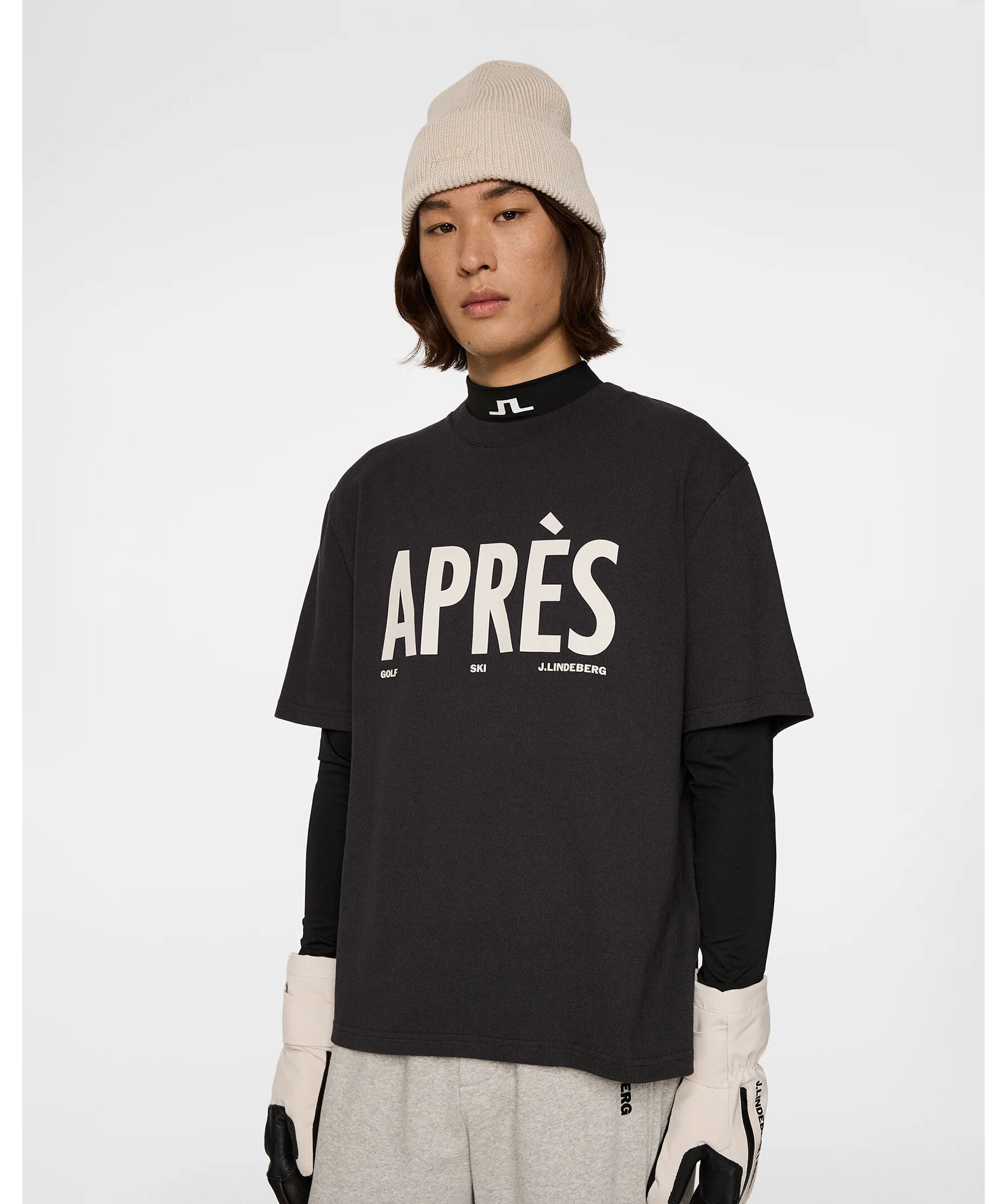 Hale T-shirt från J.Lindeberg är tillverkad av kraftig ekologisk bomull och har ett djärvt säsongsbetonat logotyptryck som fångar energin i Après-kollektion. Dess avslappnade passform och strukturerade ribbstickade krage ger en modern silhuett.