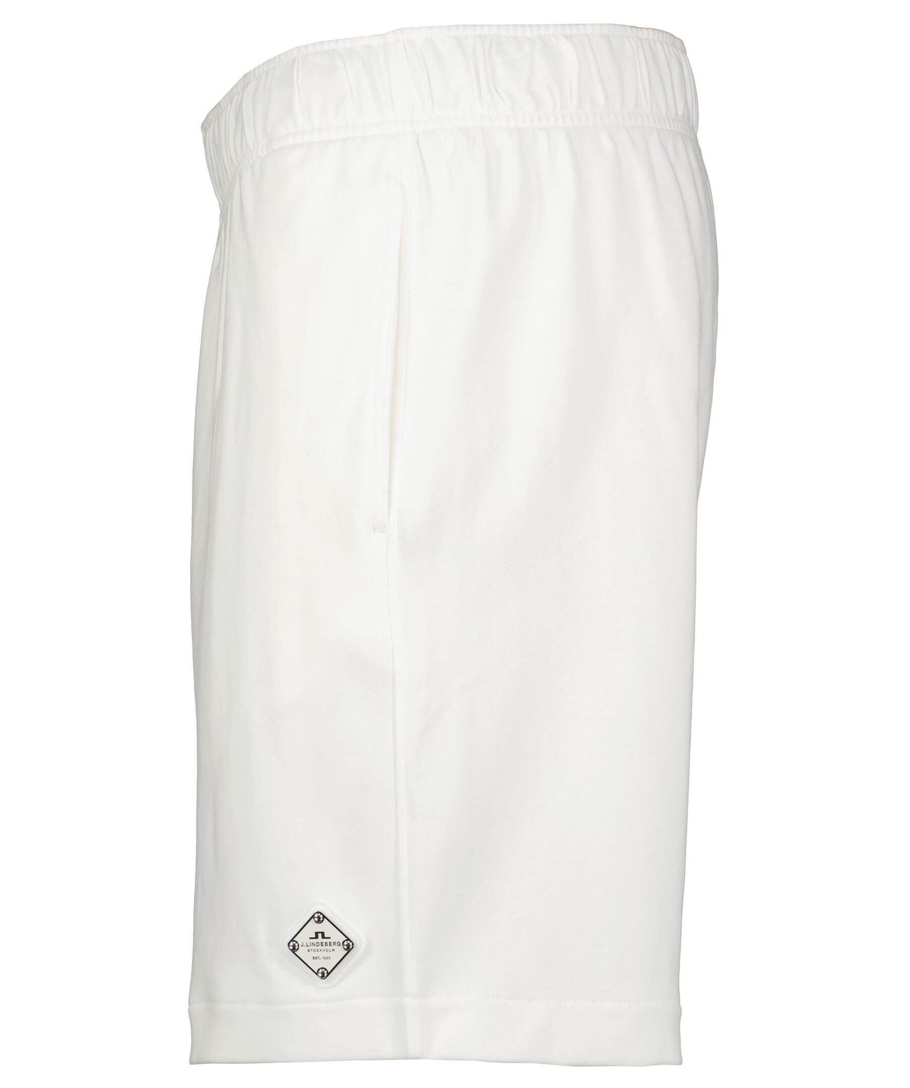 Vita mjukisshorts i 100% bomull från J Lindeberg. Två sneda fickor fram samt muddar och snörning i midjan. Logotyp på vänster ben i gummi och metall. Foder i mesh på insidan.