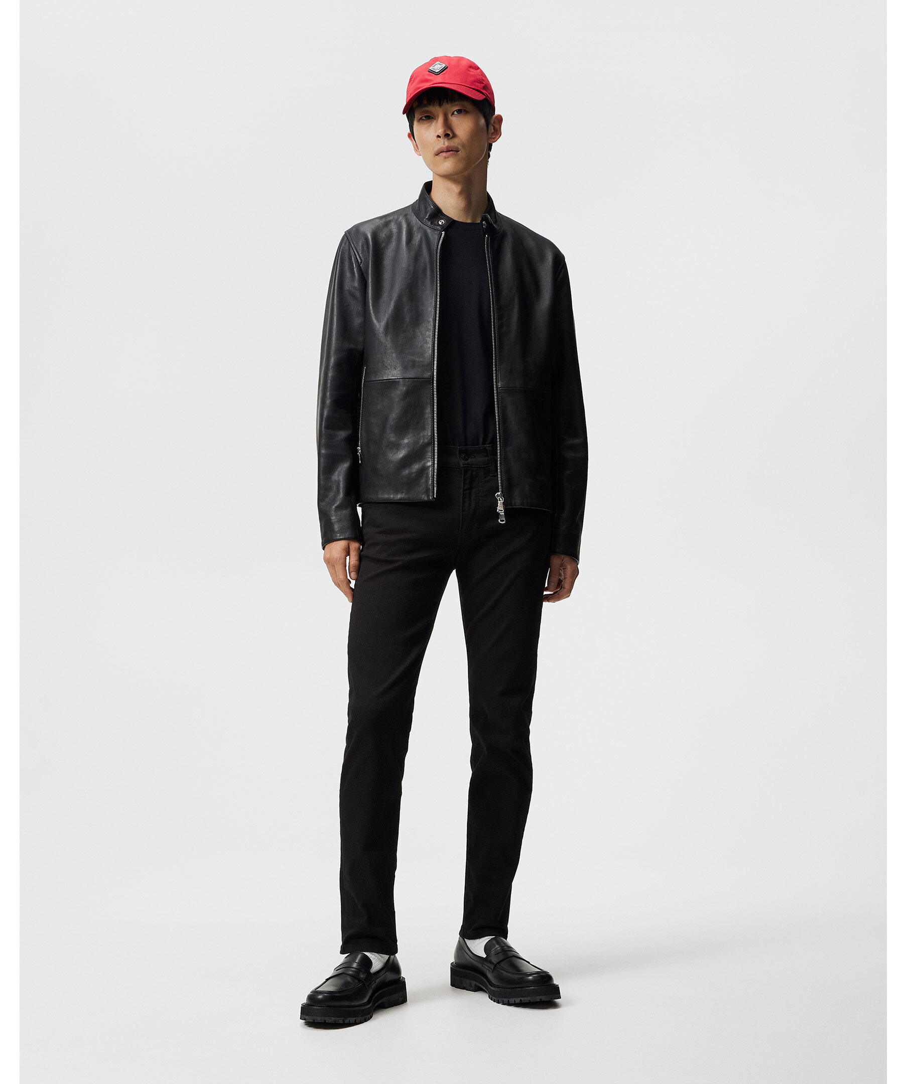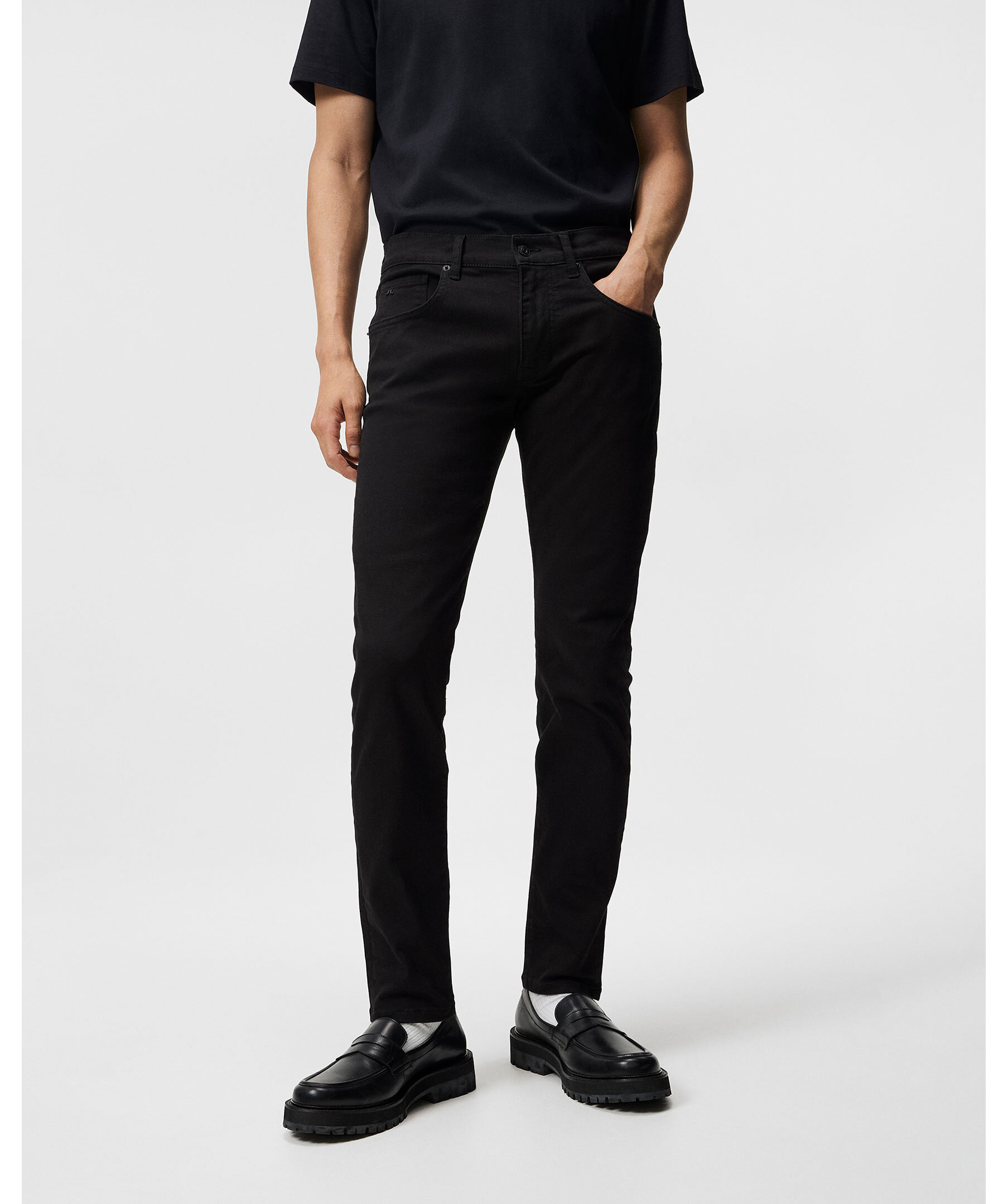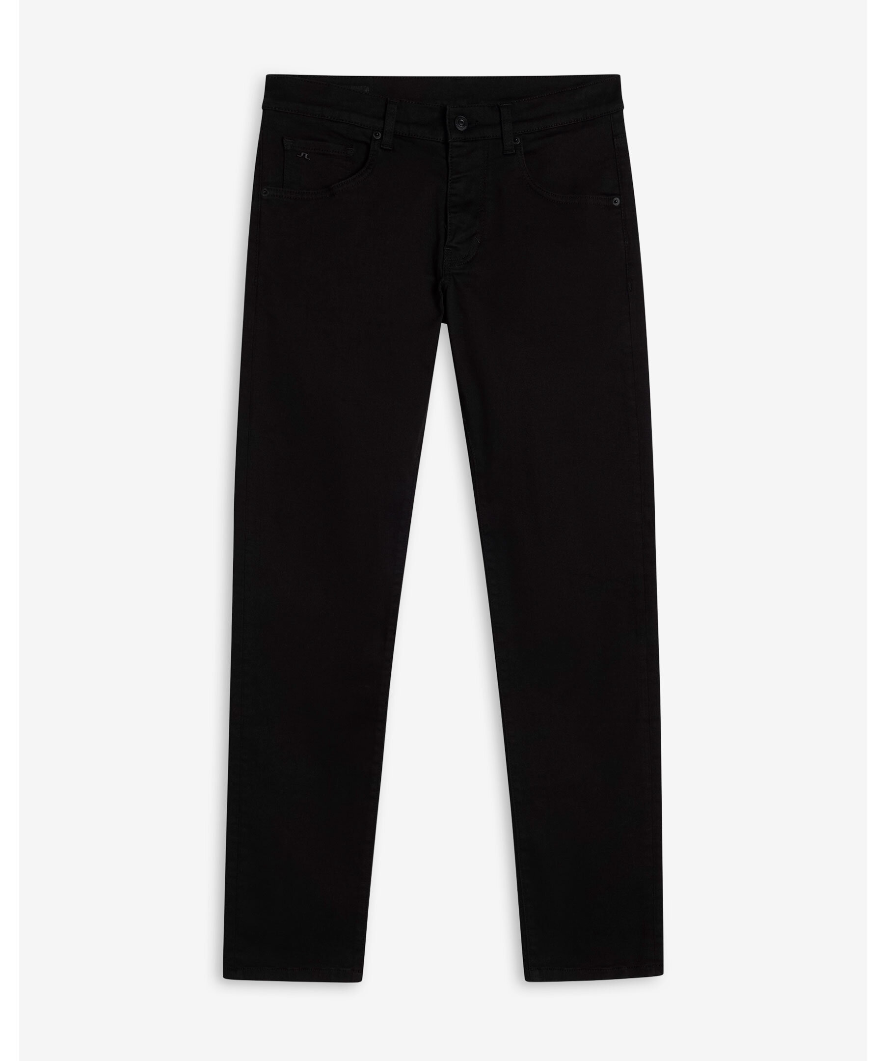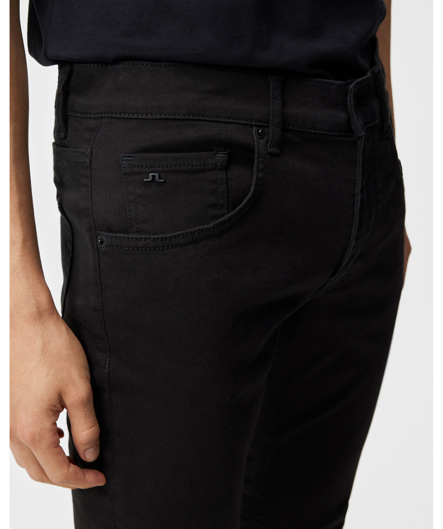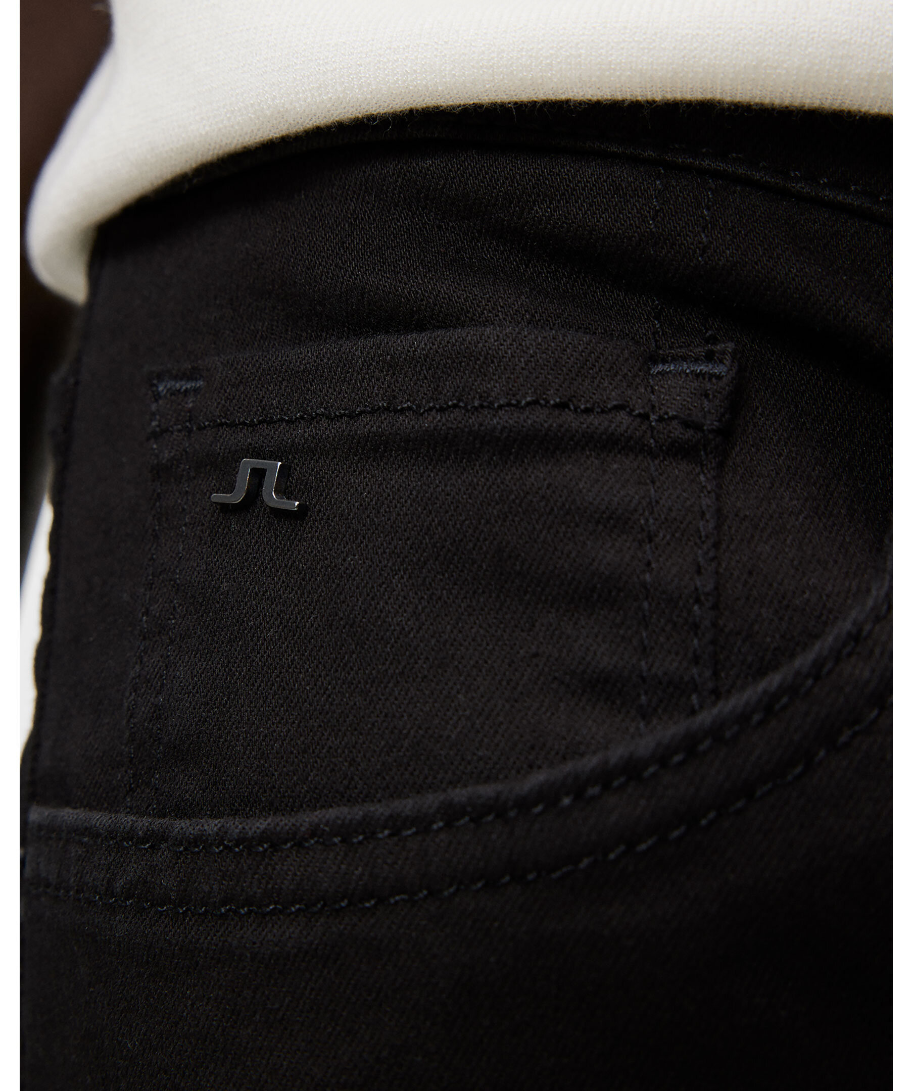 Svarta jeans från J Lindeberg. Jeansen har bälteshällor i midjan, fem fickor, liten logotyp på myntfickan samt mattsvarta knappar och nitar. Tillverkade i en bomullsblandning.