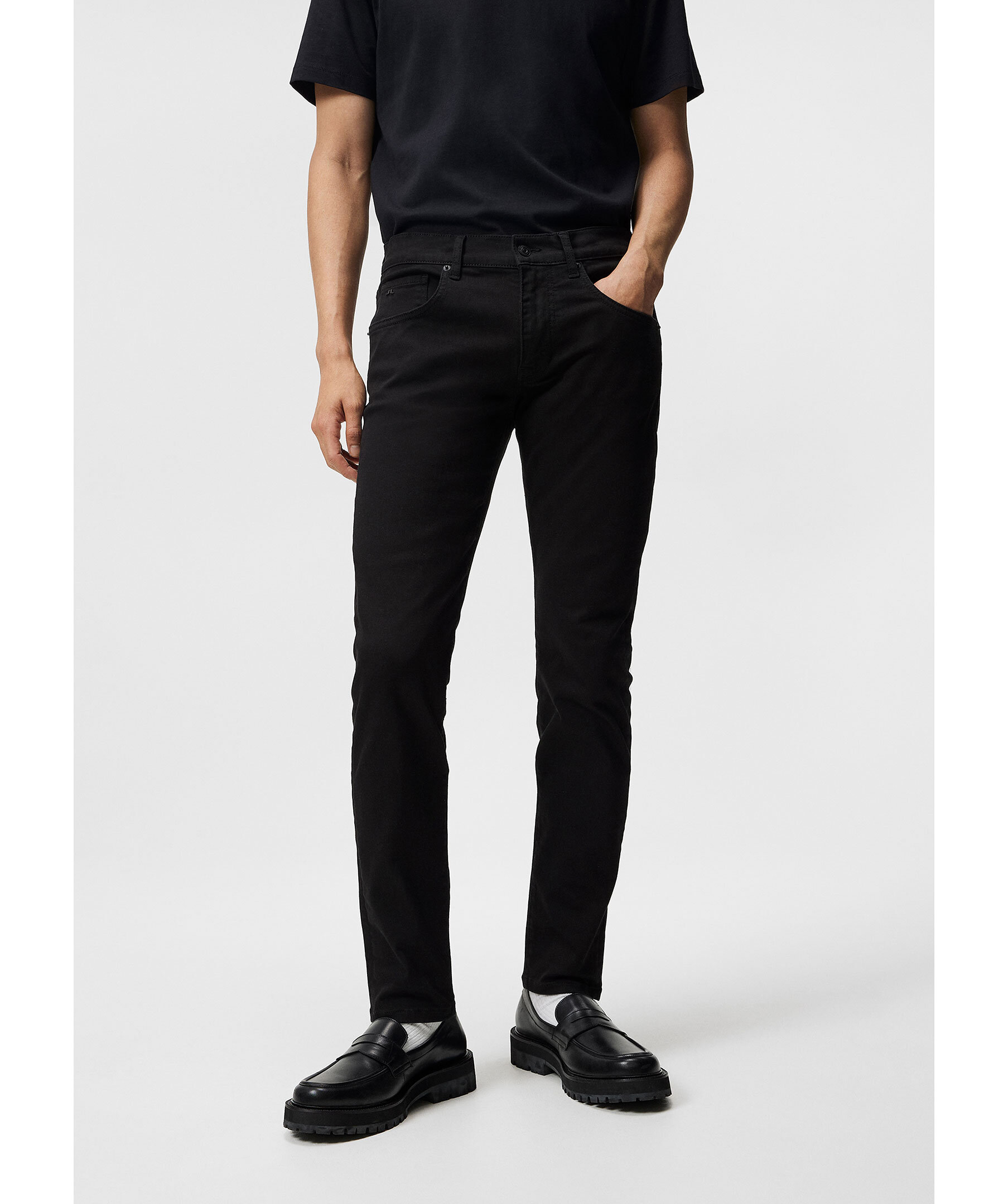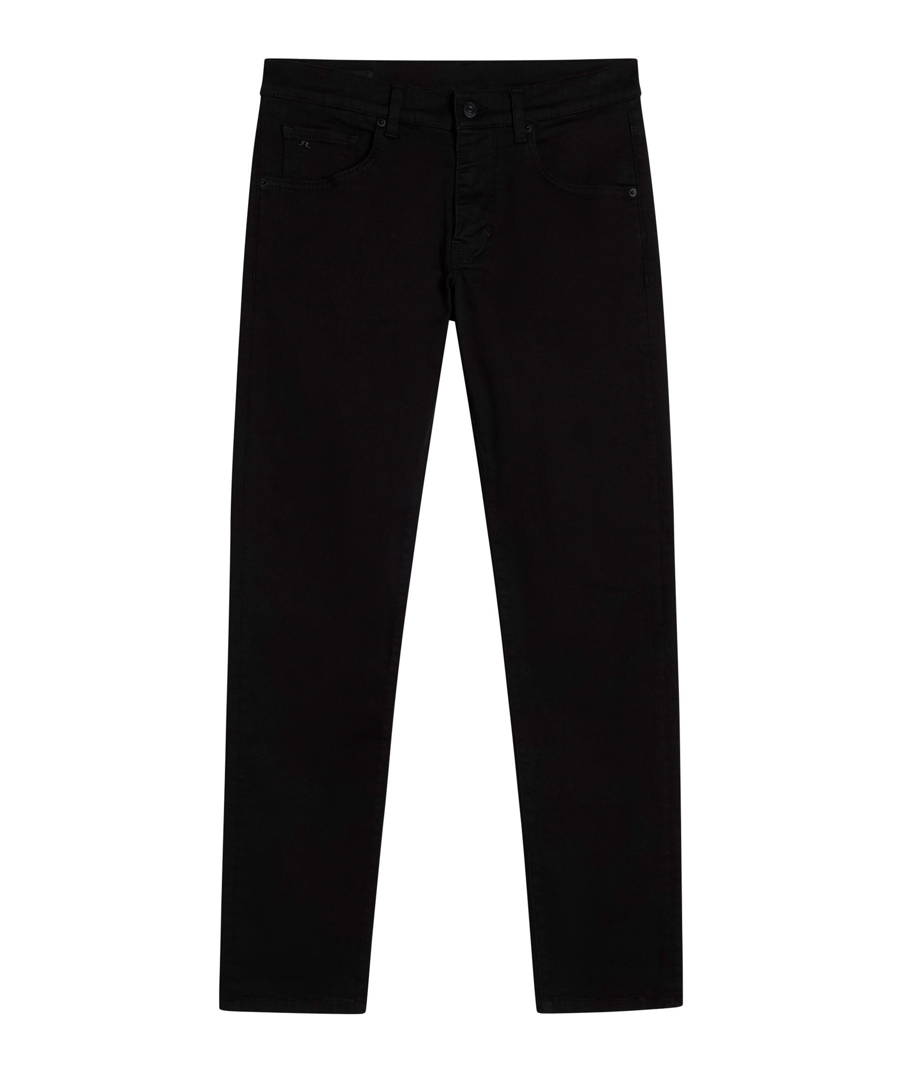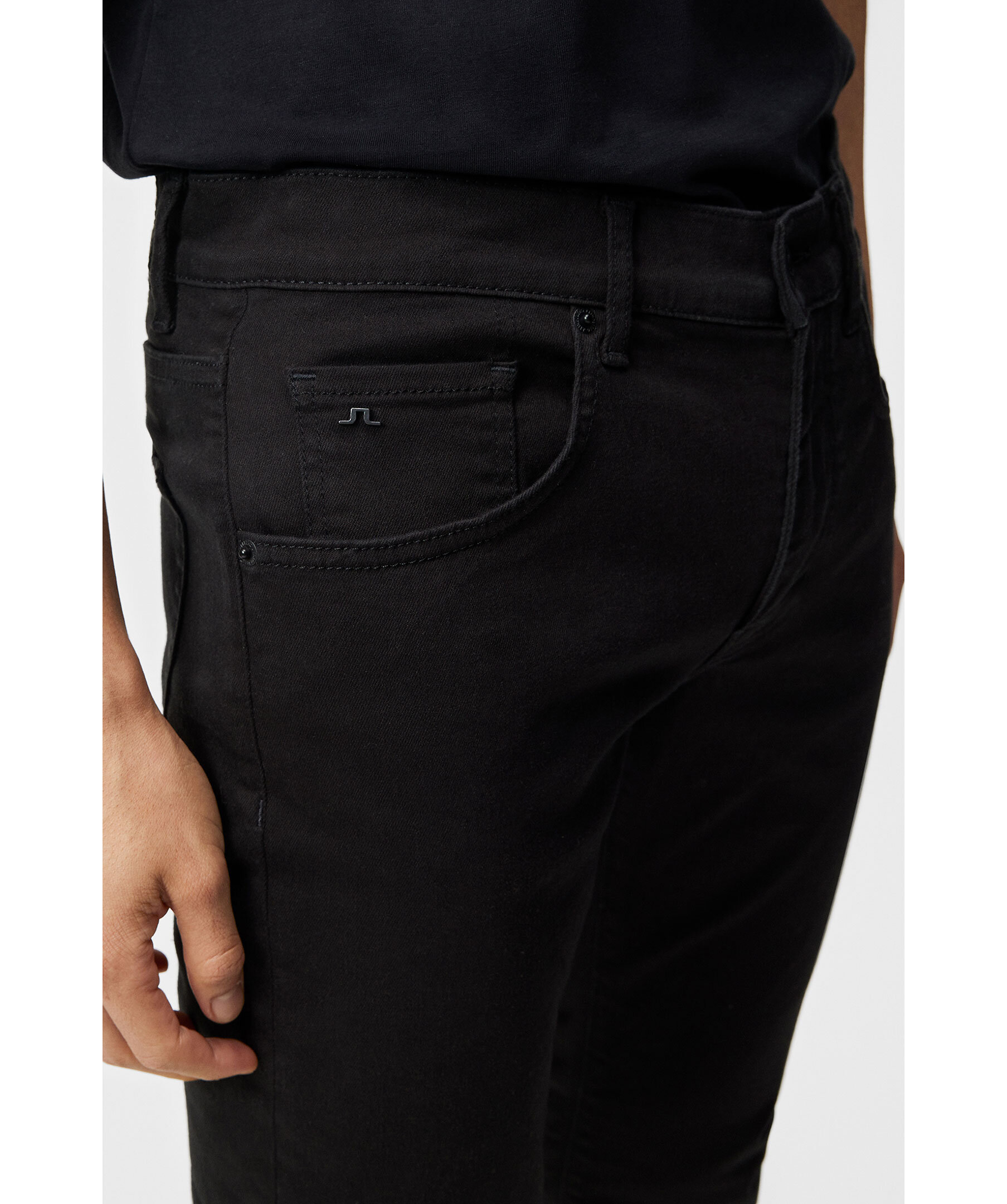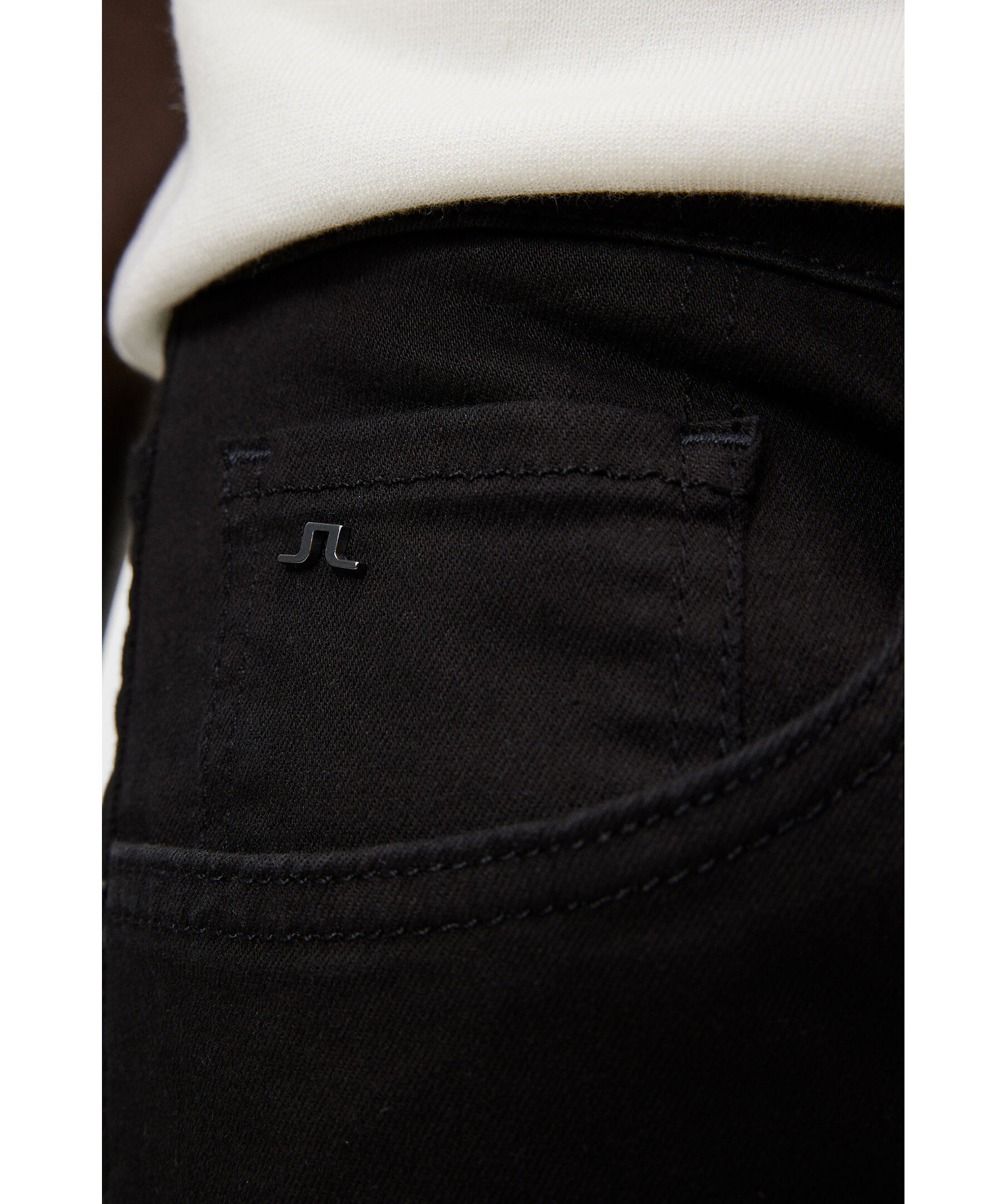 Svarta jeans från J Lindeberg. Jeansen har bälteshällor i midjan, fem fickor, liten logotyp på myntfickan samt mattsvarta knappar och nitar. Tillverkade i en bomullsblandning.