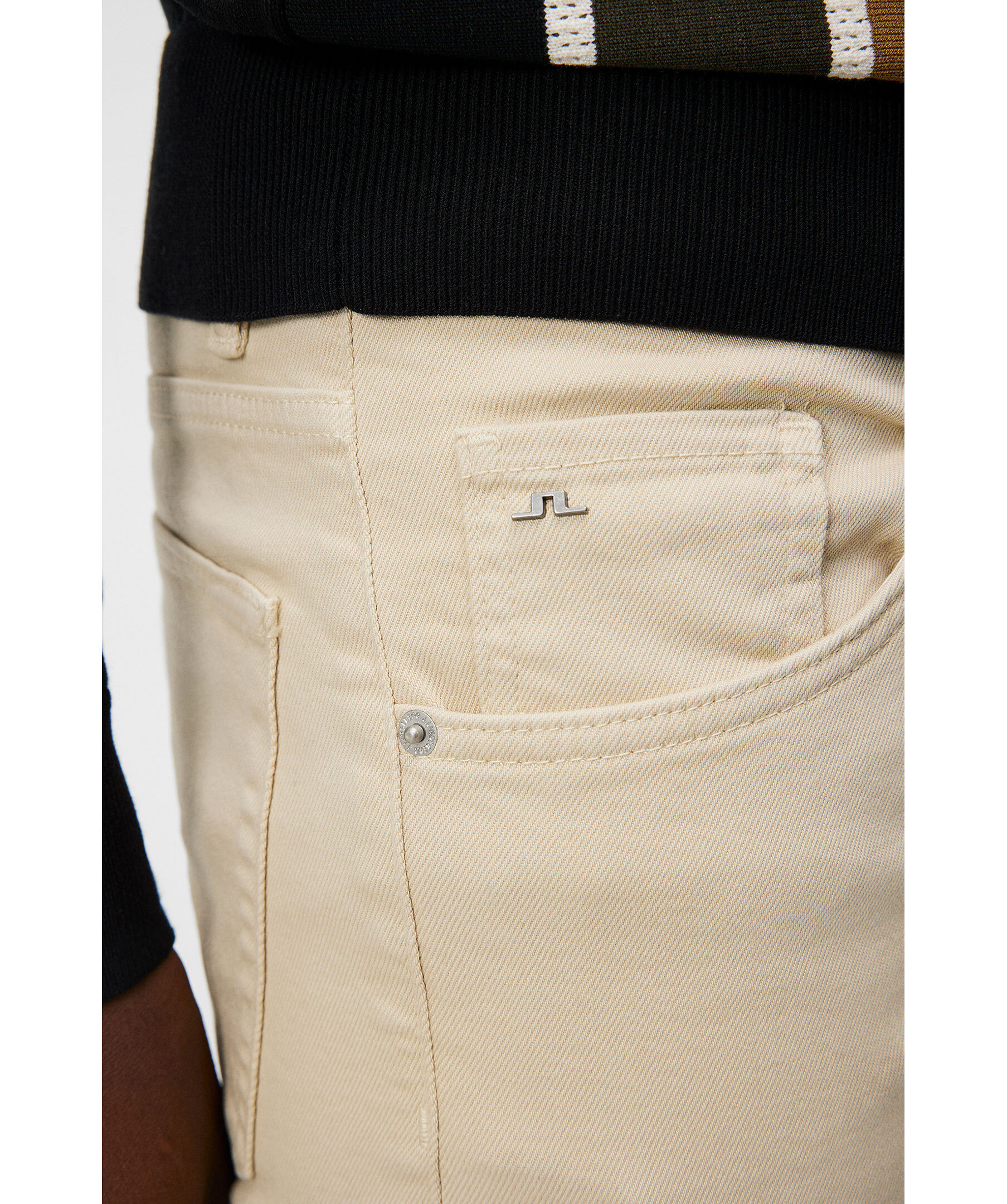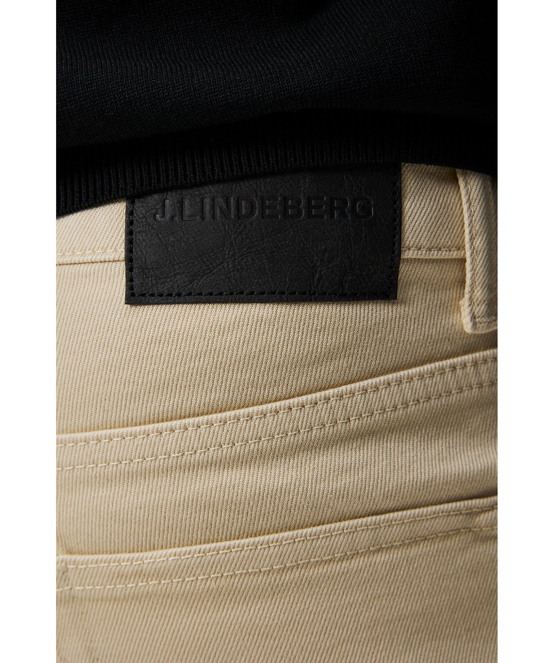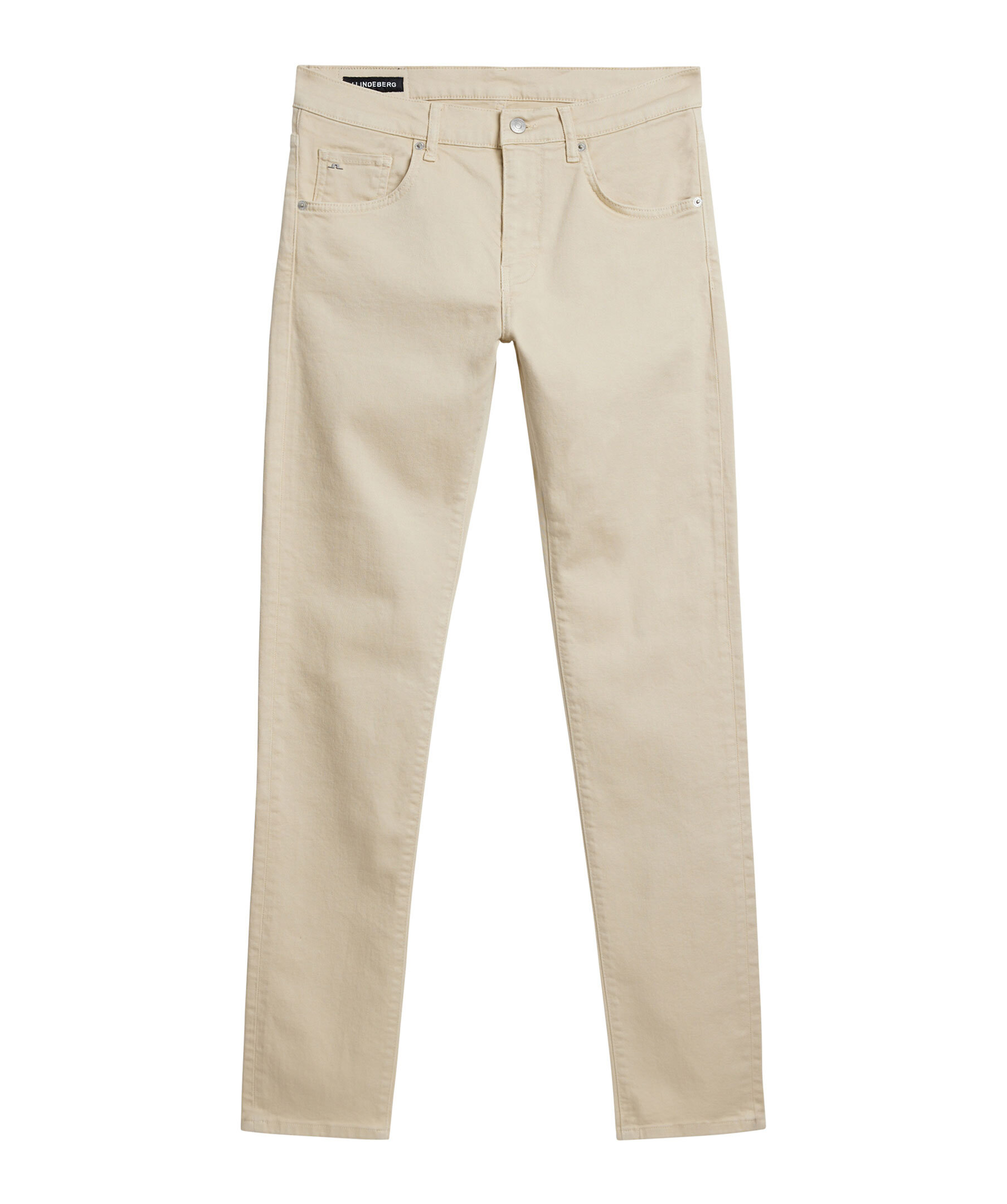 Beiega jeans från J Lindeberg. Jeansenhar bälteshällor i midjan, fem fickor och patch med logotyp på linningen. Tillverkade i en bomullsblandning.