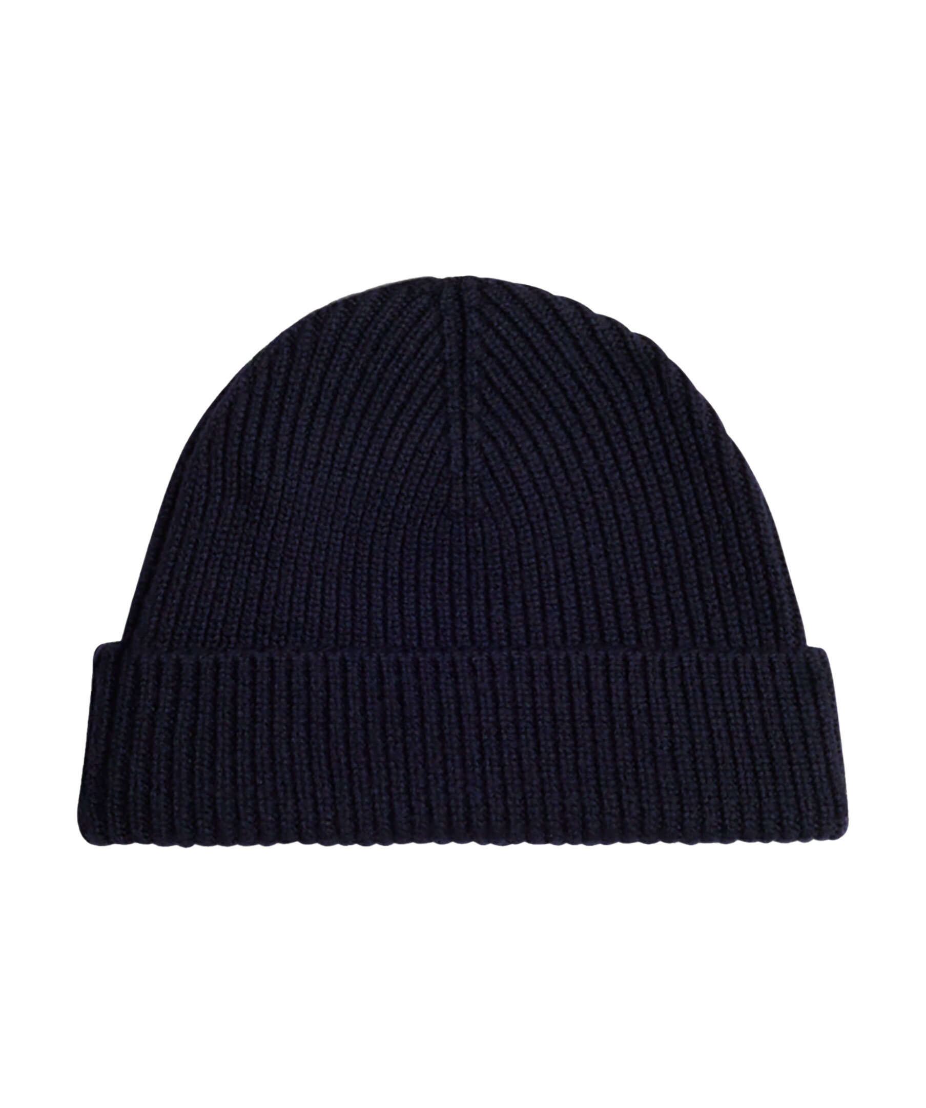 Marinblå ribbstickad mössa från J.Lindeberg. Mössan är gjord i 100% ull och har en uppvikt kant med logotyp.