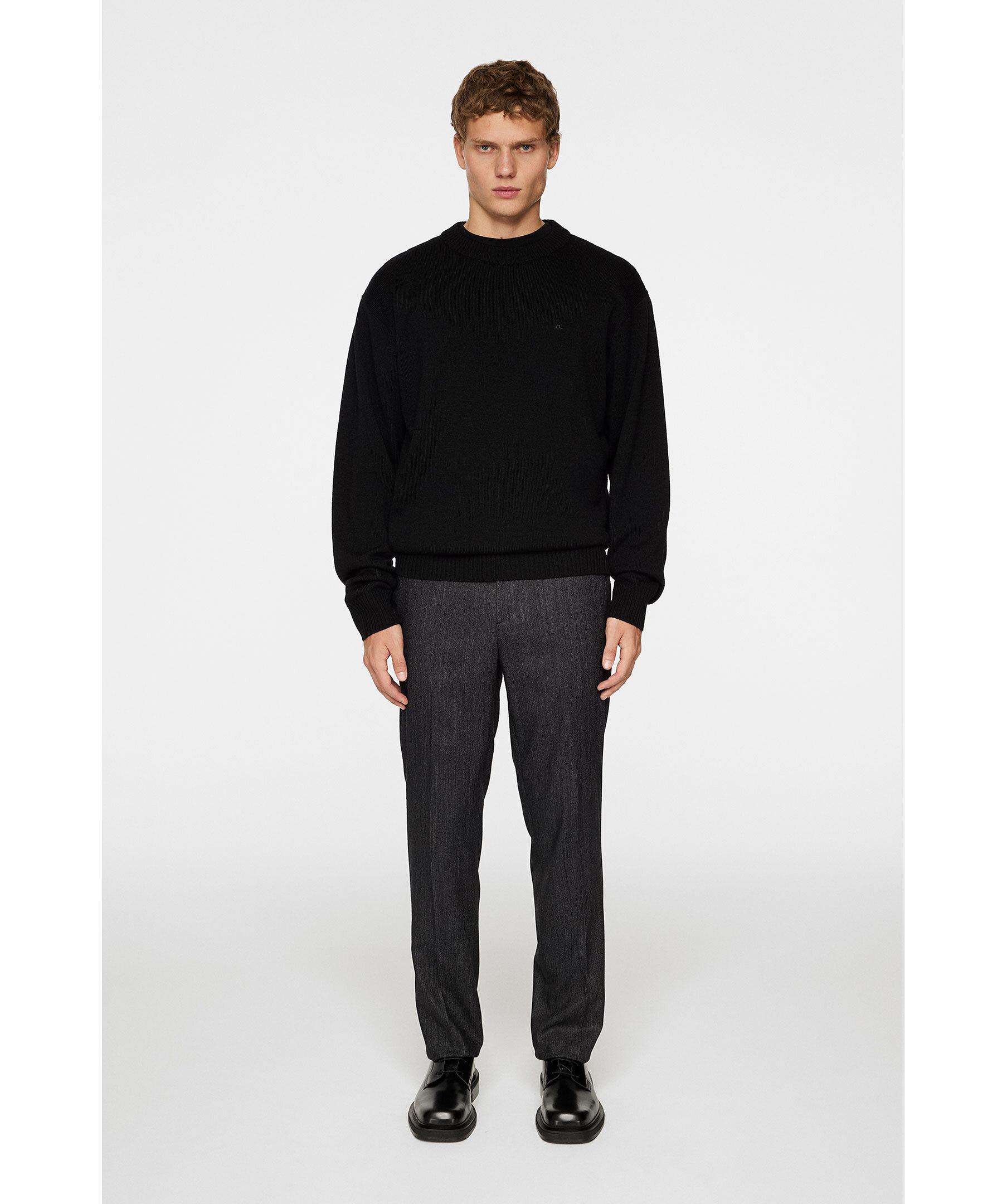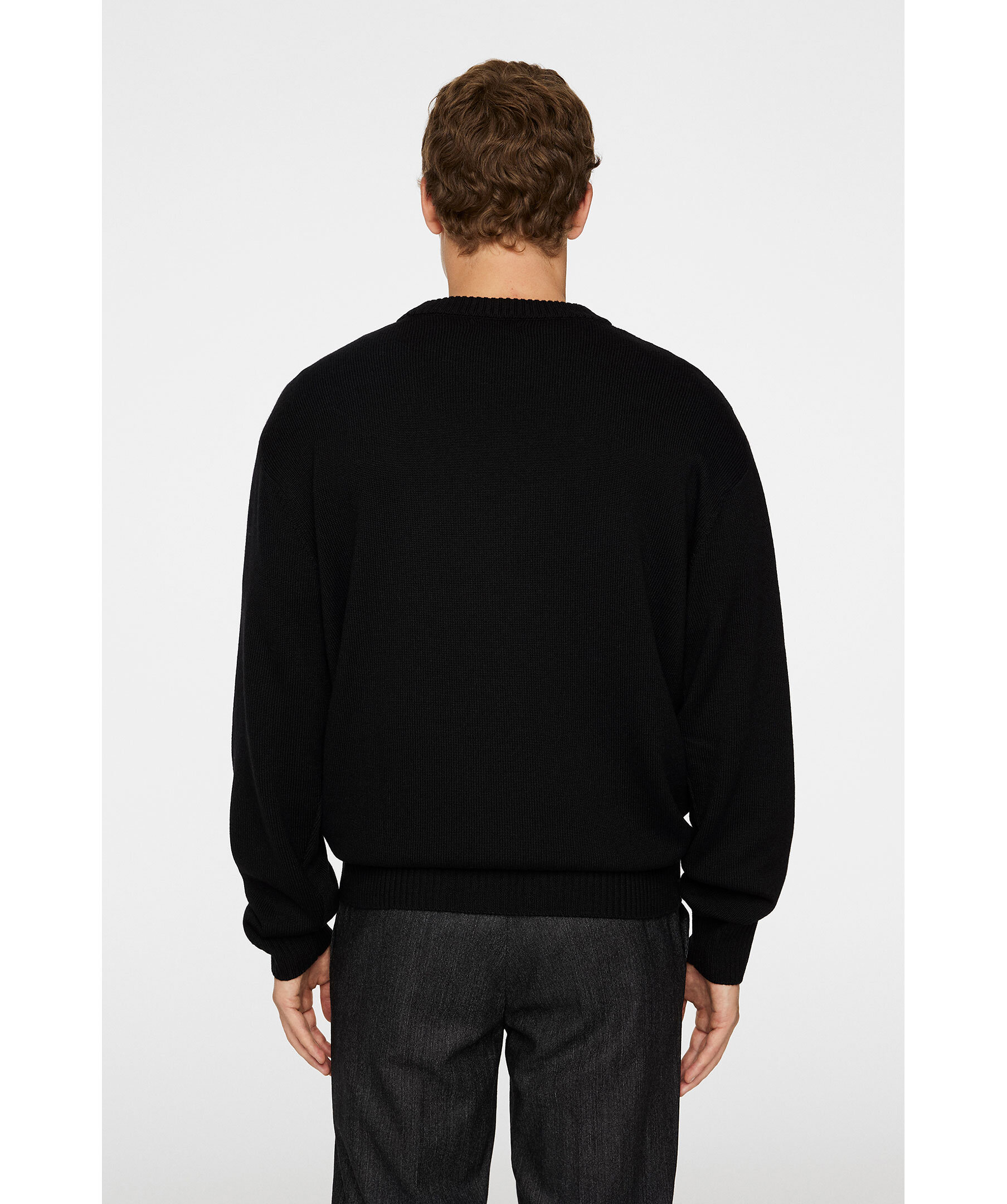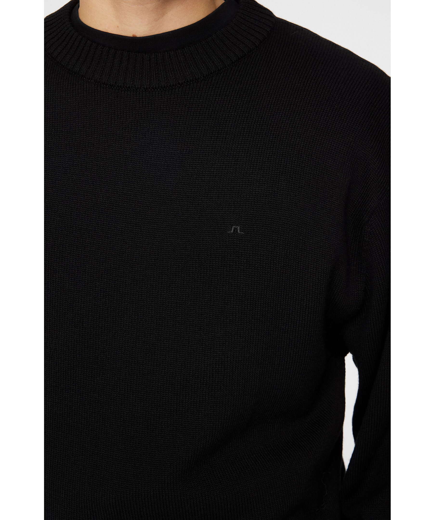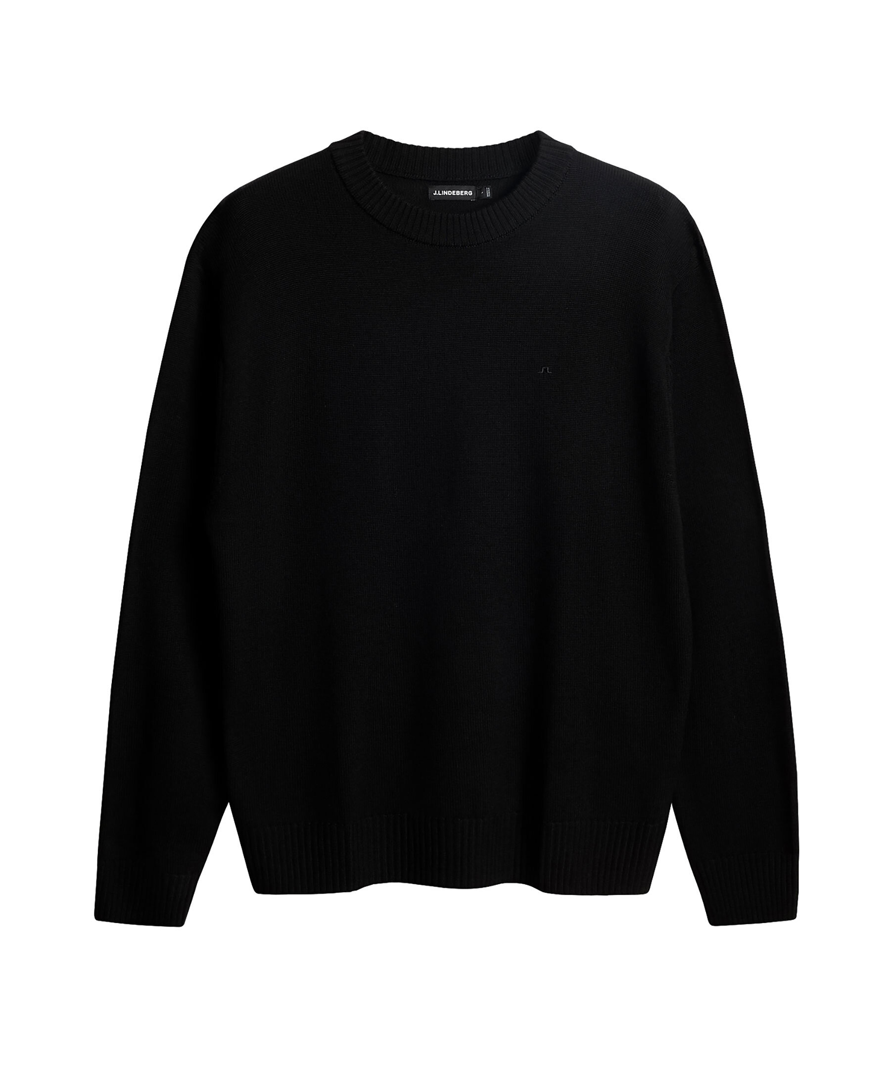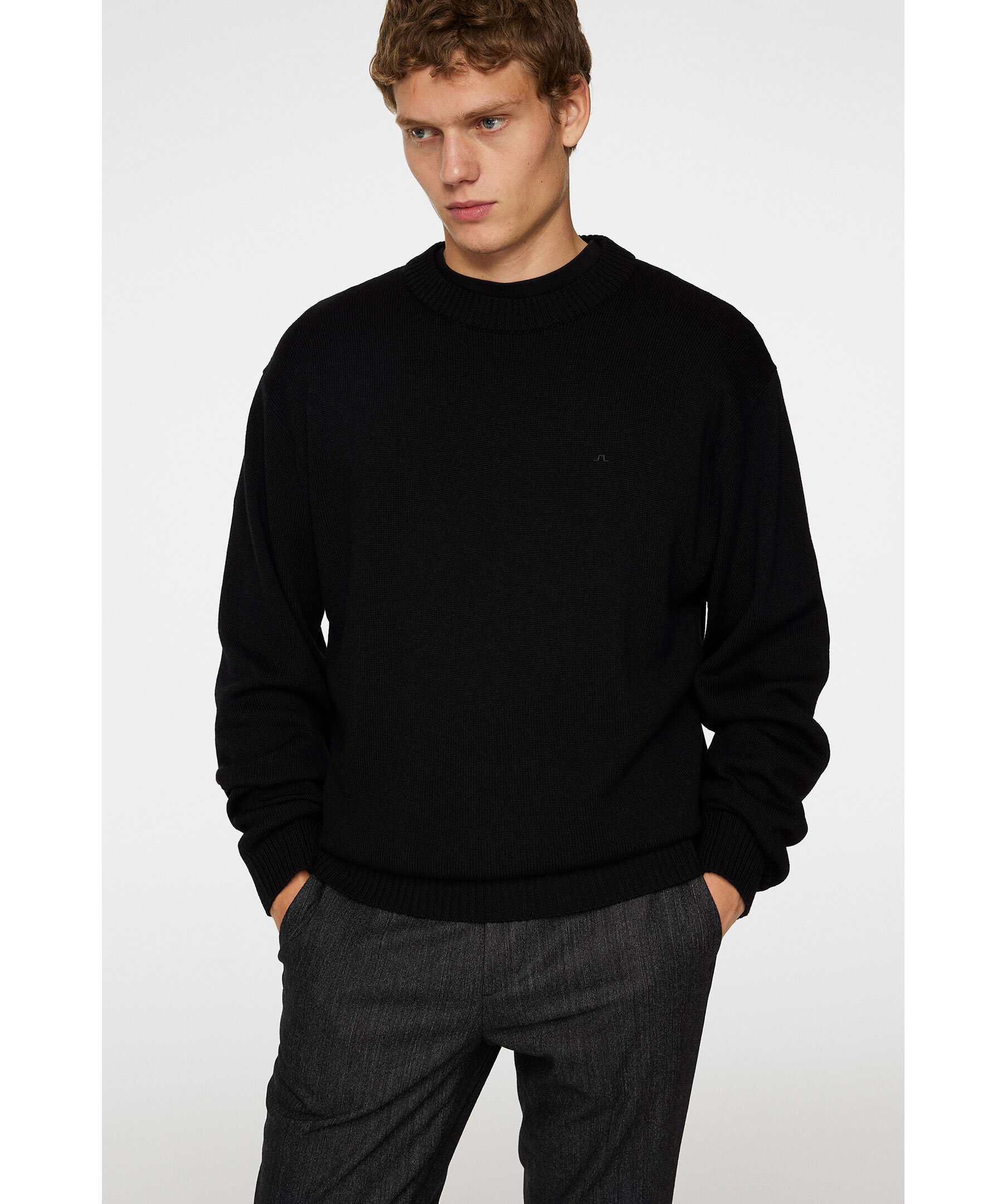 Svart stickad sweatshirt från J.Lindeberg. Tillverkad i ett lyxigt Tollegno-garn och är den perfekta blandningen av elegans och värme för det kallare halvåret. Den är tillverkad i mulesingfritt merinoull som omformats för höst- och vintersäsongen 24 med en något rymligare kropp, och den har stickats i tyngre garn för extra värme. Plagget är skuret i slimmad passform med en crewcut-halsringning. Det har ett tonat broderitryck på bröstet, modebetonade detaljer och en tubstickad ribbning i kragen som utstrålar simpel sofistikering.