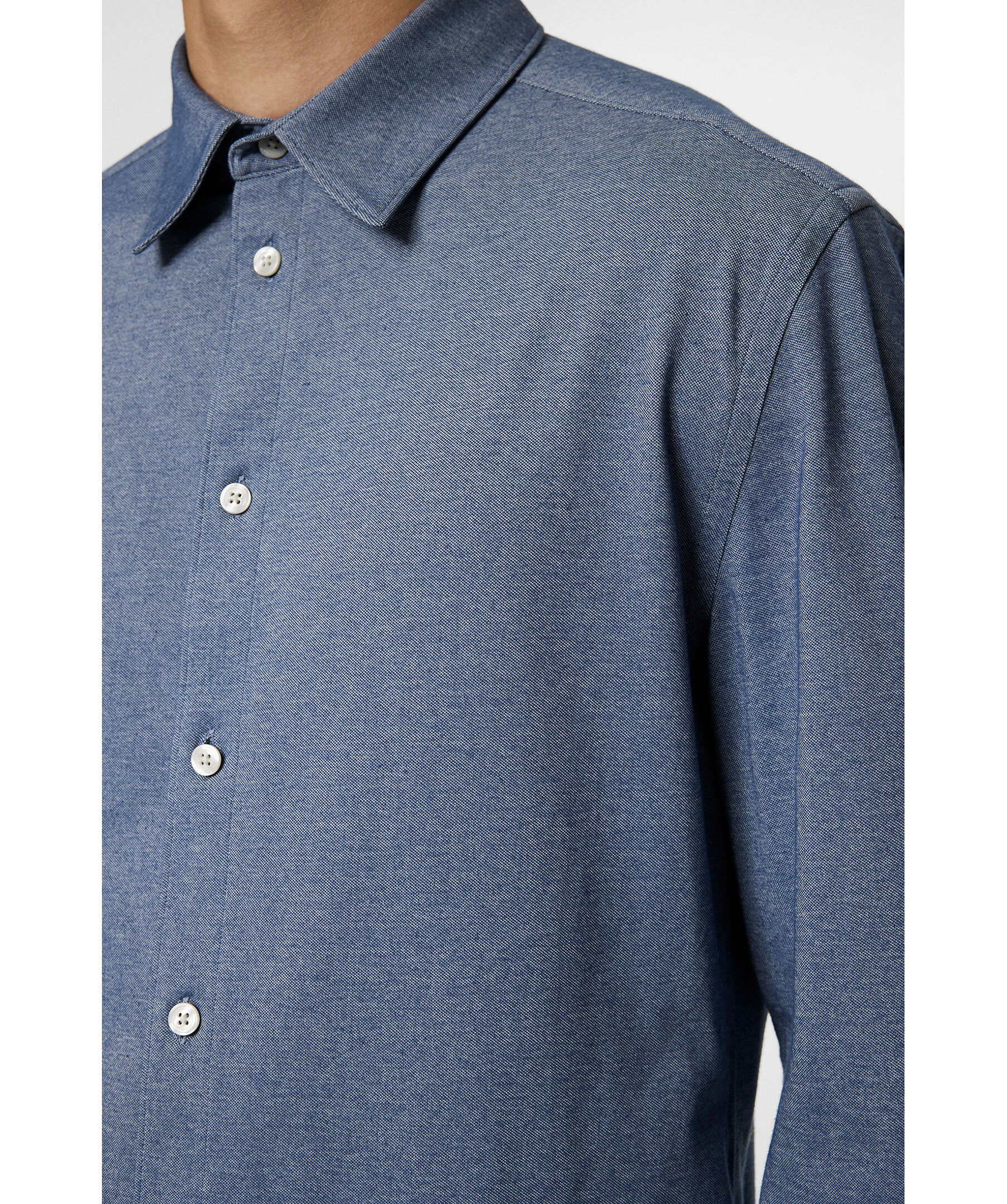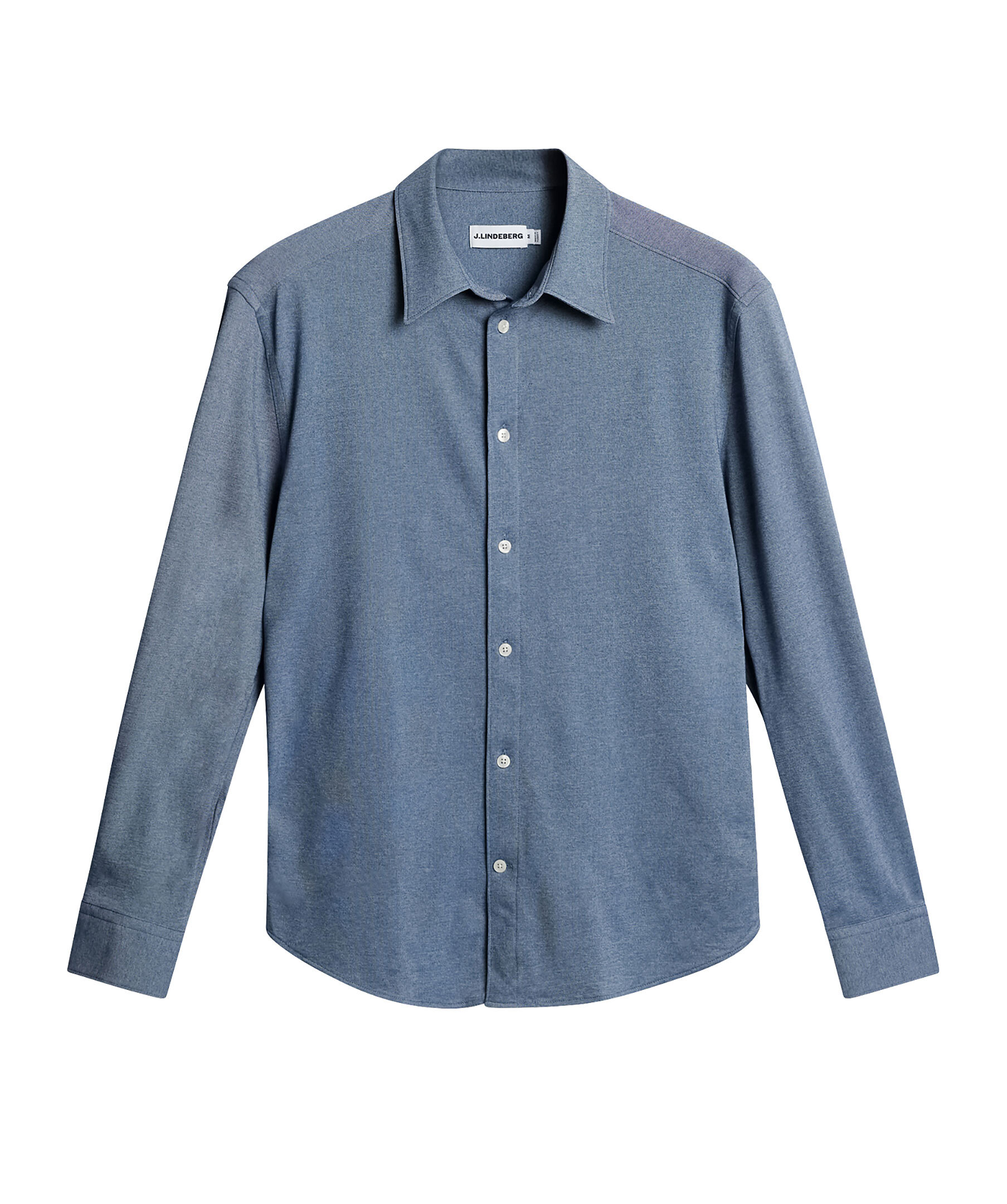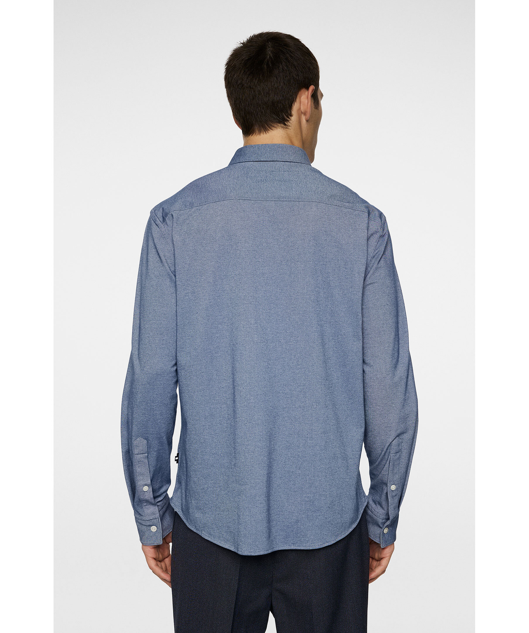 Blå, strukturvävd skjorta från J.Lindeberg. Skjortan blandar sömlöst traditionell design med modern komfort och har en klassisk krage med elegant fransk knappslå som ger ett tidlöst intryck. Den är designad i slimmad passform som följer kroppen och skapar en skarp siluett.