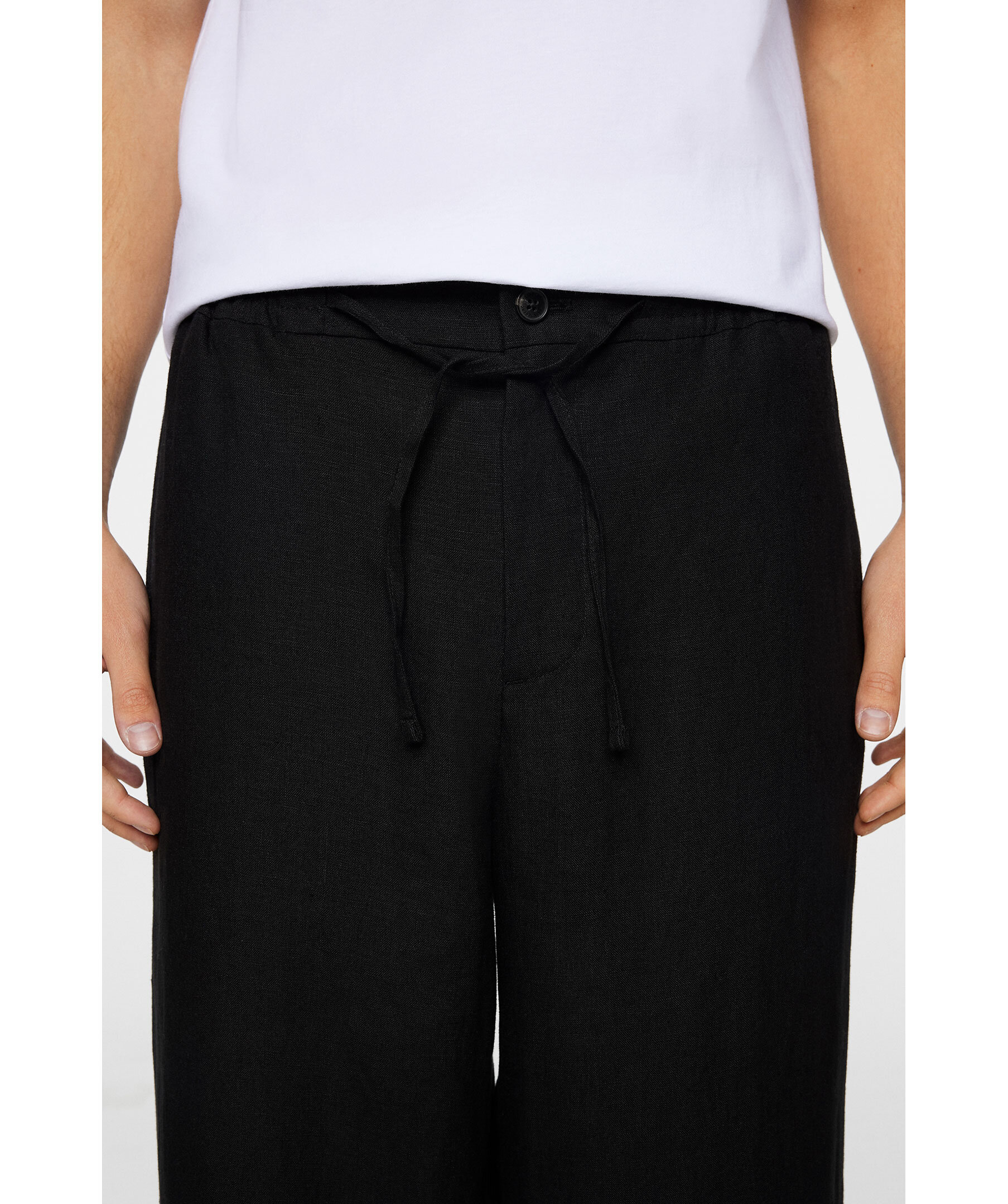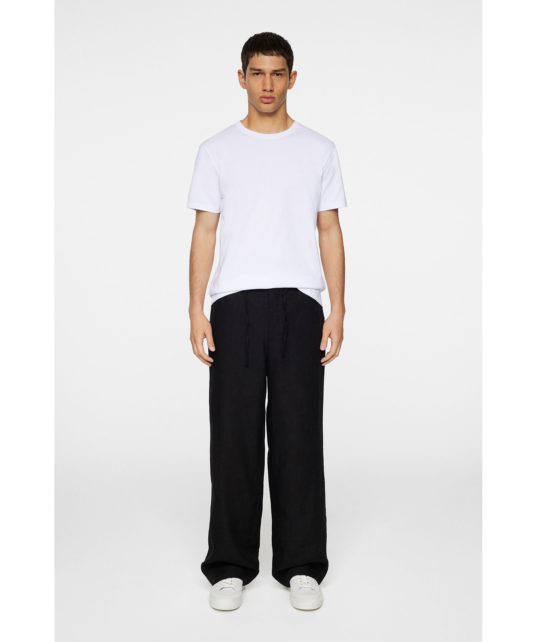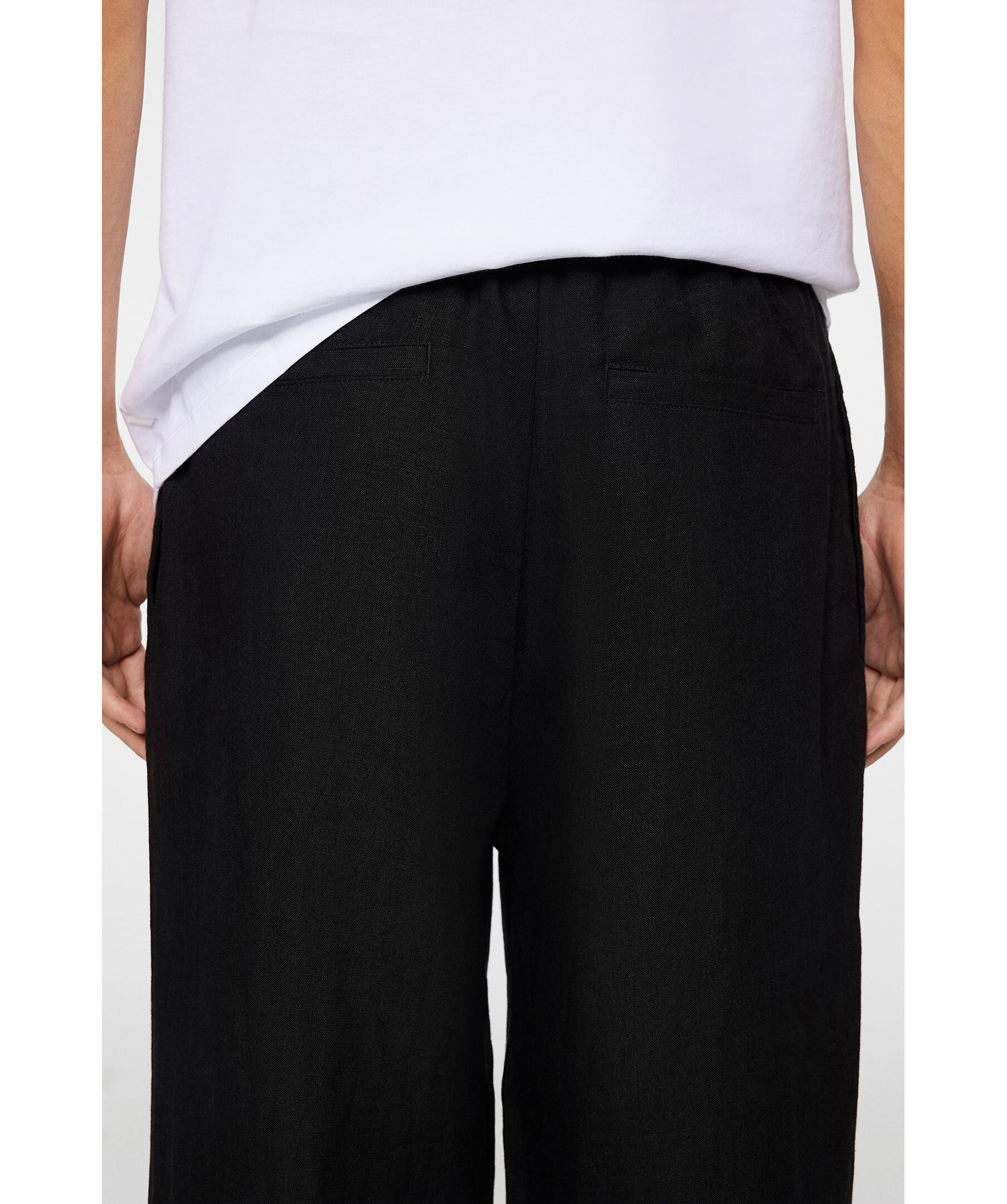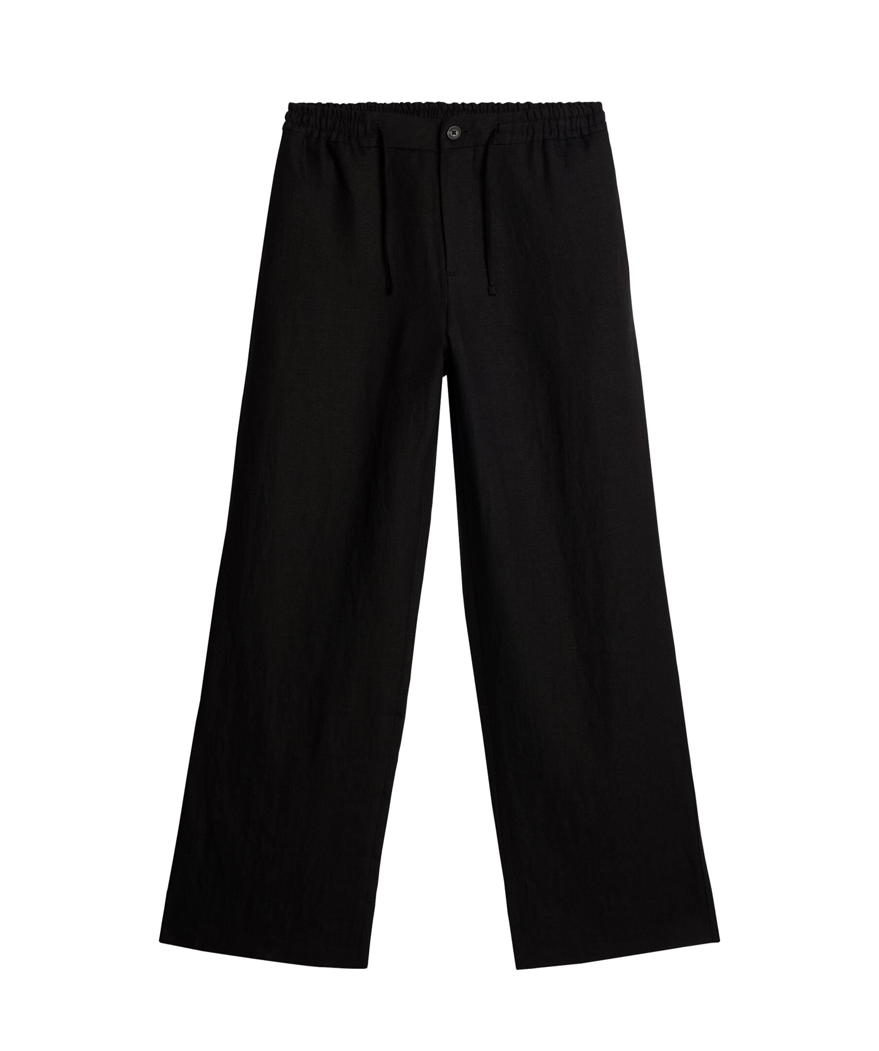 Svarta linnebyxor från J Lindeberg. Byxorna har en vid passform, dragsko i midjan, två sidfickor samt passpoalfickor baktill. Tillverkade i 100% linne.