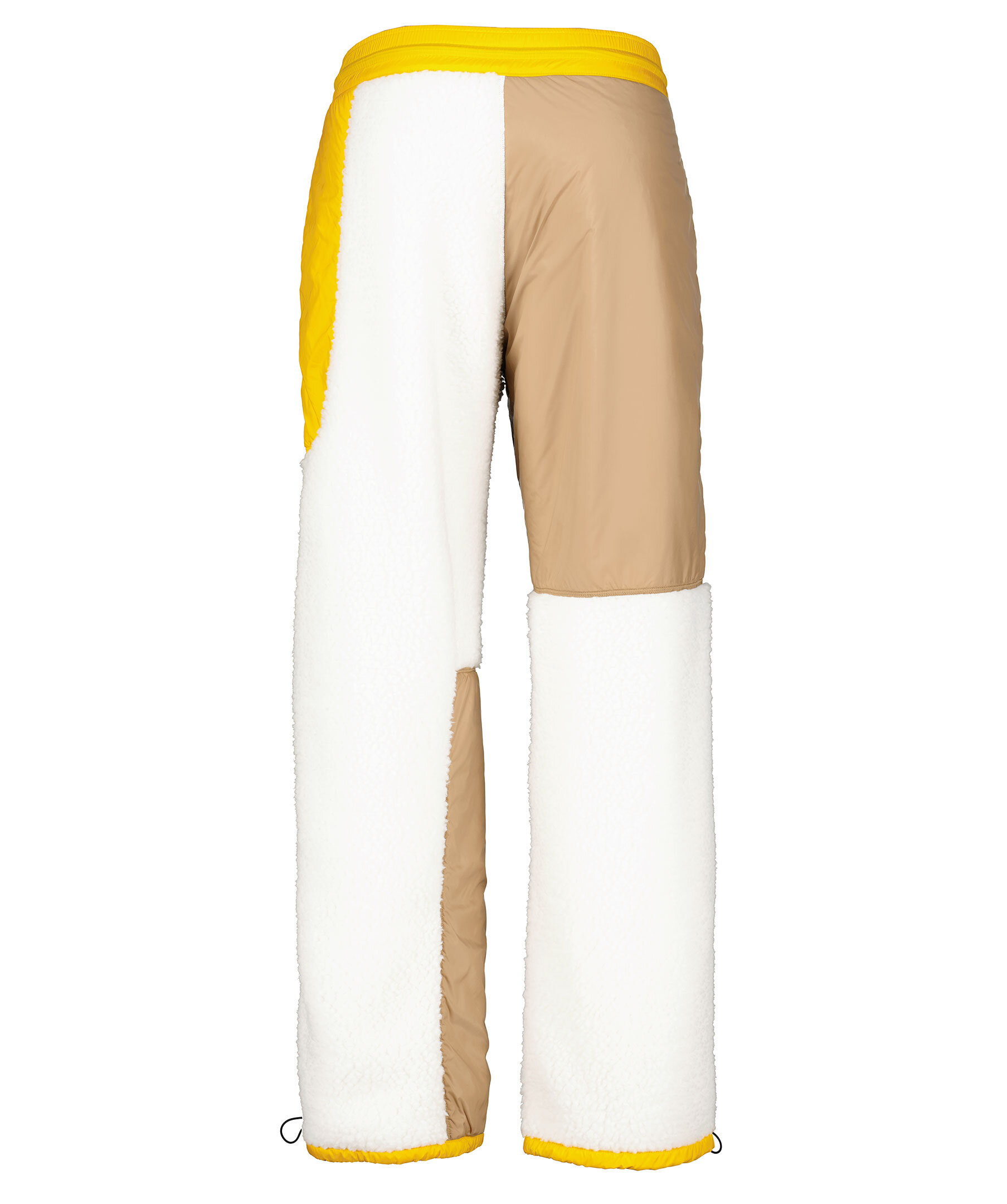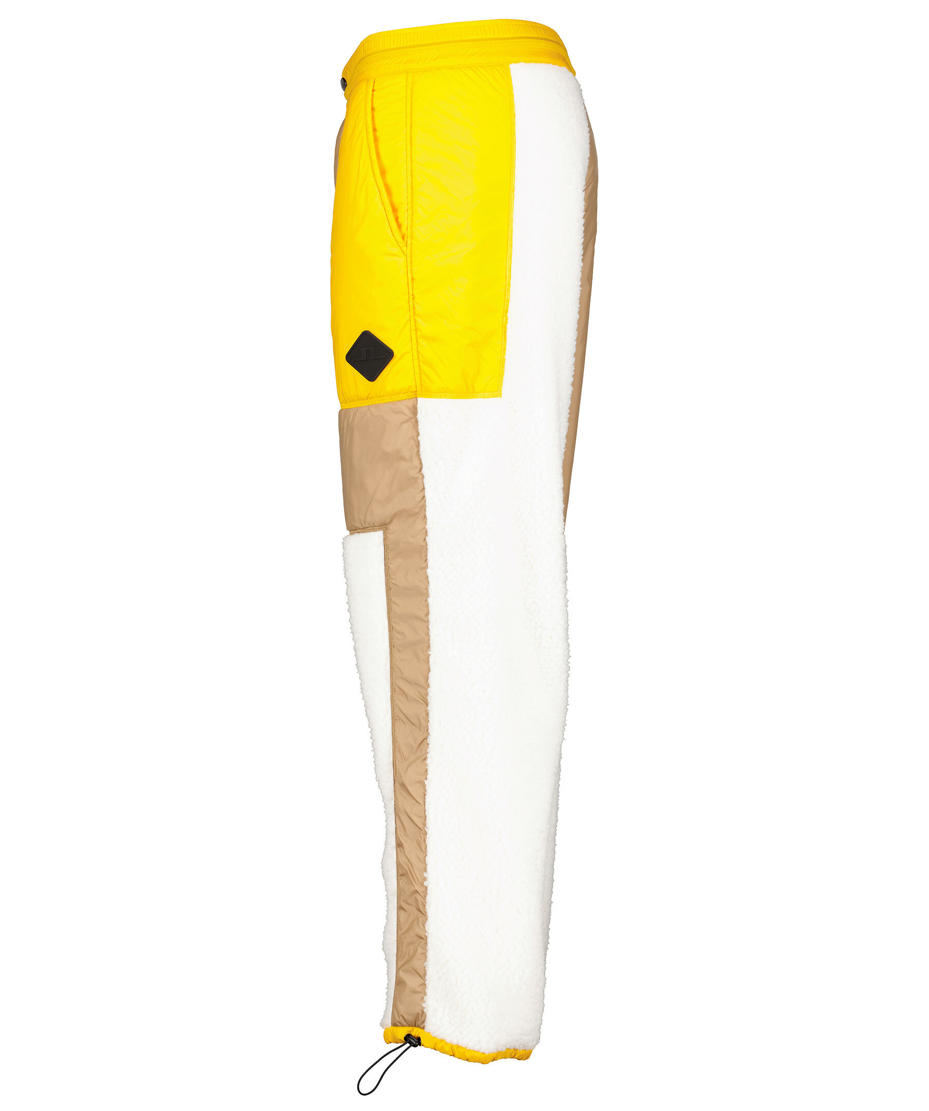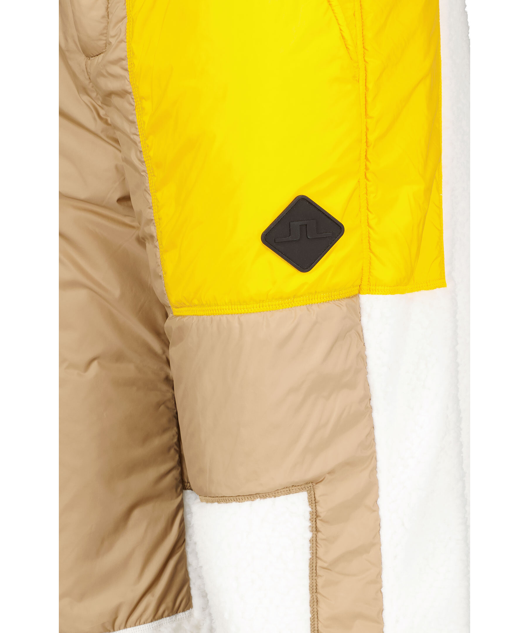 Gula, beigea och vita blockfärgade byxor från J Lindeberg. Två fickor framtill. Dragsko i midjan och benslut. gylf med tryckknapp och dragkedja. Gummerad logotyp på vänster ben.