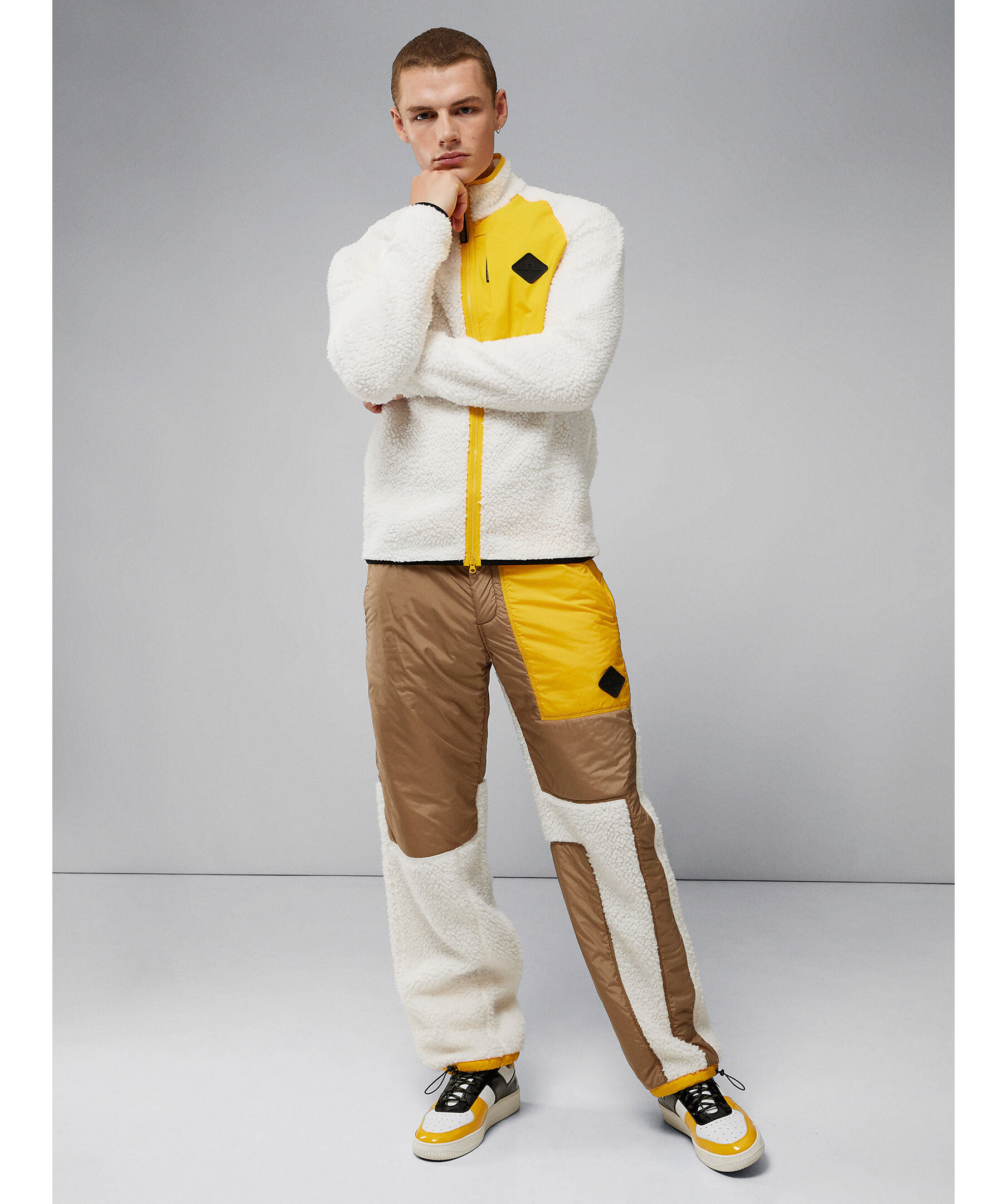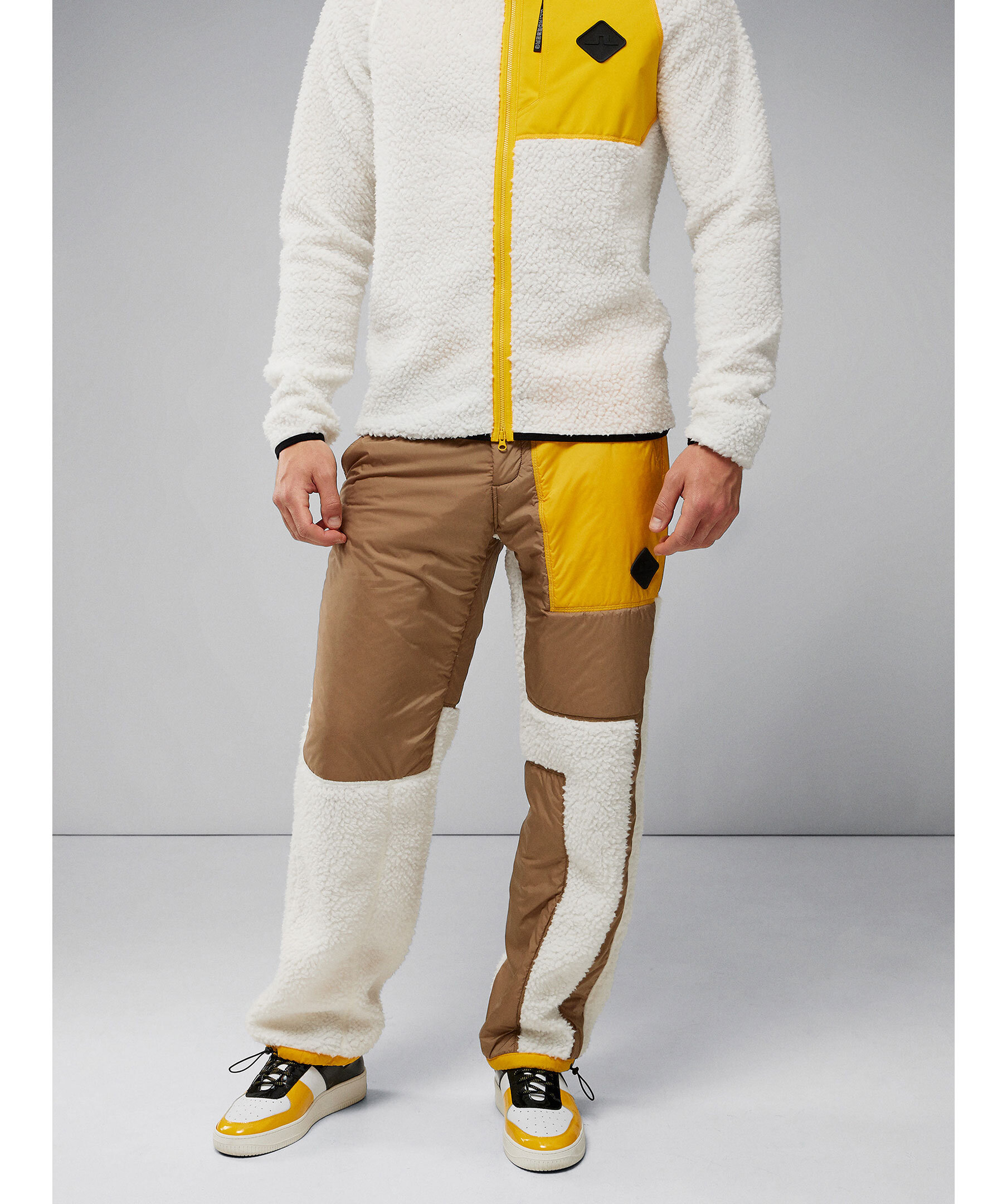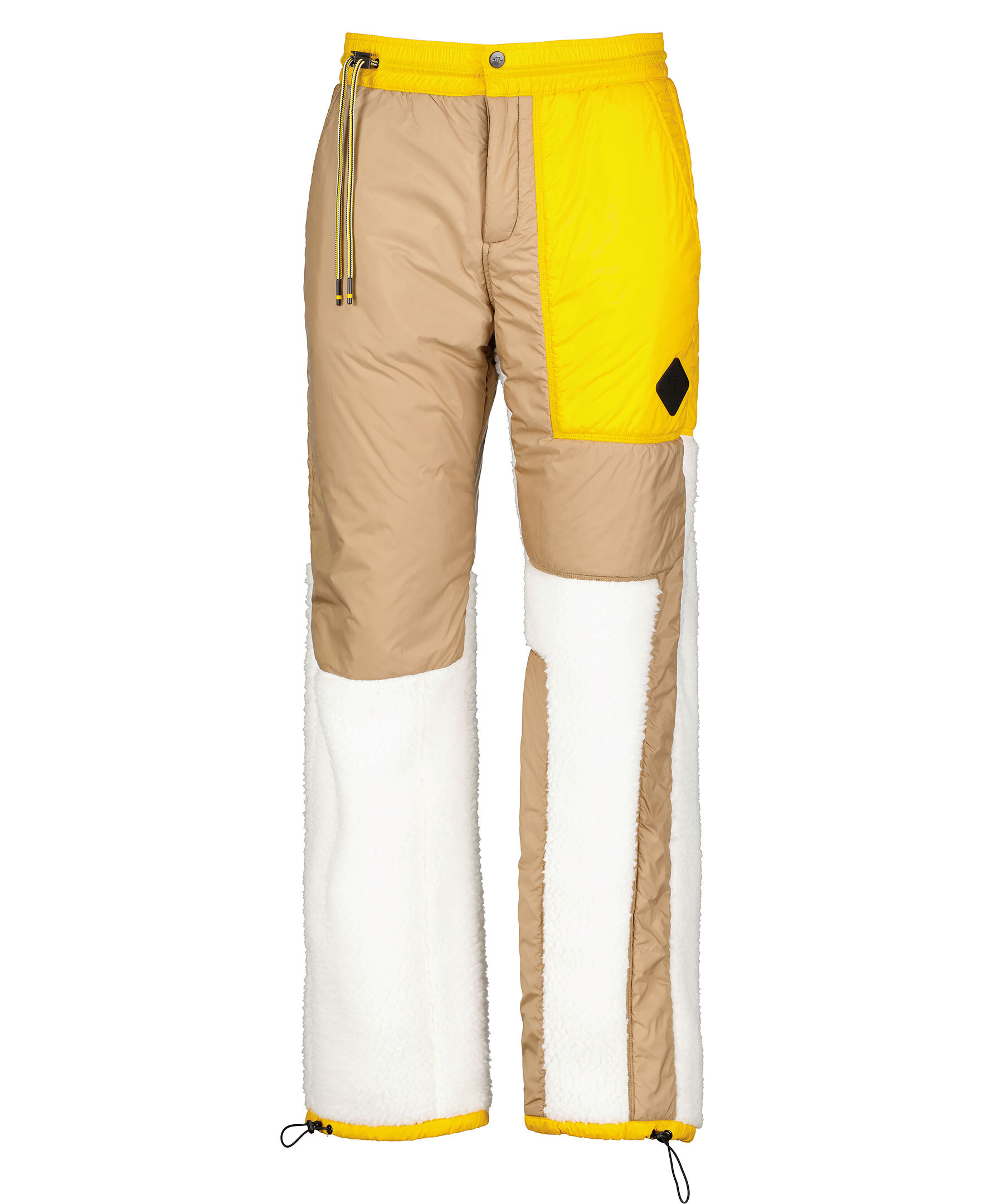 Gula, beigea och vita blockfärgade byxor från J Lindeberg. Två fickor framtill. Dragsko i midjan och benslut. gylf med tryckknapp och dragkedja. Gummerad logotyp på vänster ben.