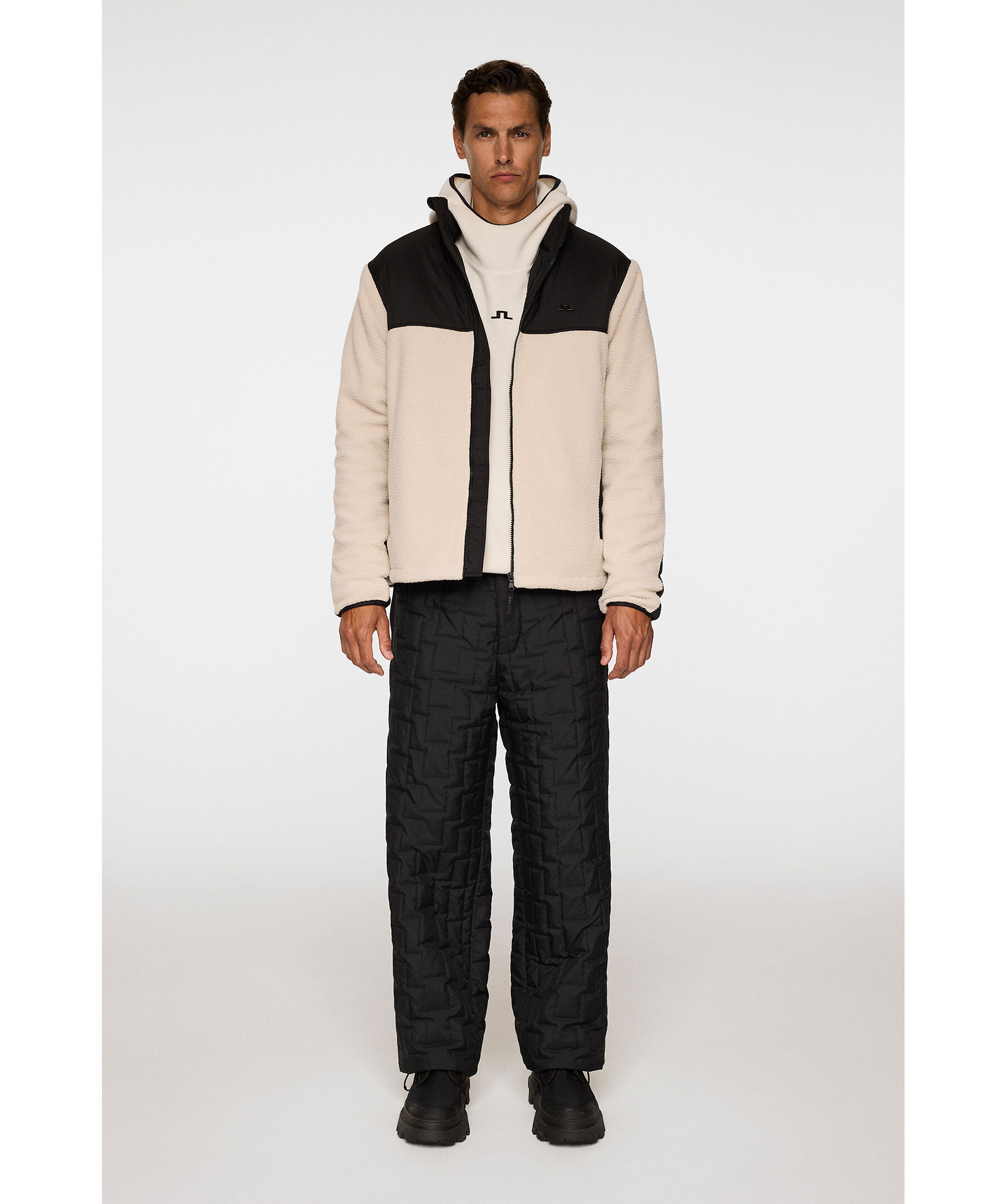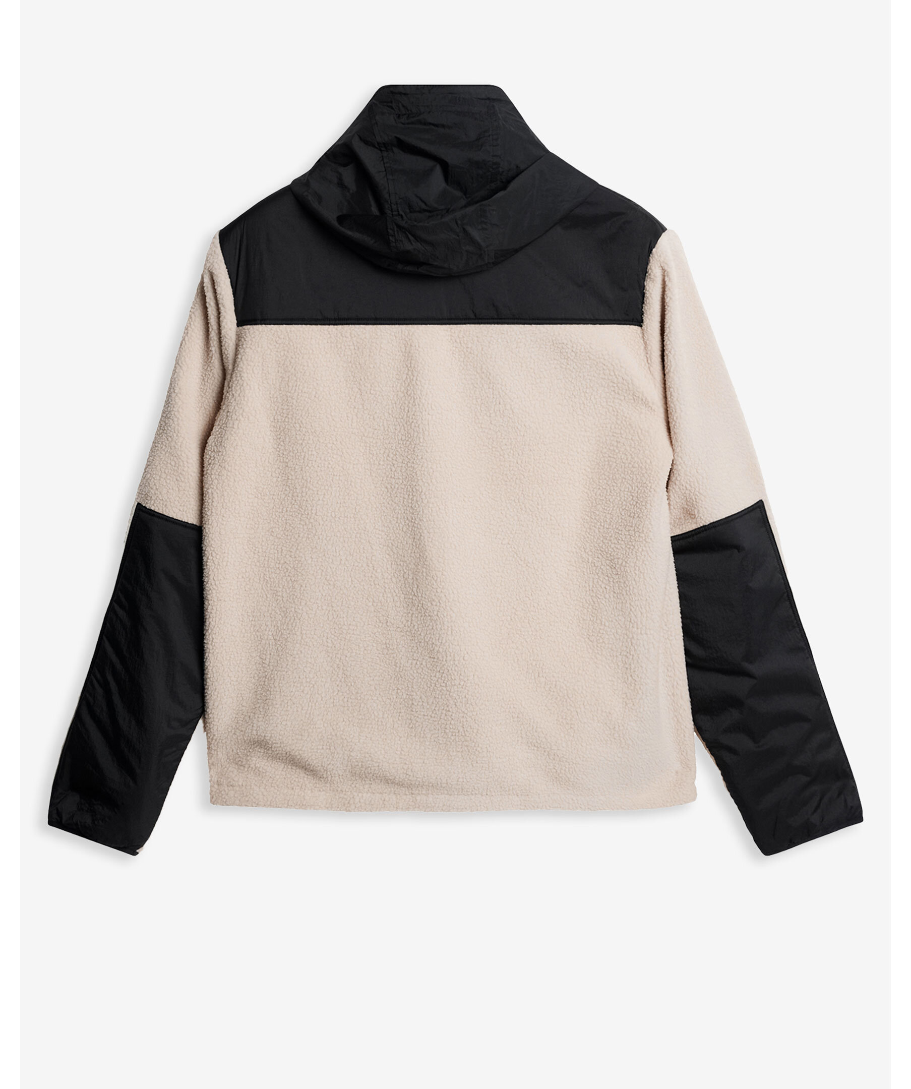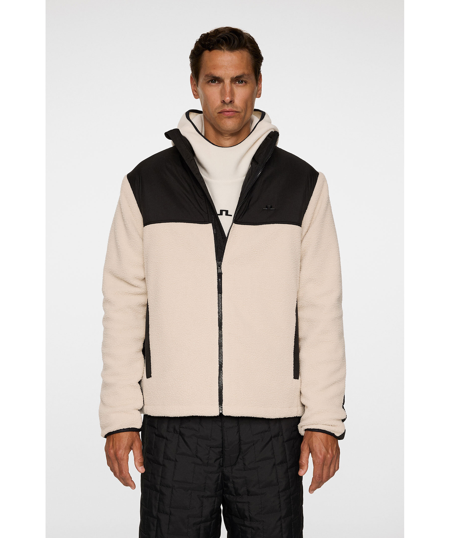 Svart och beige fleecejacka från J Lindberg. Jackan stängs med dragedja och har en dold, packbar huva, dragsko i midjan, fullfodring och säkra fickor med dragkedja är detta ett yttre lager som klarar allt. Tillverkad i återvunnen nylon samt återvunnen polarfleece med jersey.