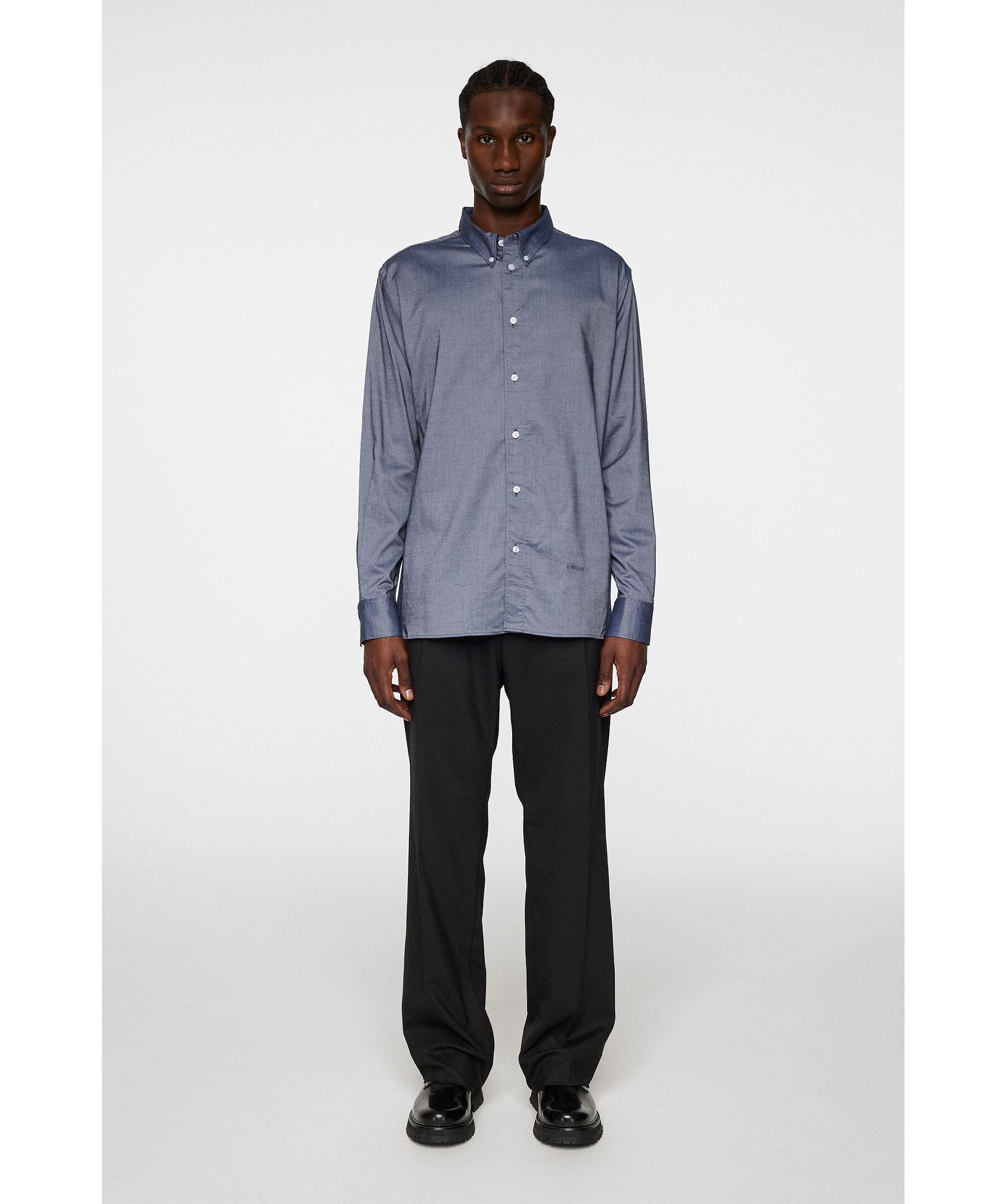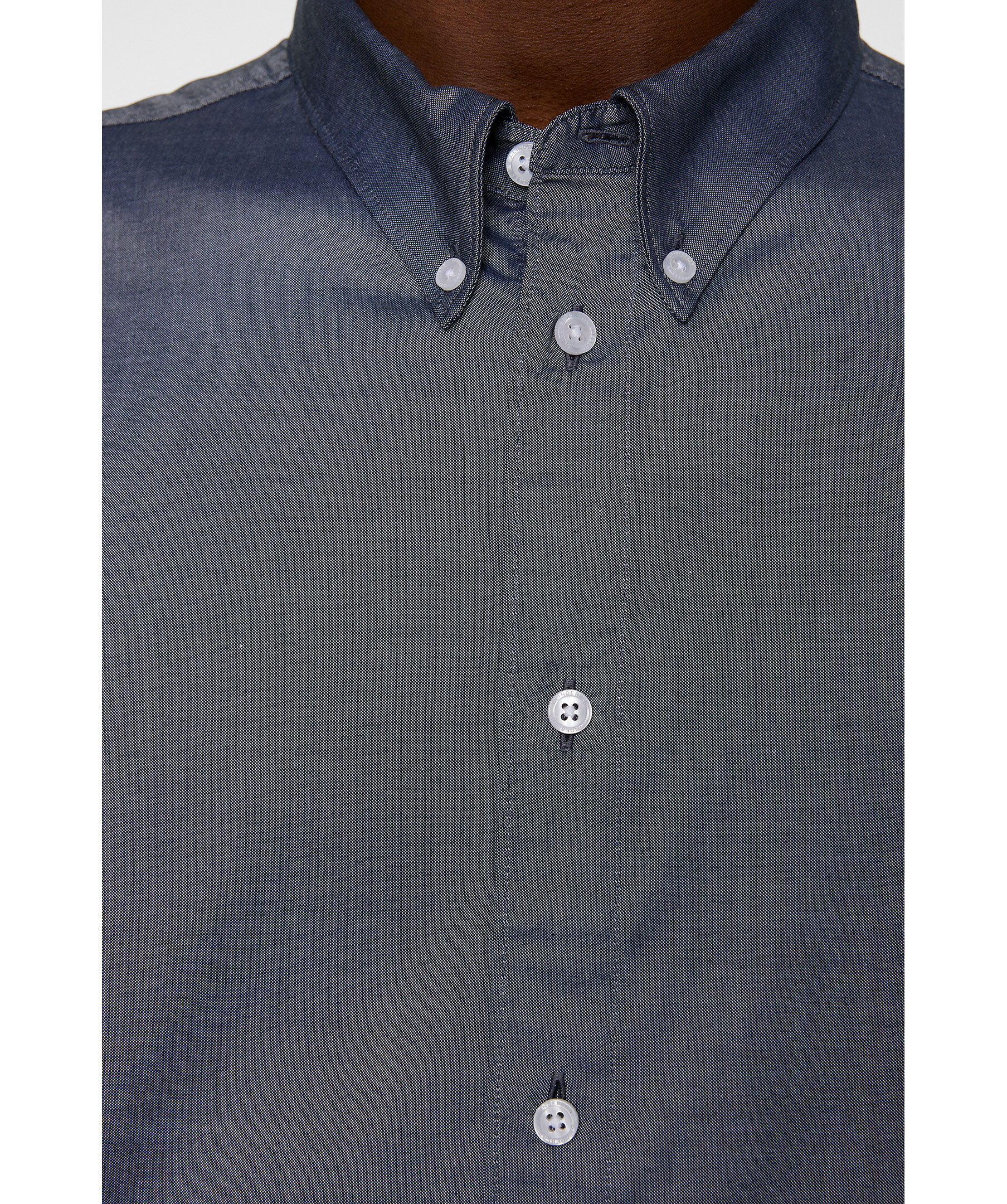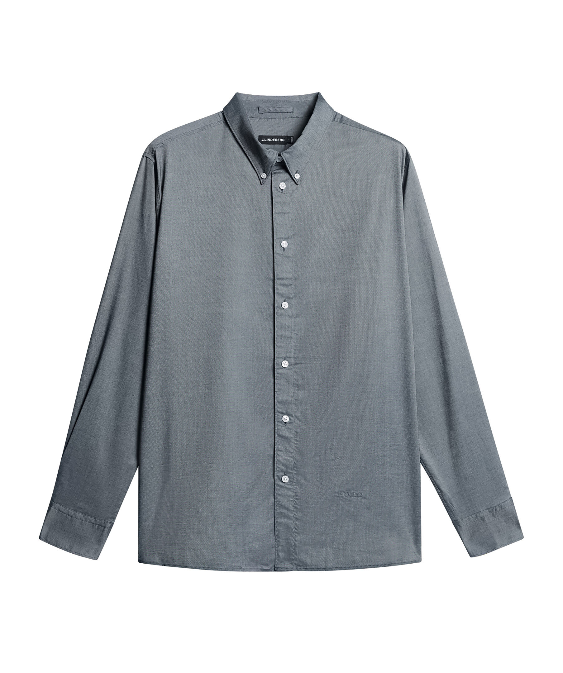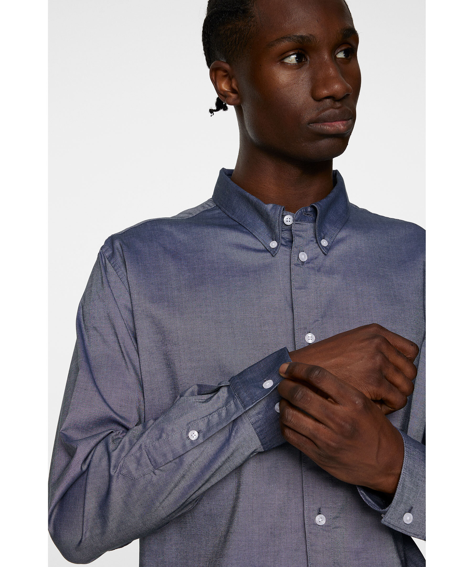 Blå oxfordskjorta från J.Lindeberg. Gjord i en lyocell blandning. Skjortan har en raffinerad Oxford-struktur och button down-krage som förkroppsligar blandningen av tradition och modernt. De märkesprydda pärlemorknapparna i pudrad finish ger plagget en sofistikerad touch medan den subtilt broderade logotypen framtill stärker dess identitet.