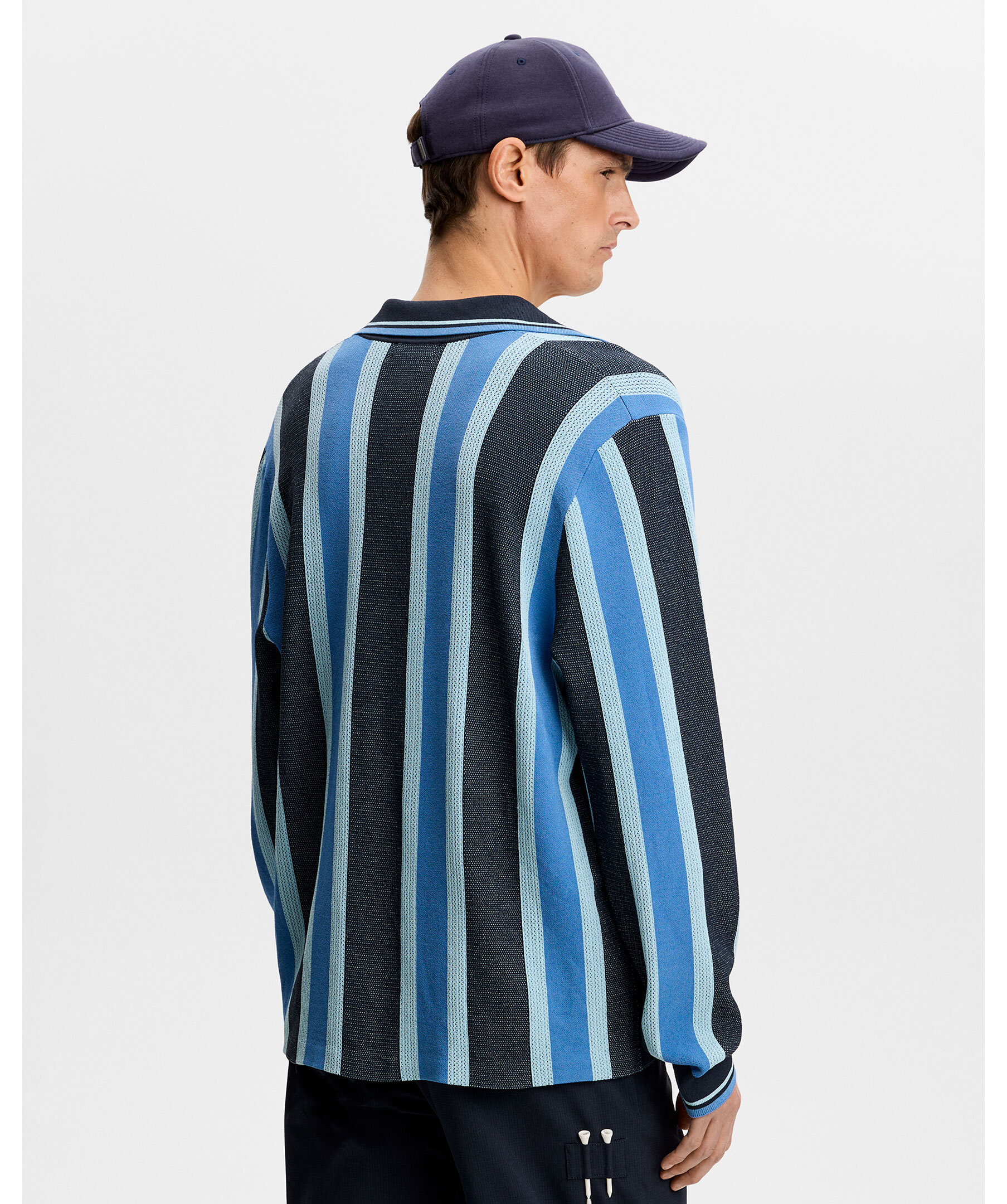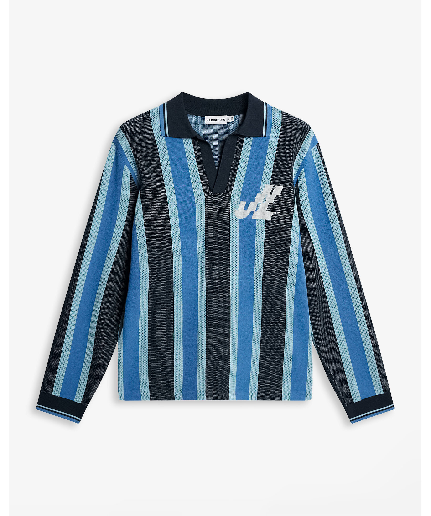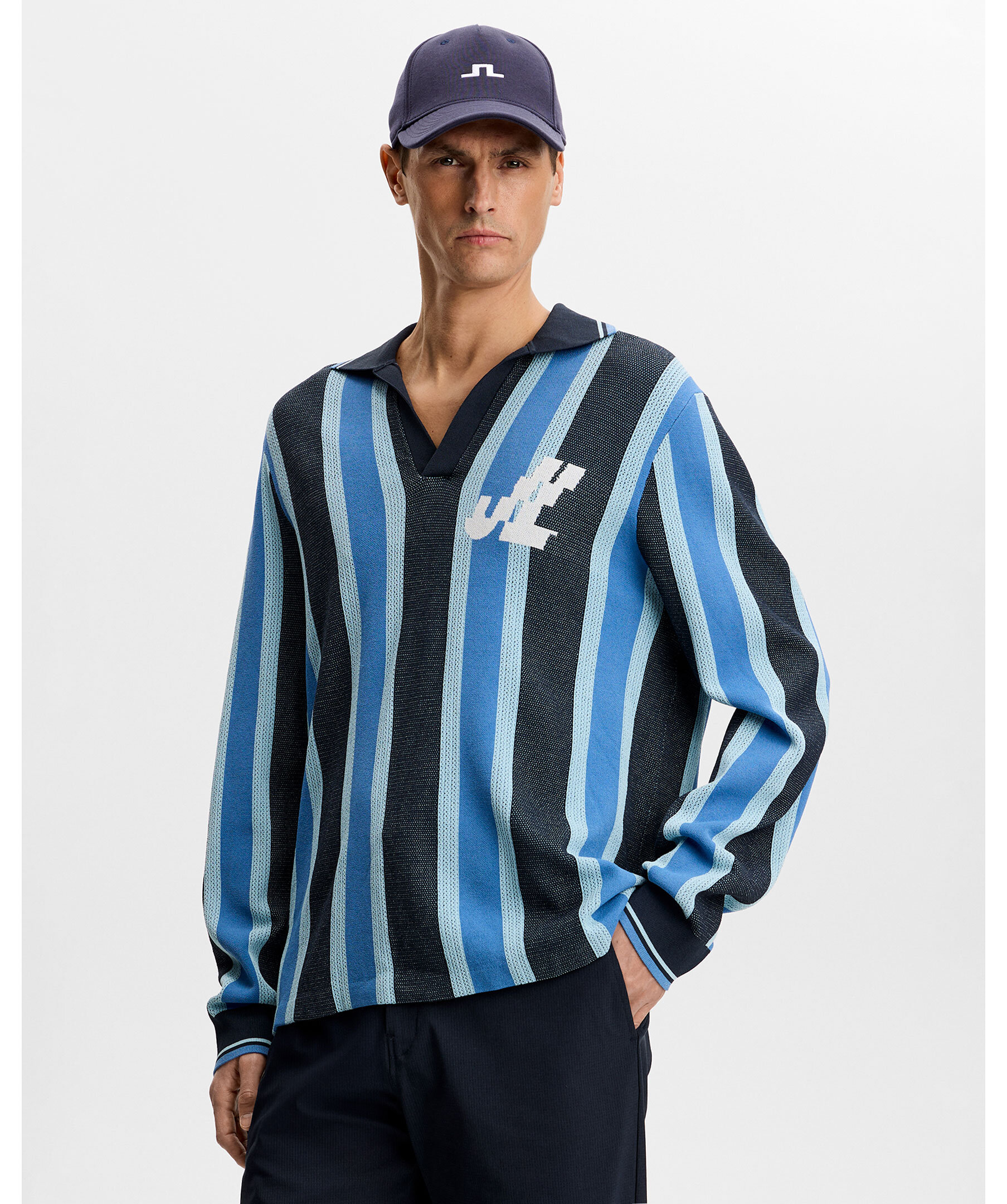 J Lindeberg Silas Stripe Polo Knit - Navy