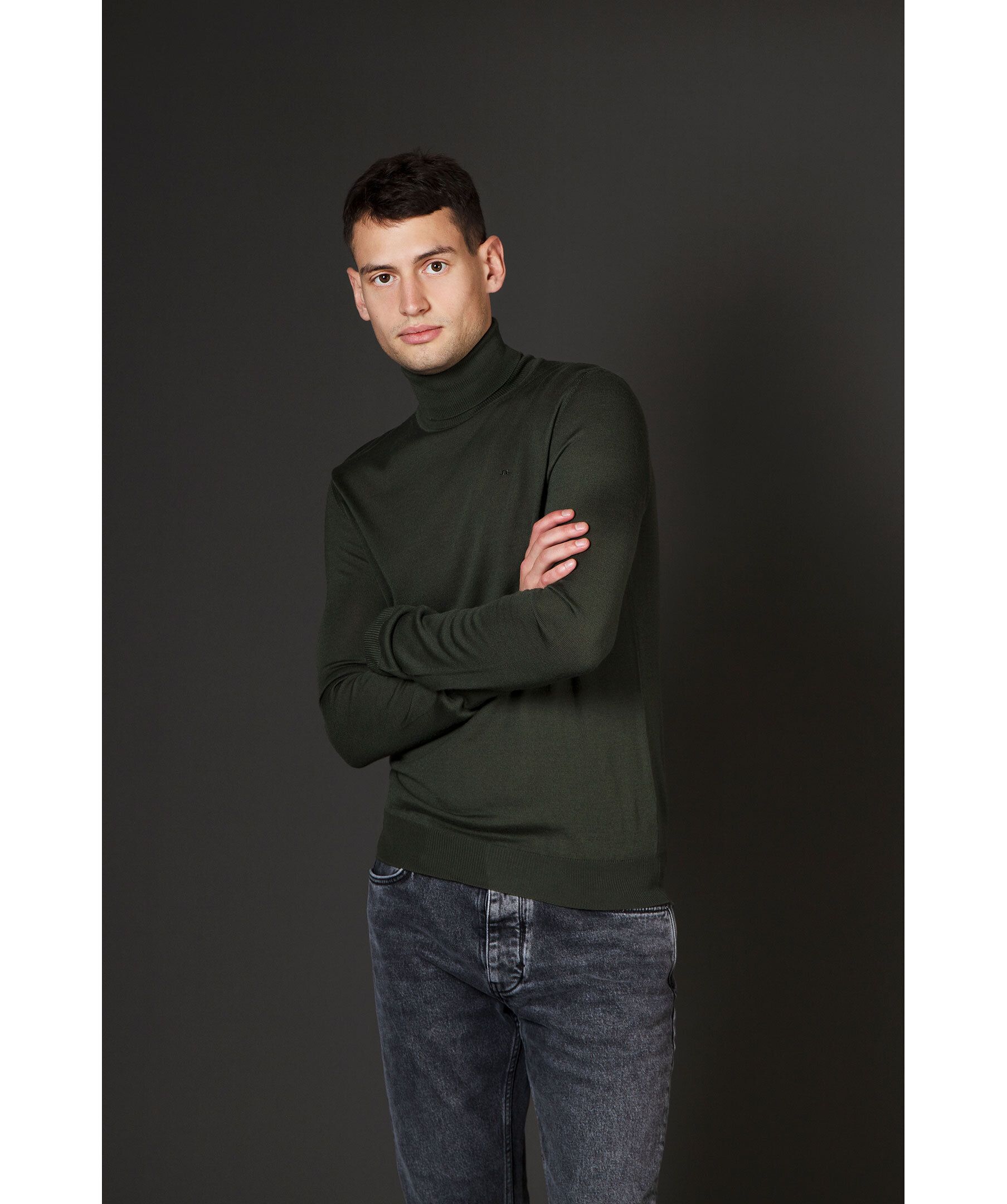 Mossgrön, finstickad polotröja från J.Lindeberg. Tillverkad i merinoull och har fint ribbade muddar på ärmar, på kragen och i plaggslutet. Liten broderad logga i ton-i ton på bröstet.