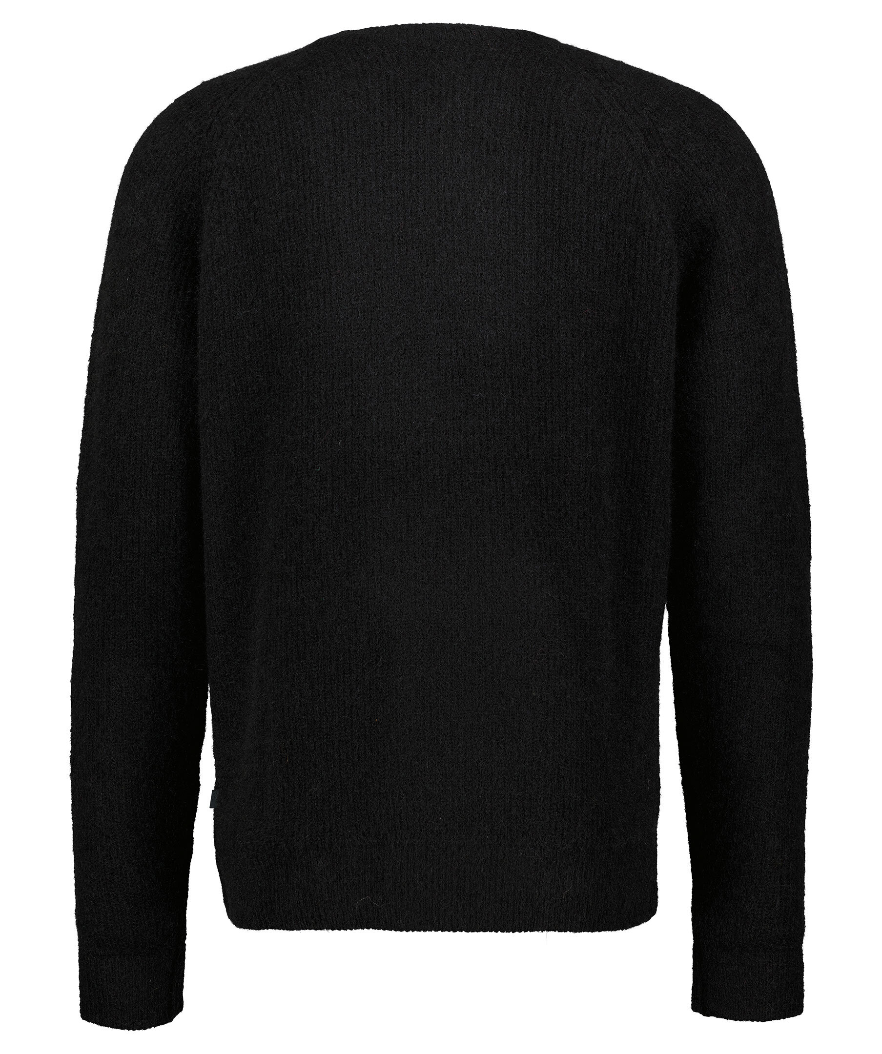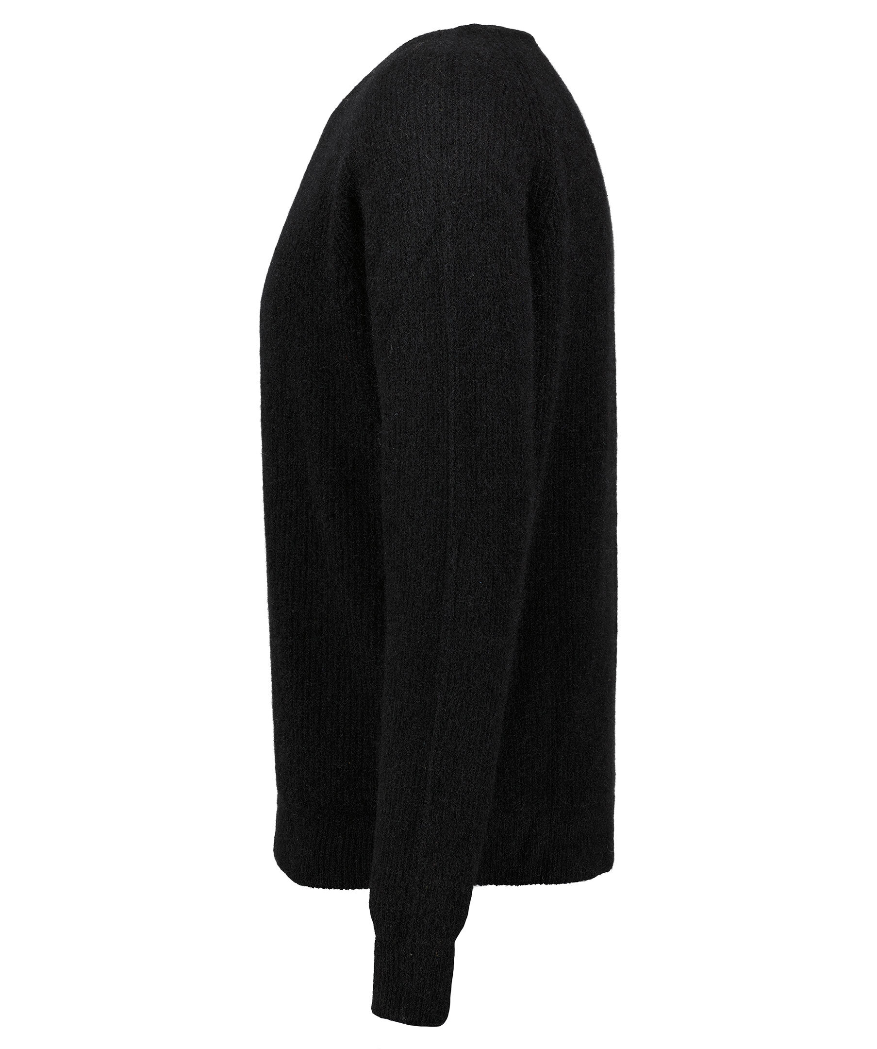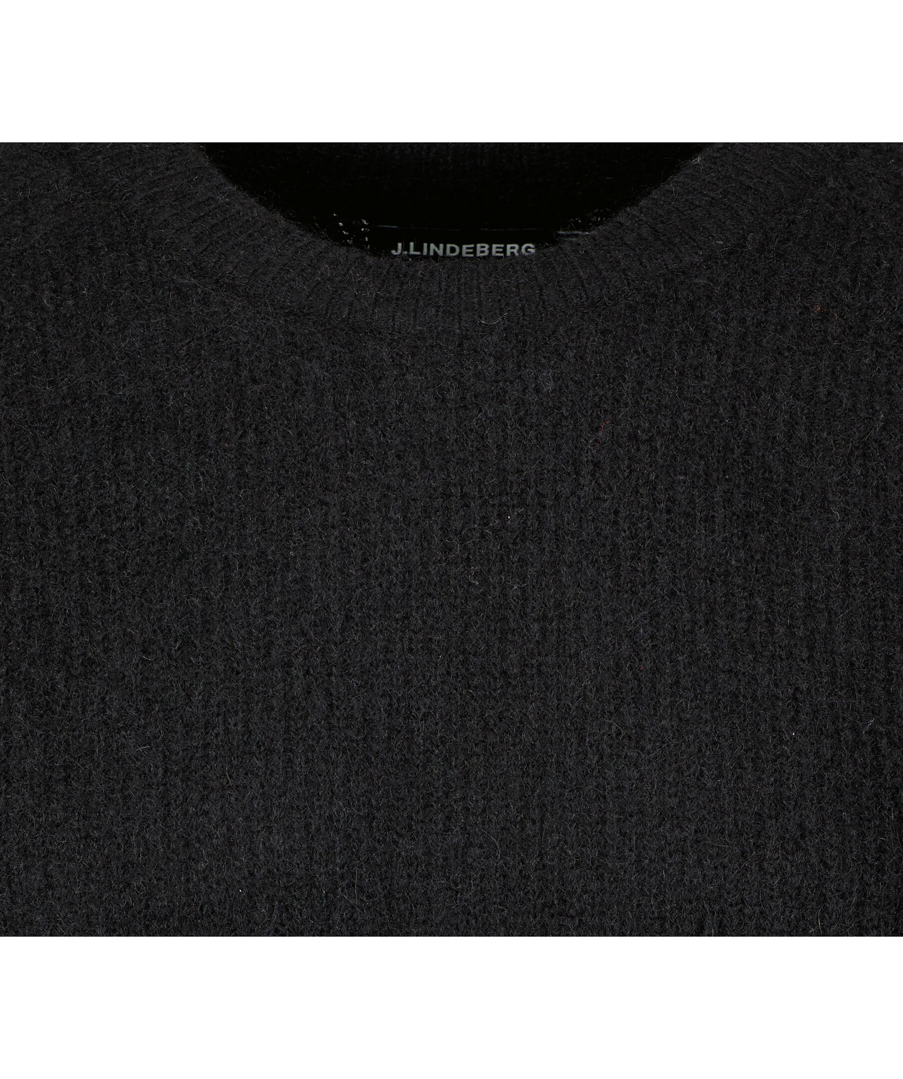 Svart stickad tröja från J.Lindeberg. Gjord i en mohairblandning med hårig struktur. Rundad hals och ribbade muddar.