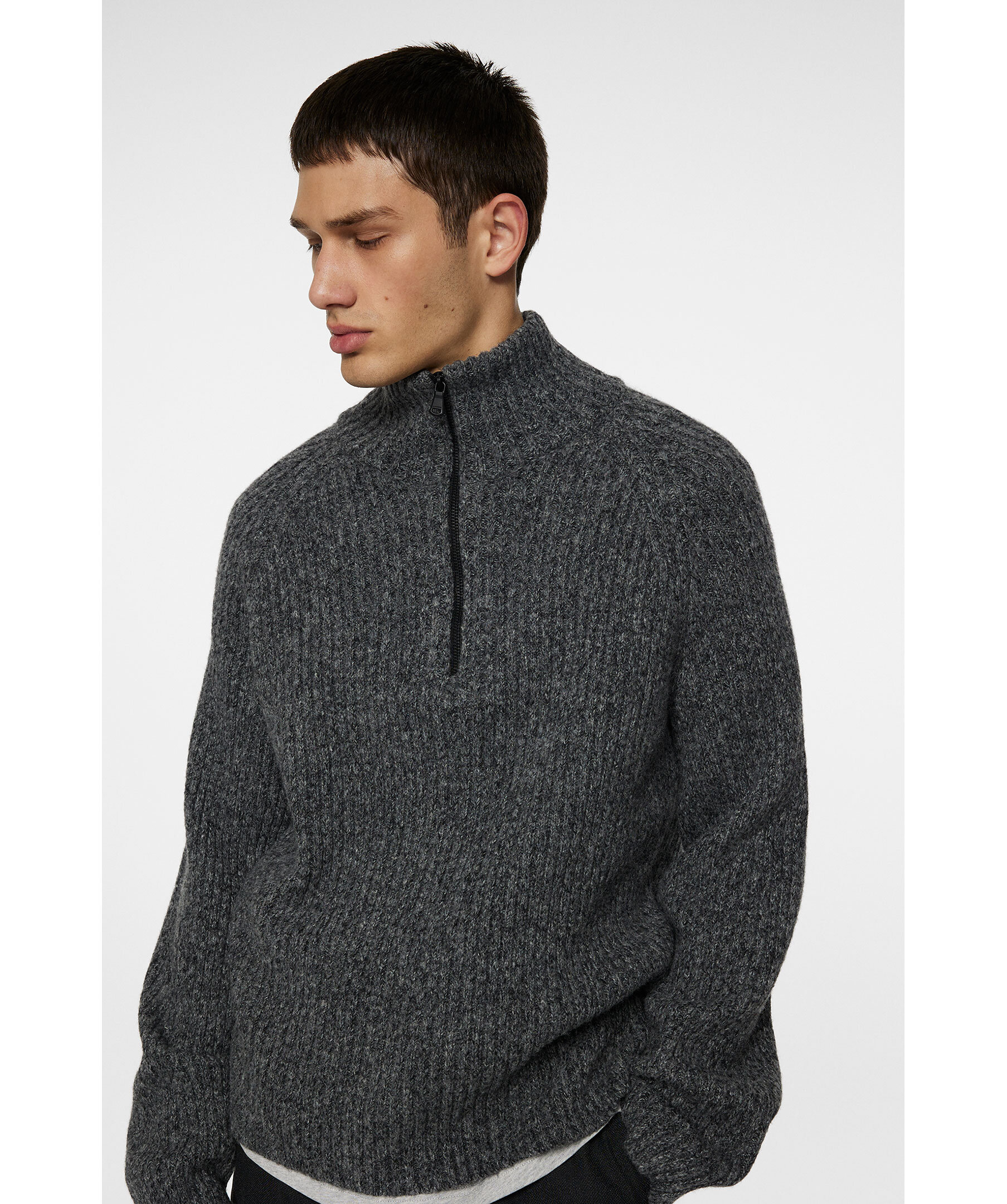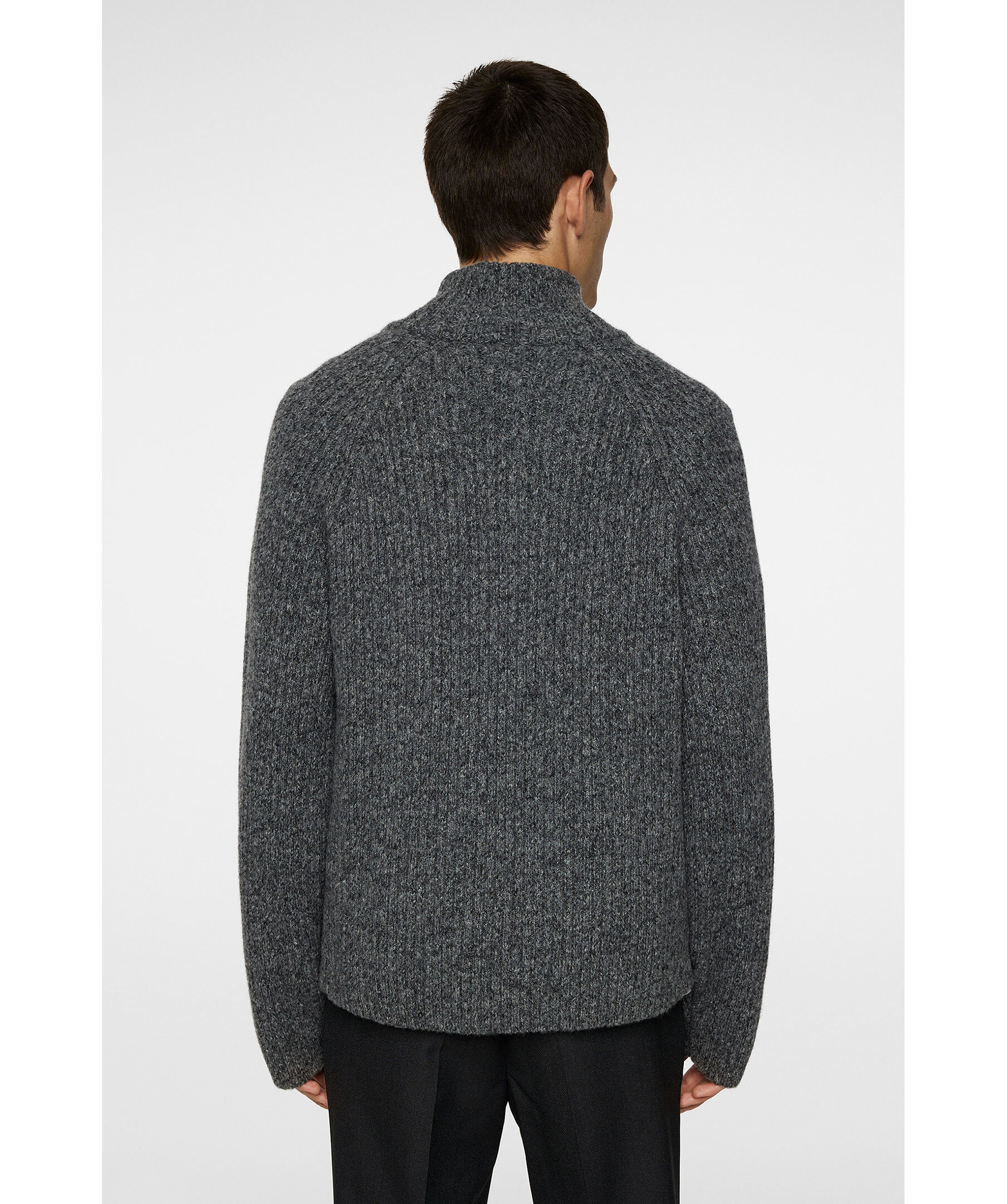 Grå, stilfull och mångsidig stickad tröja från J.Lindeberg. Gjord i en värmande blandning av ull, återvunnen polyamid och alpaca. Tröjan har en bekväm raglanärm, ribbade muddar och en half-zip krage.