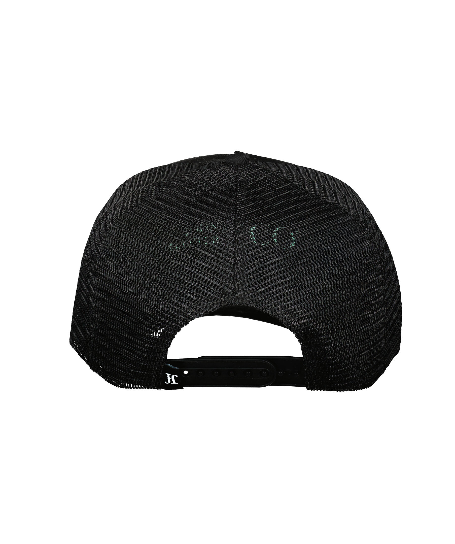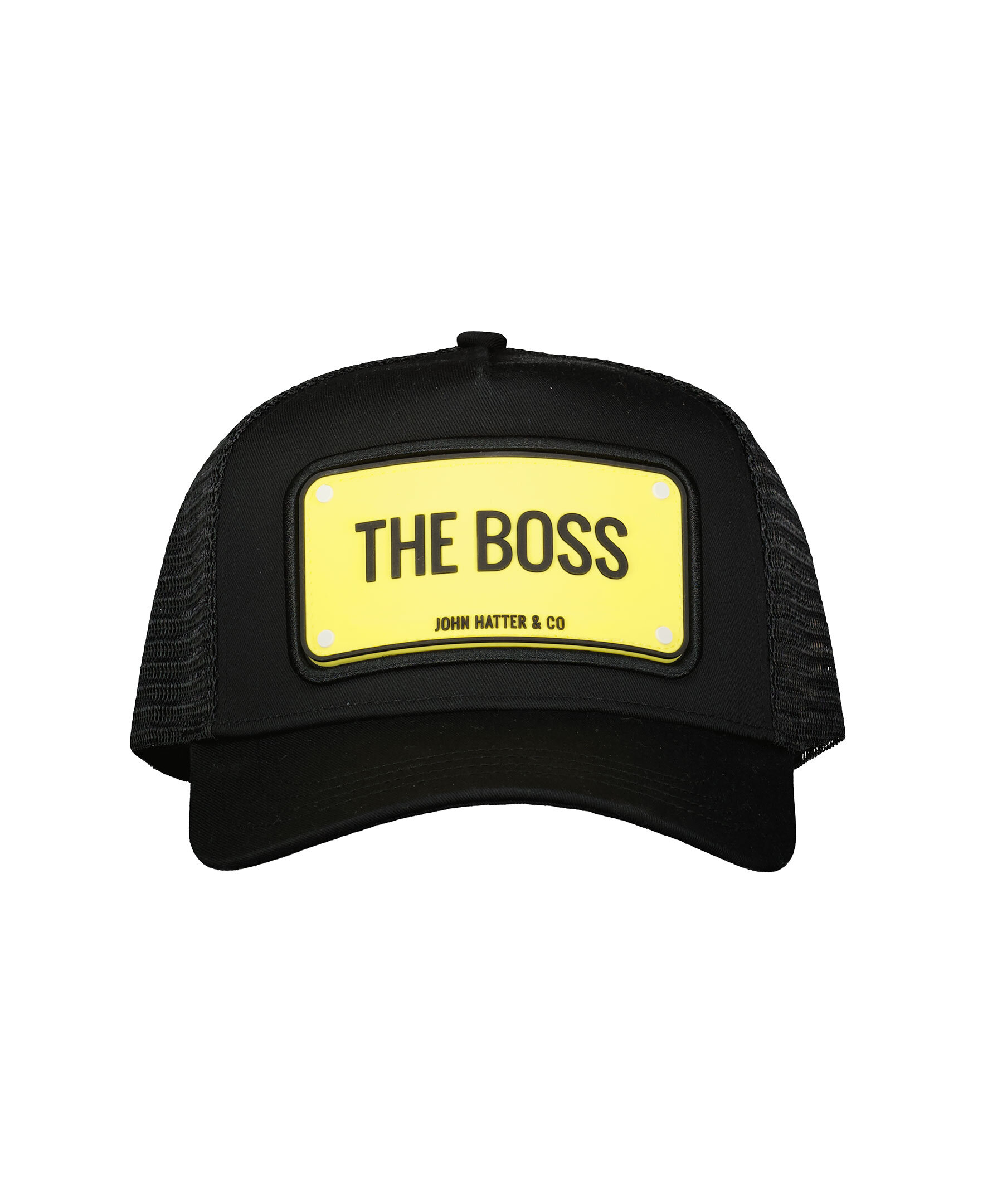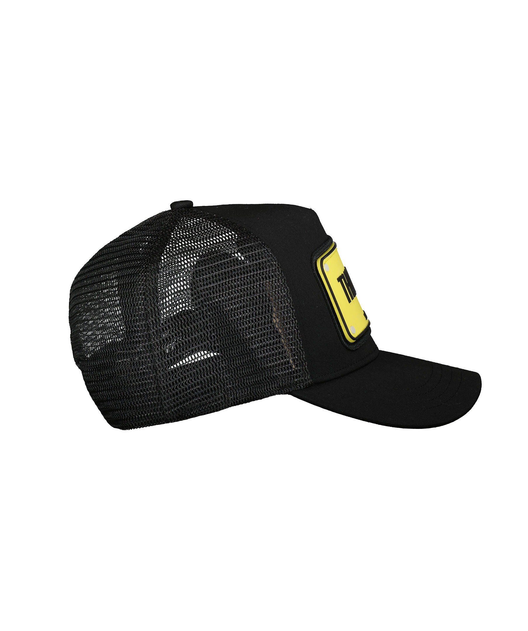 Svart keps i trucker-basebollmodell från John Hatter. Gul, fyrkantig patch med svart logotyp. Justerbart spänne baktill. Tillverkad i en bomullsblandning.