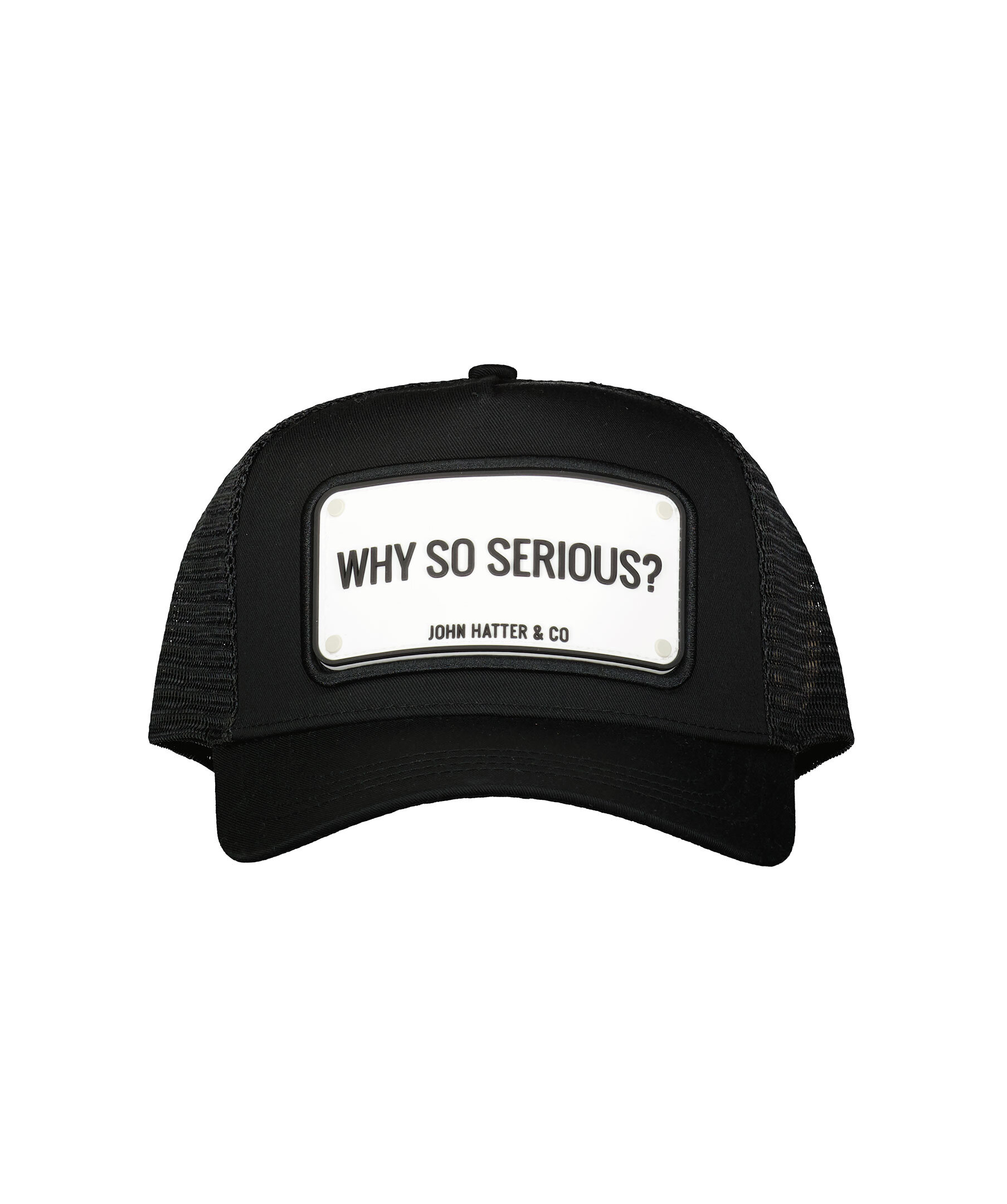 Svart keps i trucker-basebollmodell från John Hatter. Vit, fyrkantig patch med svart logotyp. Justerbart spänne baktill. Tillverkad i en bomullsblandning.