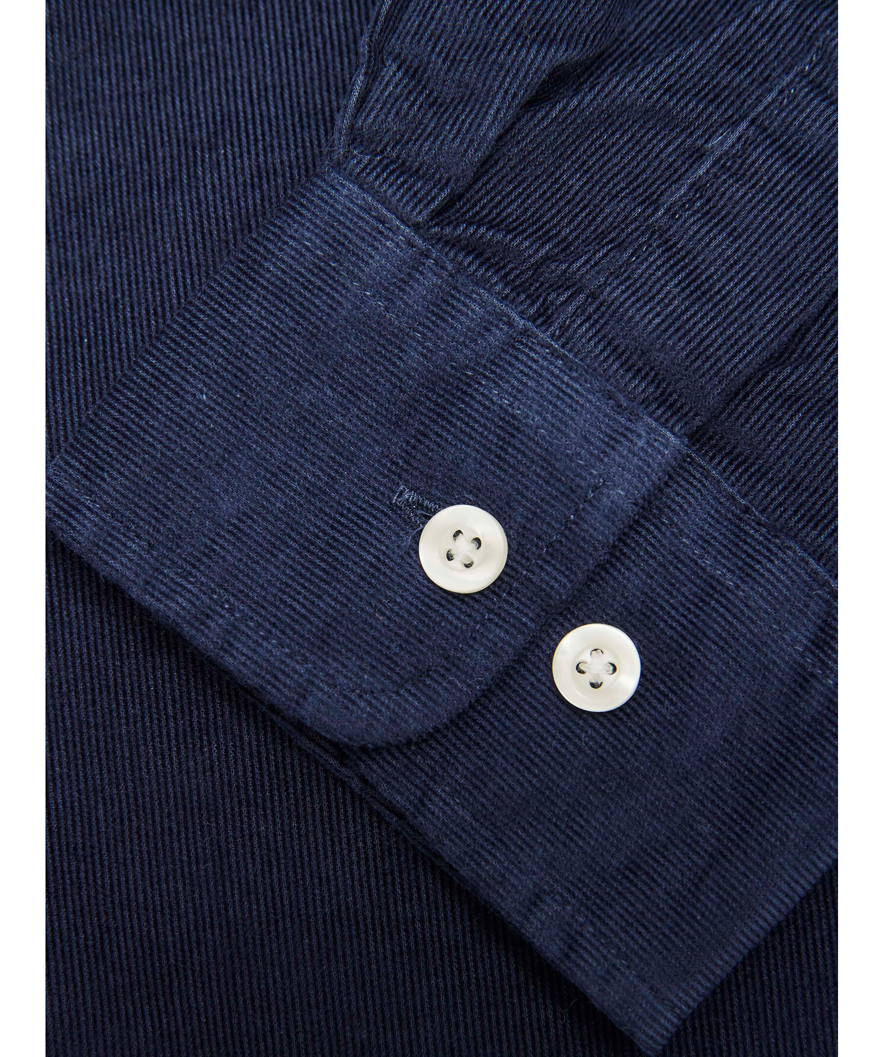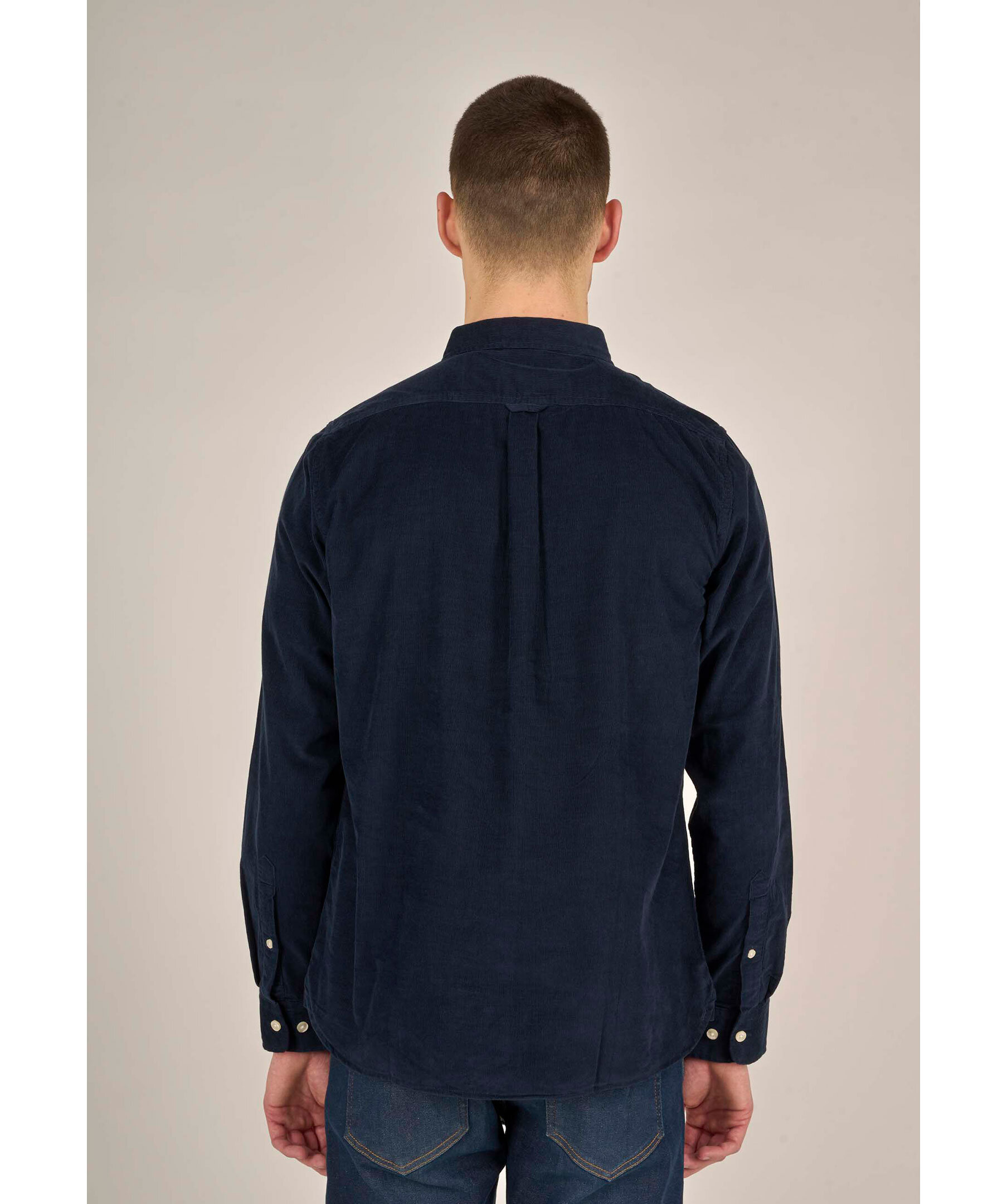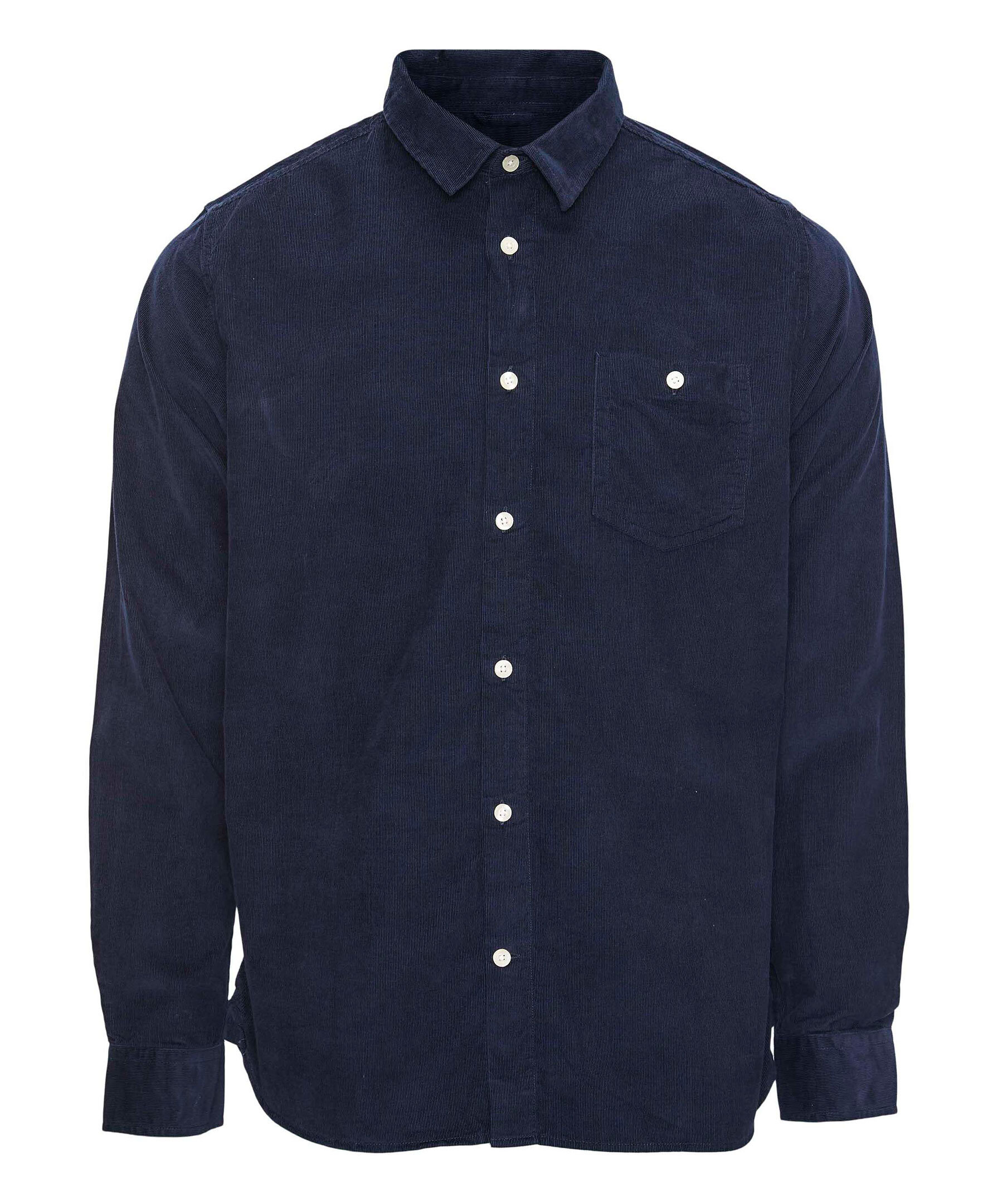 Mörkblå manchesterskjorta från Knowledge Cotton. Bröstficka med knapp och gjord i 100% bomull.