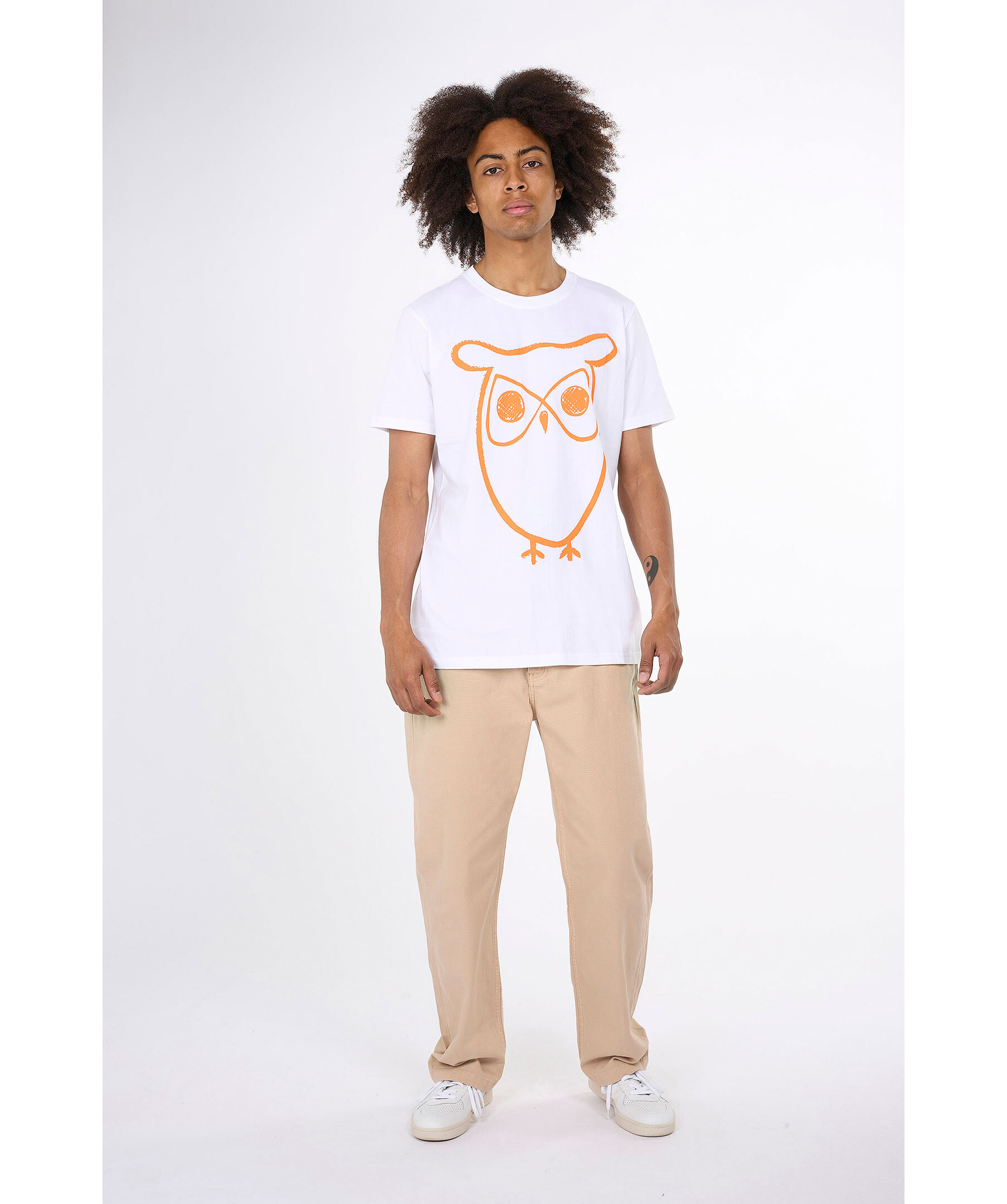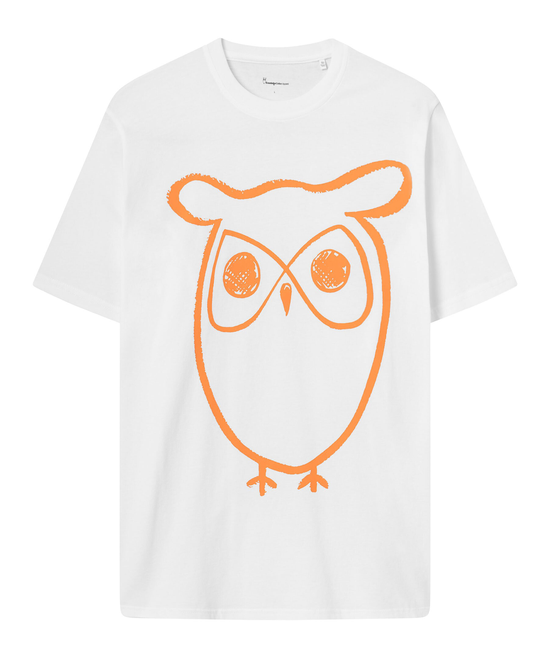 Vit t-shirt från Knowledge Cotton. Tröjan har ett stort tryck föreställande en uggla på framsidan. Gjord i bomull.