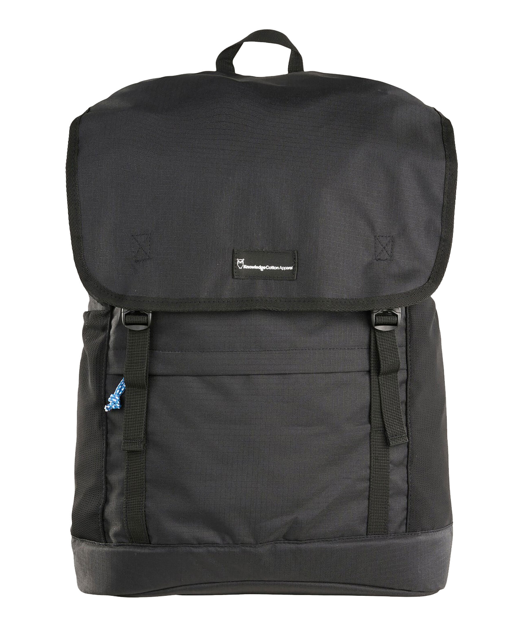 Svart ryggsäck från Knowledge Cotton Apparel. Denna 30L ryggsäck har ett främre fack med dragkedja, sidofack i elastiskt mesh och ett huvudfack med invändigt utrymme för laptop. Inuti huvudfacket hittar du ett litet fack med dragkedja för dina tillbehör. Ryggsäcken har justerbara axelband för att säkra en perfekt passform och dragkedja för enkel åtkomst. Höjd: 48 cm, Bredd: 28 cm, Djup: 15,5 cm.