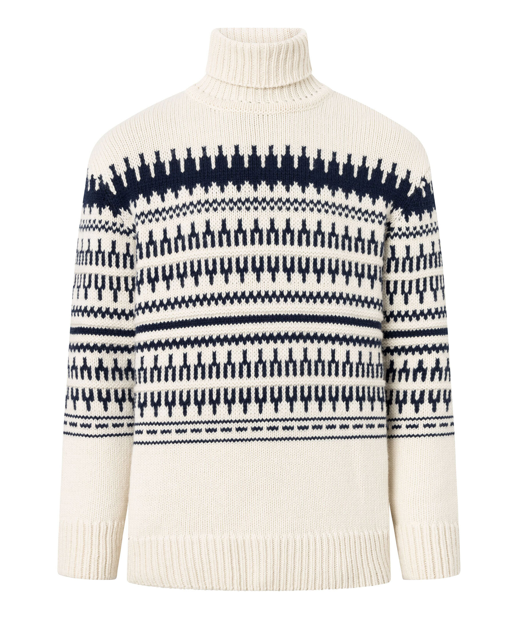 Knowledge cotton Knitted Pattern Roll Neck - Beige