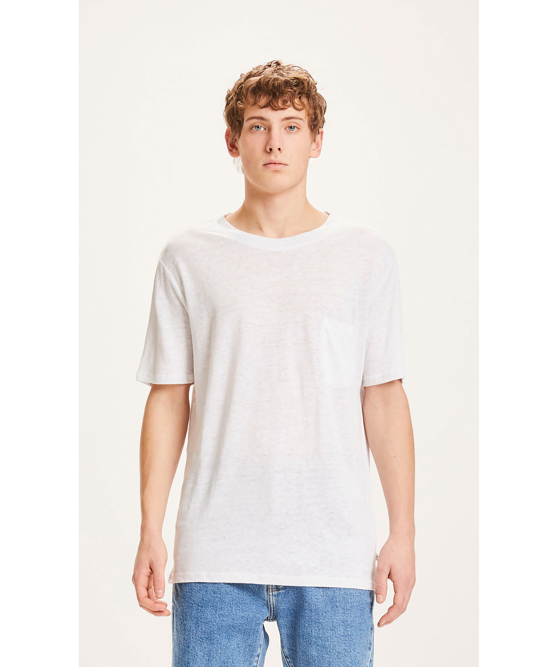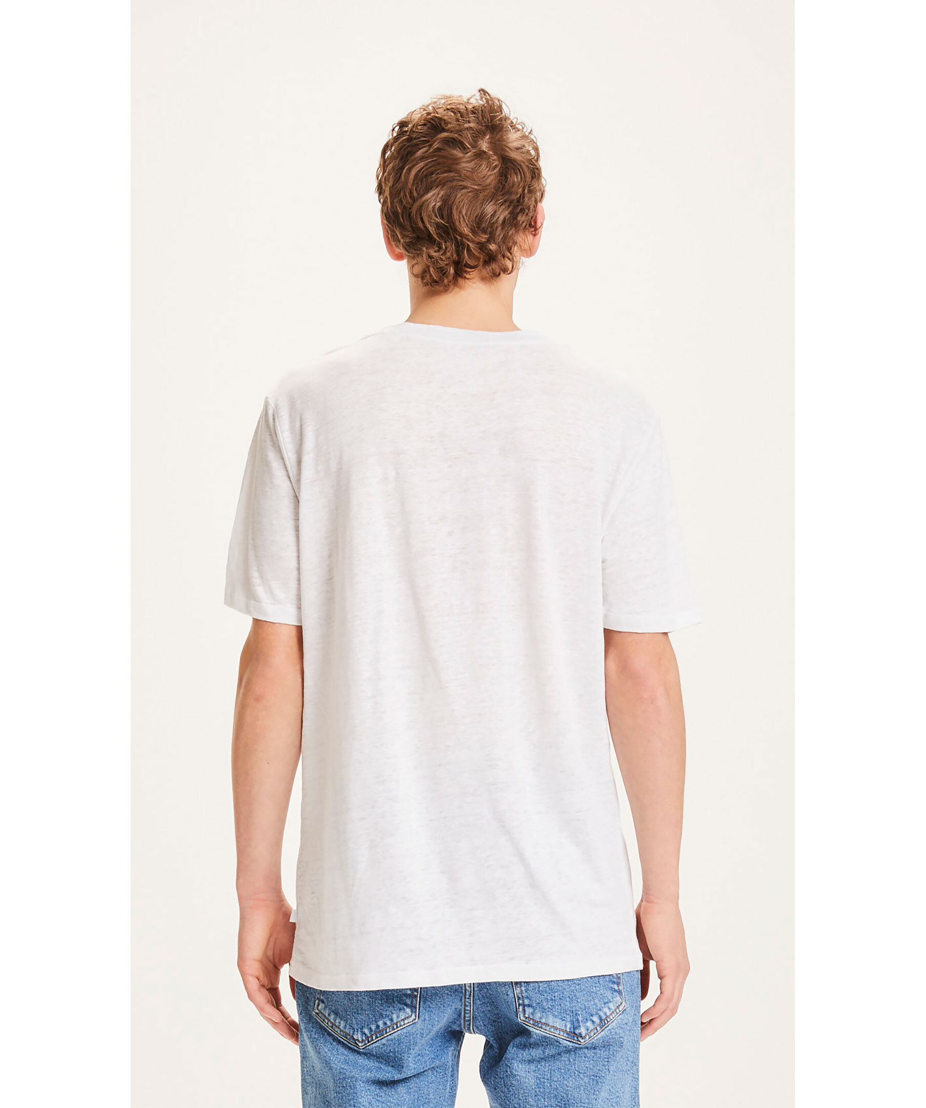 Vit mjuk t-shirt från Knowledge Cotton. Tillverkad i 100% ekologisk linne. Avslappnad passform med något tappade axlar. Rundad halsring.