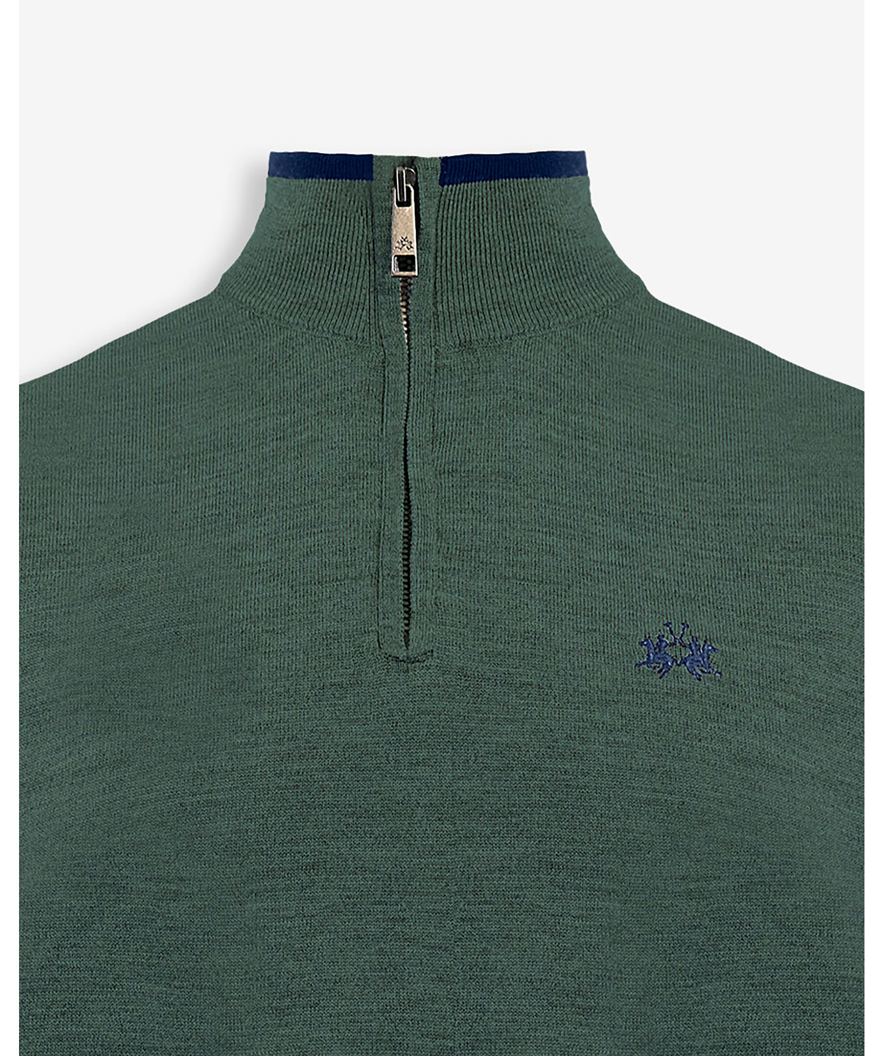 Grön Half Zip från La Martina – en stilren och tidlös tröja i merinoull. Tröjan har en hög krage med dragkedja och en slim fit som ger ett elegant intryck. Den mjuka merinoullen ger både värme och komfort, samtidigt som den andas och reglerar kroppstemperaturen. Perfekt som ett lättare mellanlager under höst och vinter eller som ett stilrent plagg för både vardag och fest.