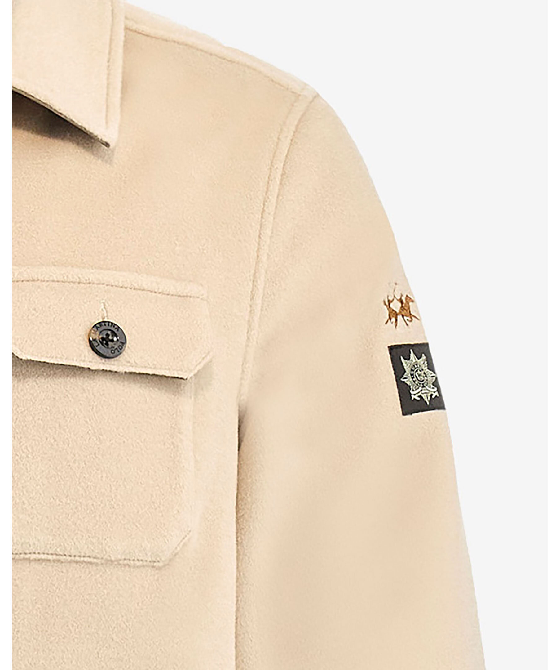 Långärmad fieldjacka för herr i en exklusiv ull- och kashmirblandning. Den kombinerar värme och komfort med en sofistikerad look. Jackan har frontöppning och ärmslut med stora knappar i imiterad horn, samt två påsydda bröstfickor som ger en sportig känsla.