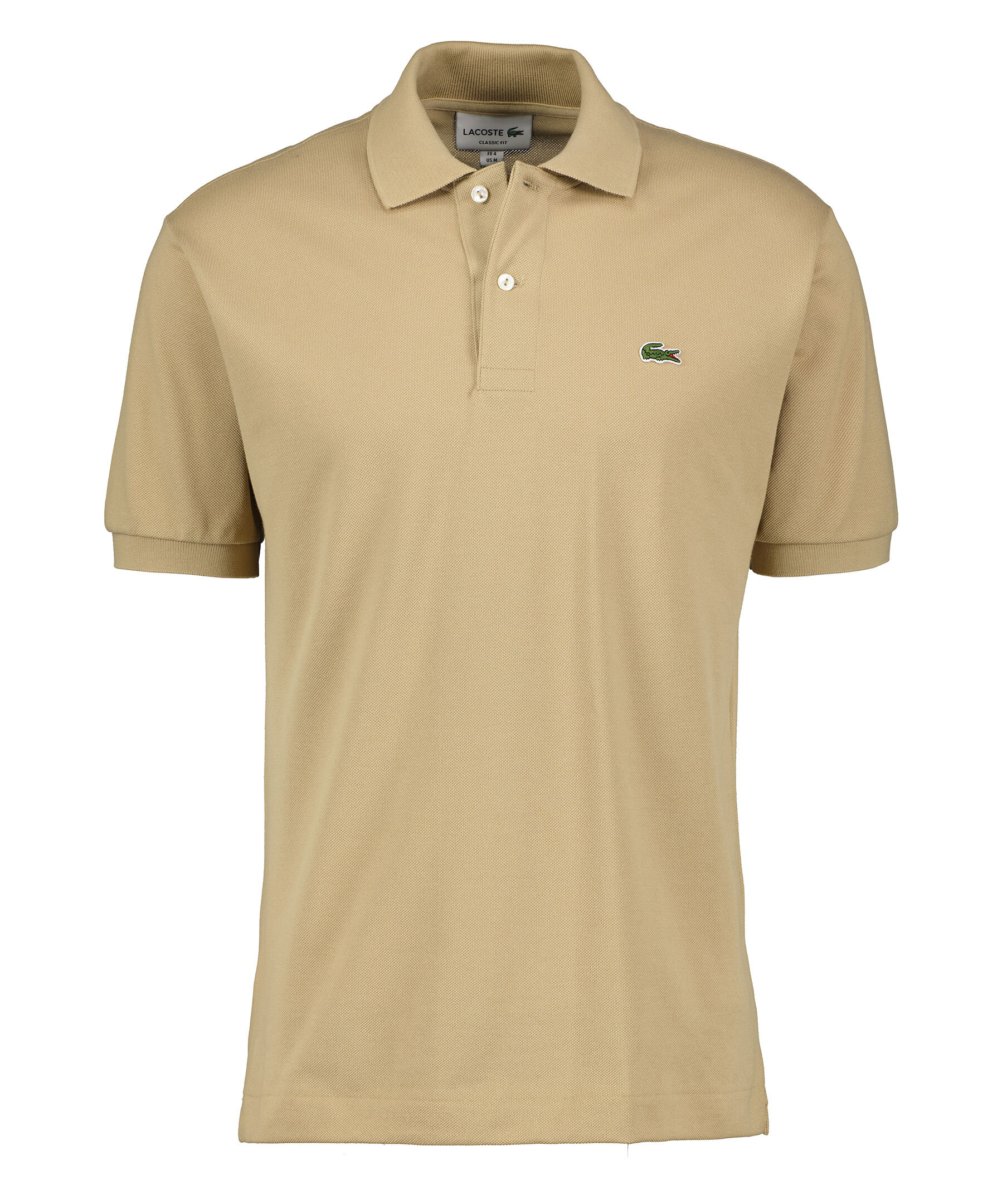 Beige pikétröja från Lacoste. Tillverkad i 100% Bomull. Logga broderad på bröstet, två knappar fram, spetsig krage och korta slitsar i sidorna.
