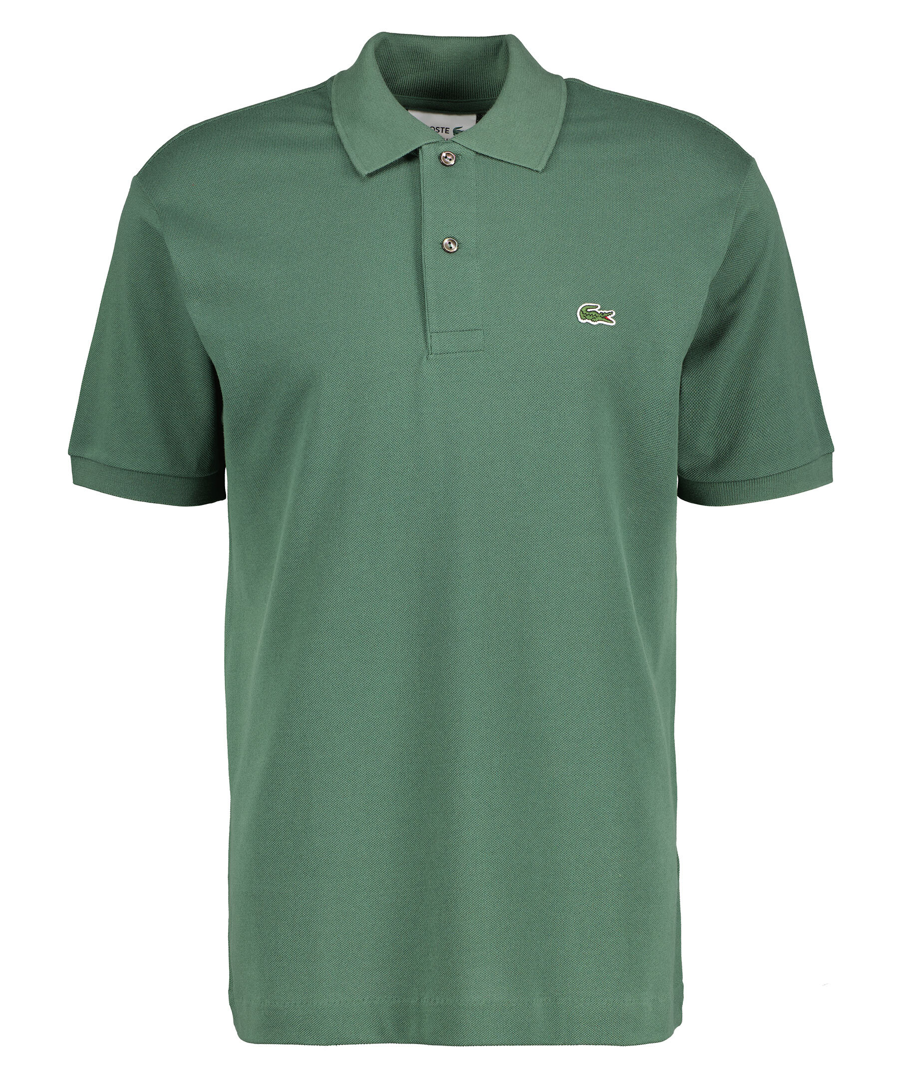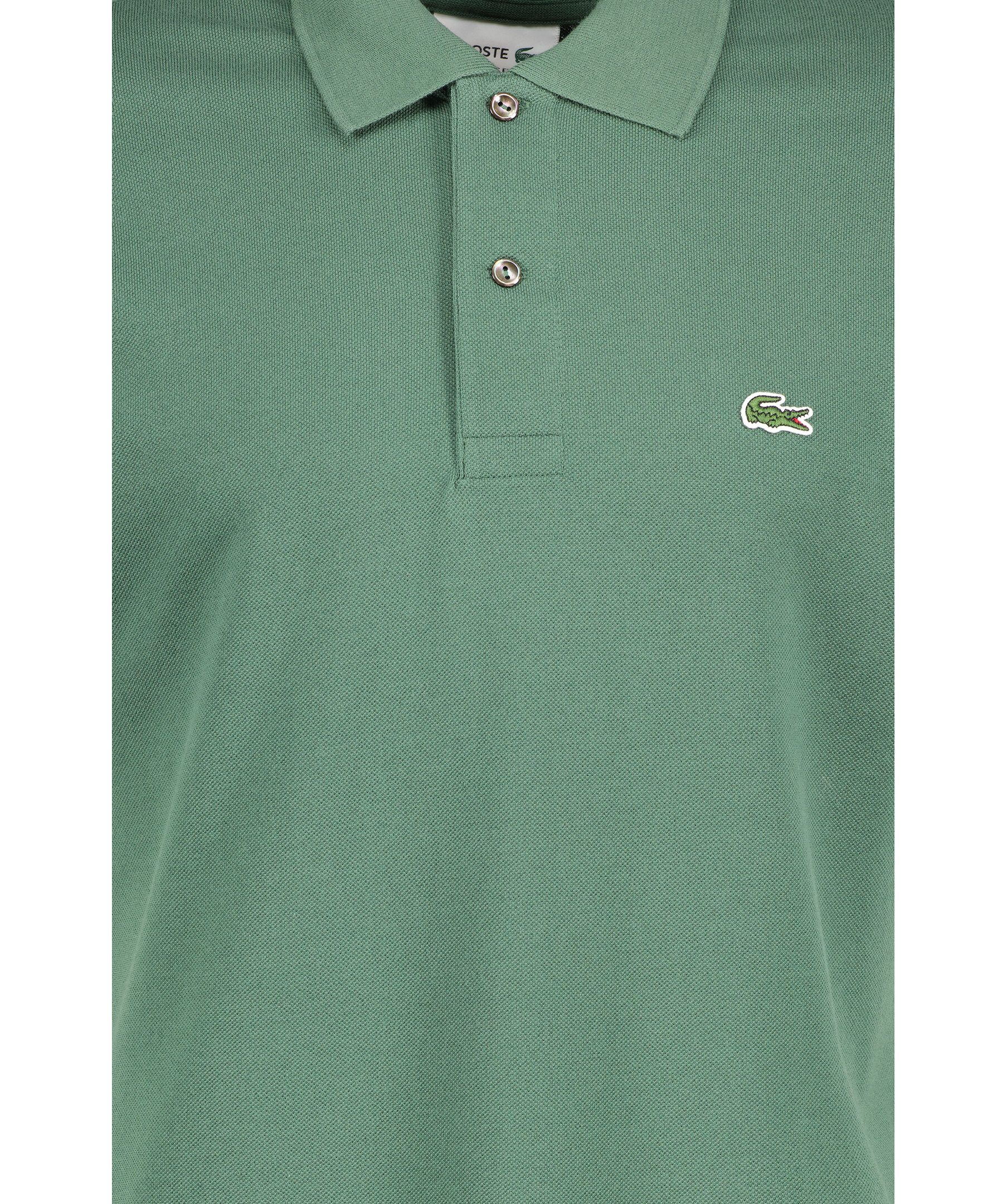 Grön pikétröja från Lacoste. Tillverkad i 100% Bomull. Broderad logotyp på bröstet, två knappar fram, spetsig krage och korta slitsar i sidorna.
