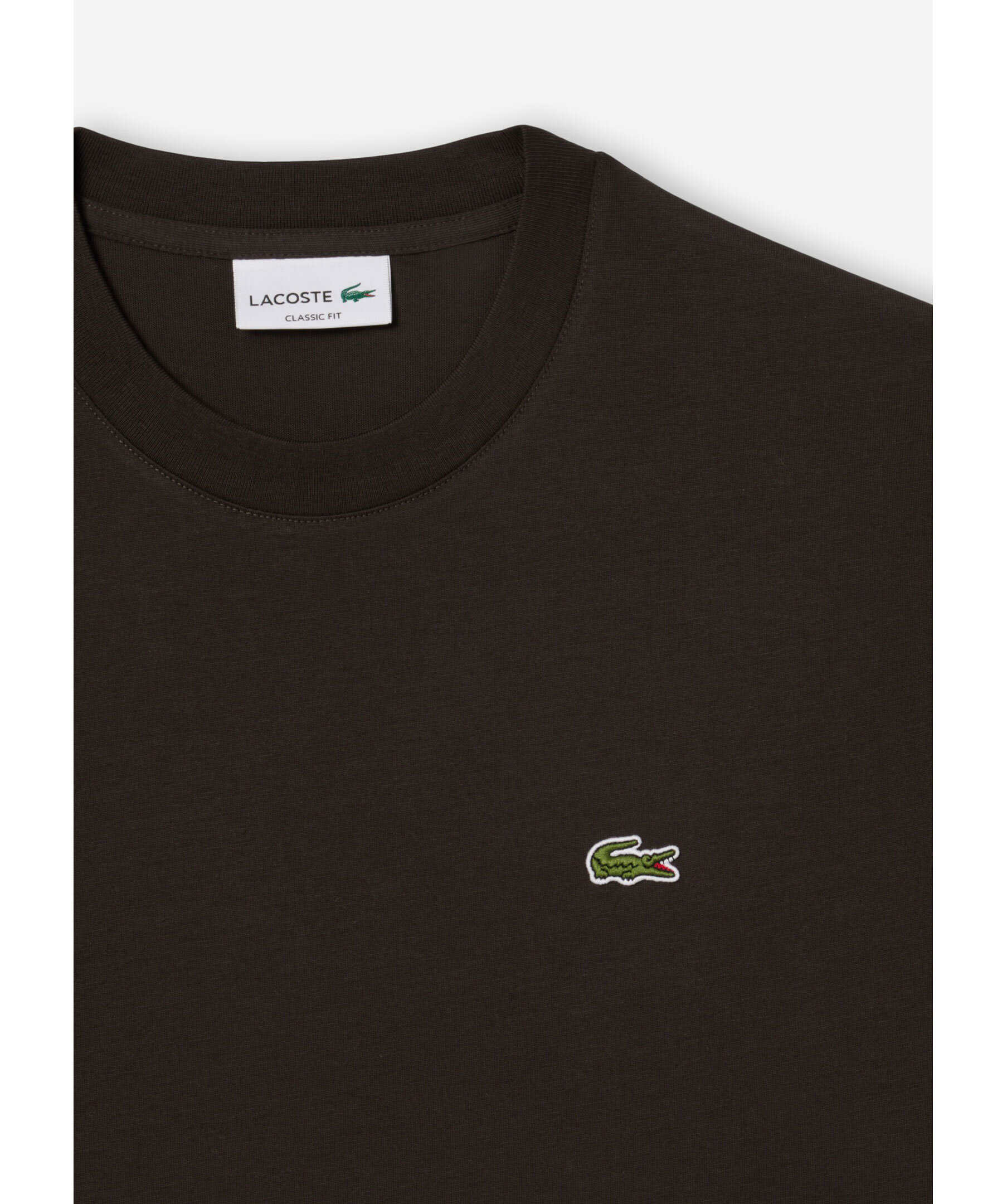 Mörkbrun t-shirt från Lacoste. T-shirten har rundad halsringning samt en broderad patch-logotyp på bröstet. Tillverkad i 100% bomull.