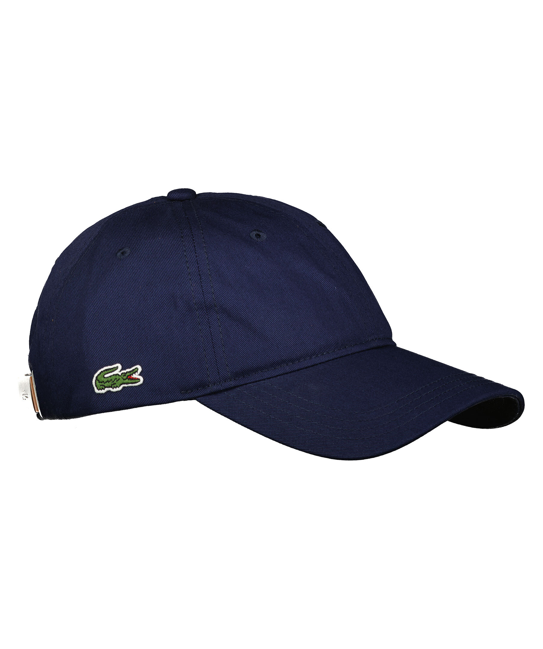 Marinblå keps från Lacoste gjord i 100% bomull. Liten krokodil broderad på ena sidan och en reglerbart spänne i läder baktill.