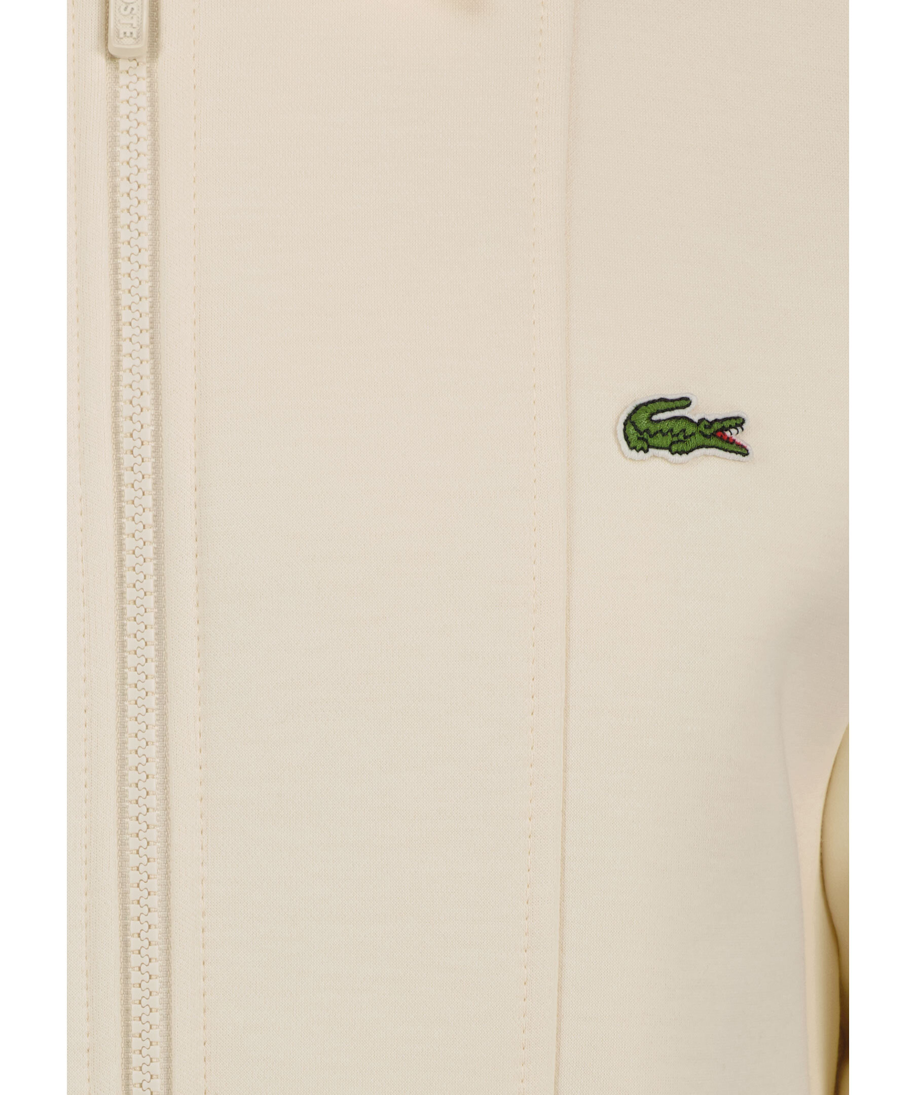 Benvit full-zip tröja från Lacoste. Tröjan har broderad patch på bröstet, hel dragkedja och två horisontala fickor med dragkedja. Tillverkad i en bomullsblandning.