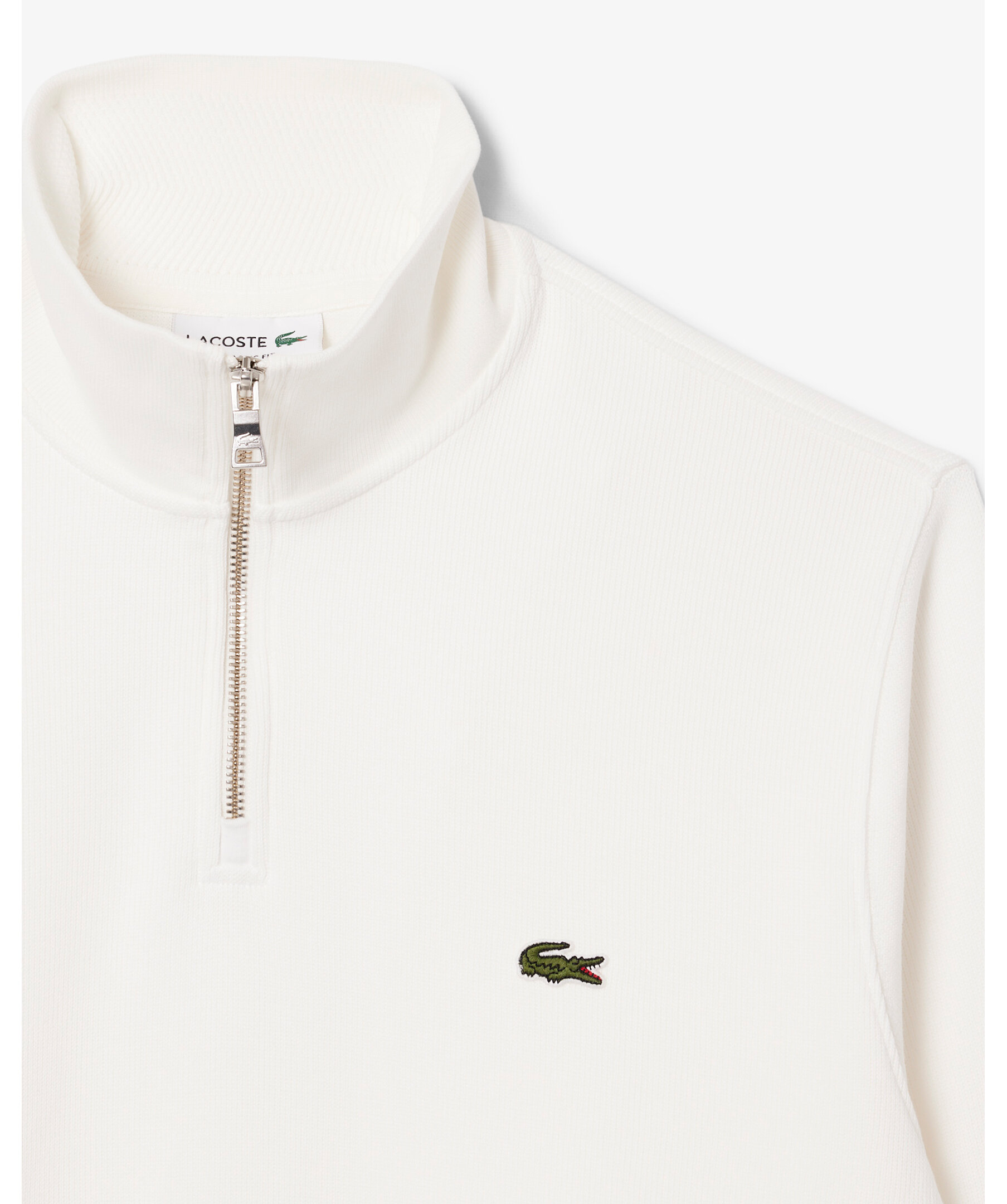 Sweatshirt från Lacoste med hög, dragkedjeförsedd krage och classic fit för avslappnad komfort. Tillverkad i ribbad bomullsinterlock i en enfärgad, minimalistisk design med diskreta detaljer som jacquardvävt chevronmönster i nacken. Avslutad med den broderade krokodilen på bröstet.