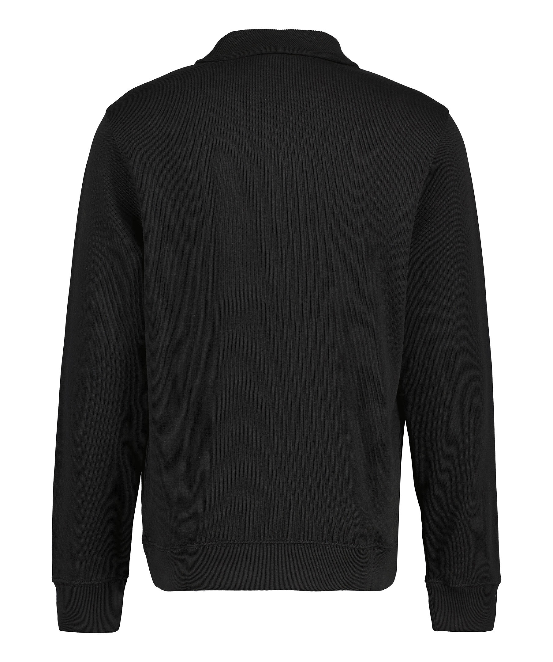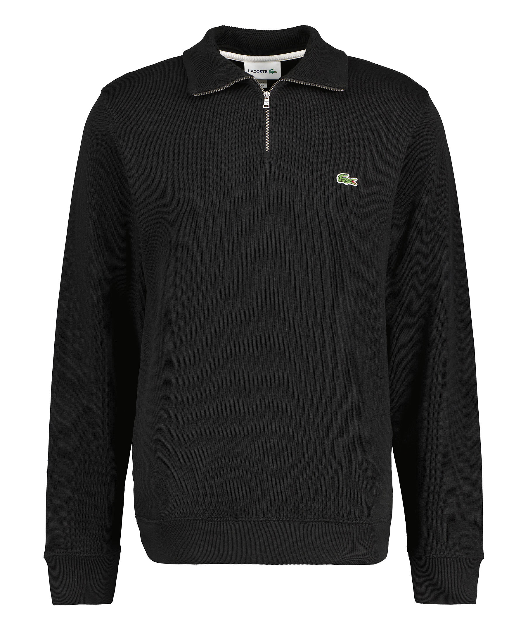 Svart ribbad half-zip från Lacoste. Broderad patch. Ribbstickad mudd vid ärm- och plaggslut och kragen. Fickor i sidan. Tillverkad i 100% bomull.