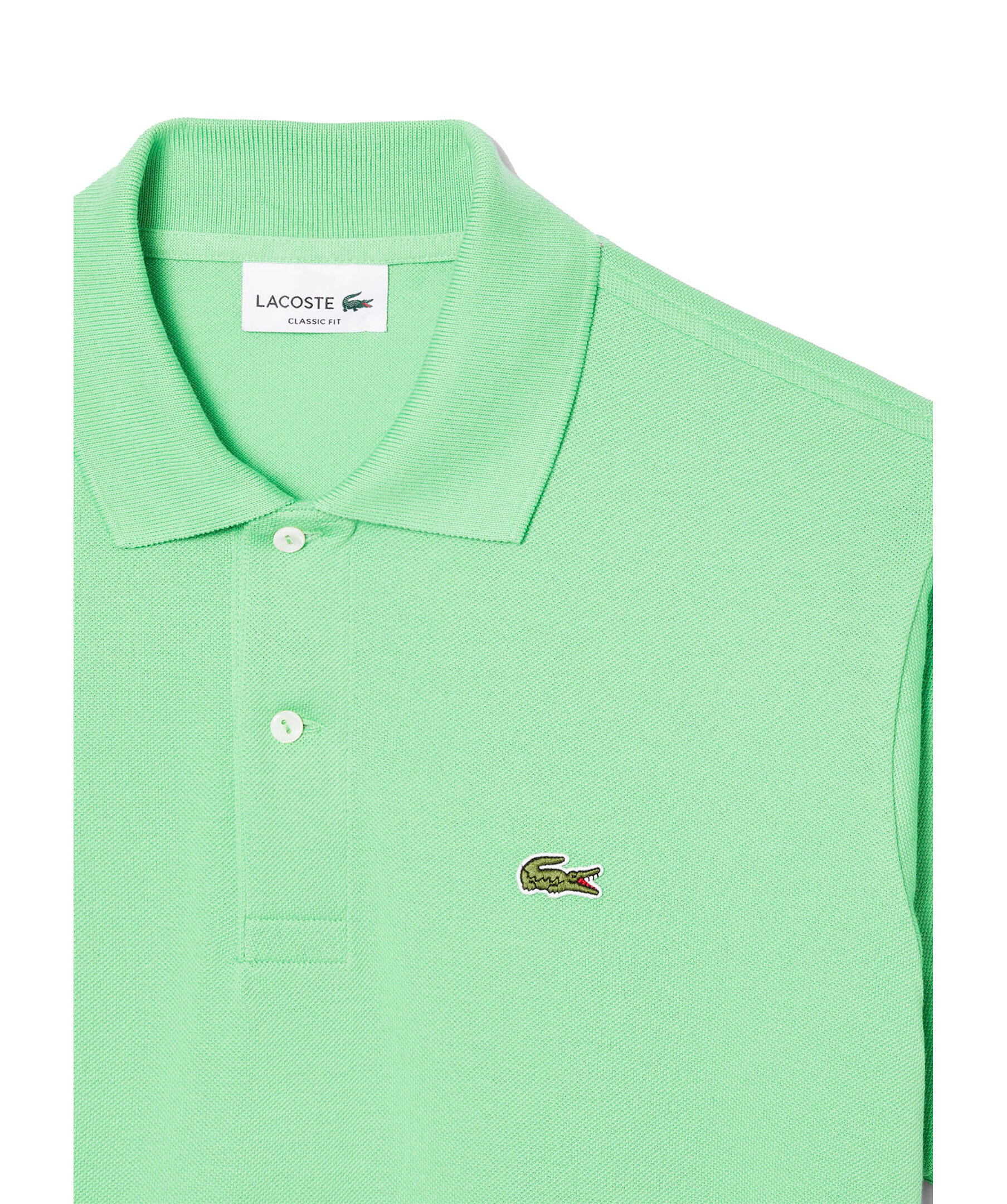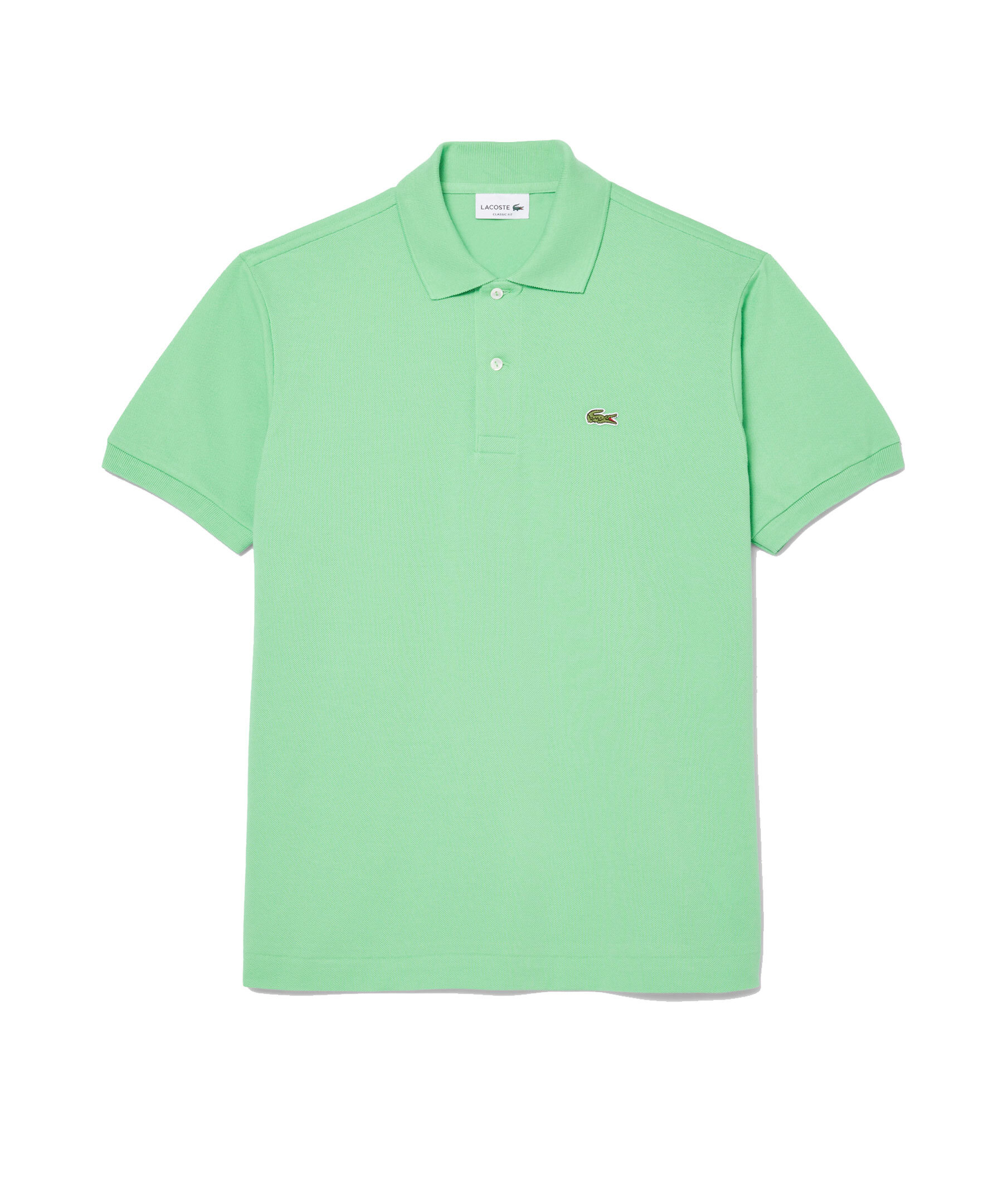 Ljusgrön pikétröja från Lacoste. Broderad logotyp på bröstet, två knappar fram, spetsig krage och korta slitsar i sidorna. Tillverkad i 100% bomull.