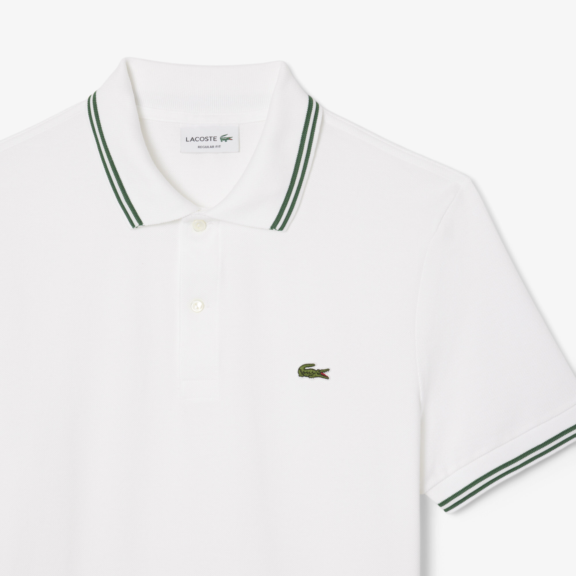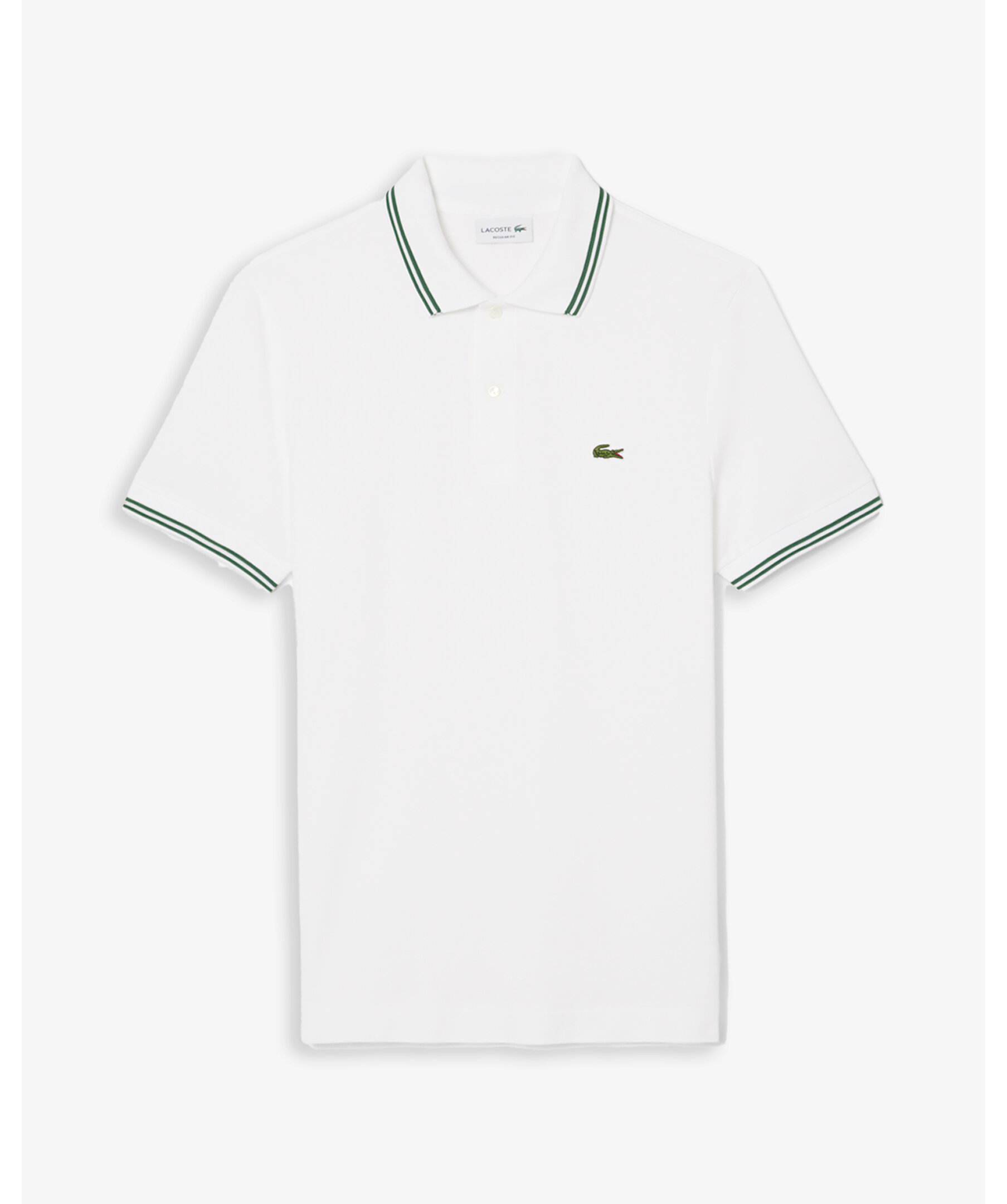 Piké från Lacoste i regular fit, tillverkad i märkets ikoniska petit piqué. Plagget har subtila kontrastdetaljer på krage, ärmar och knappslå samt äkta pärlemorknappar. Avslutad med den broderade krokodilen för en sofistikerad, tidlös look.