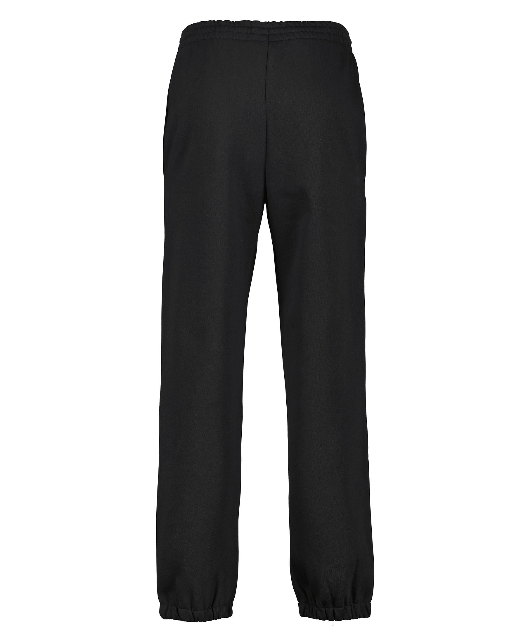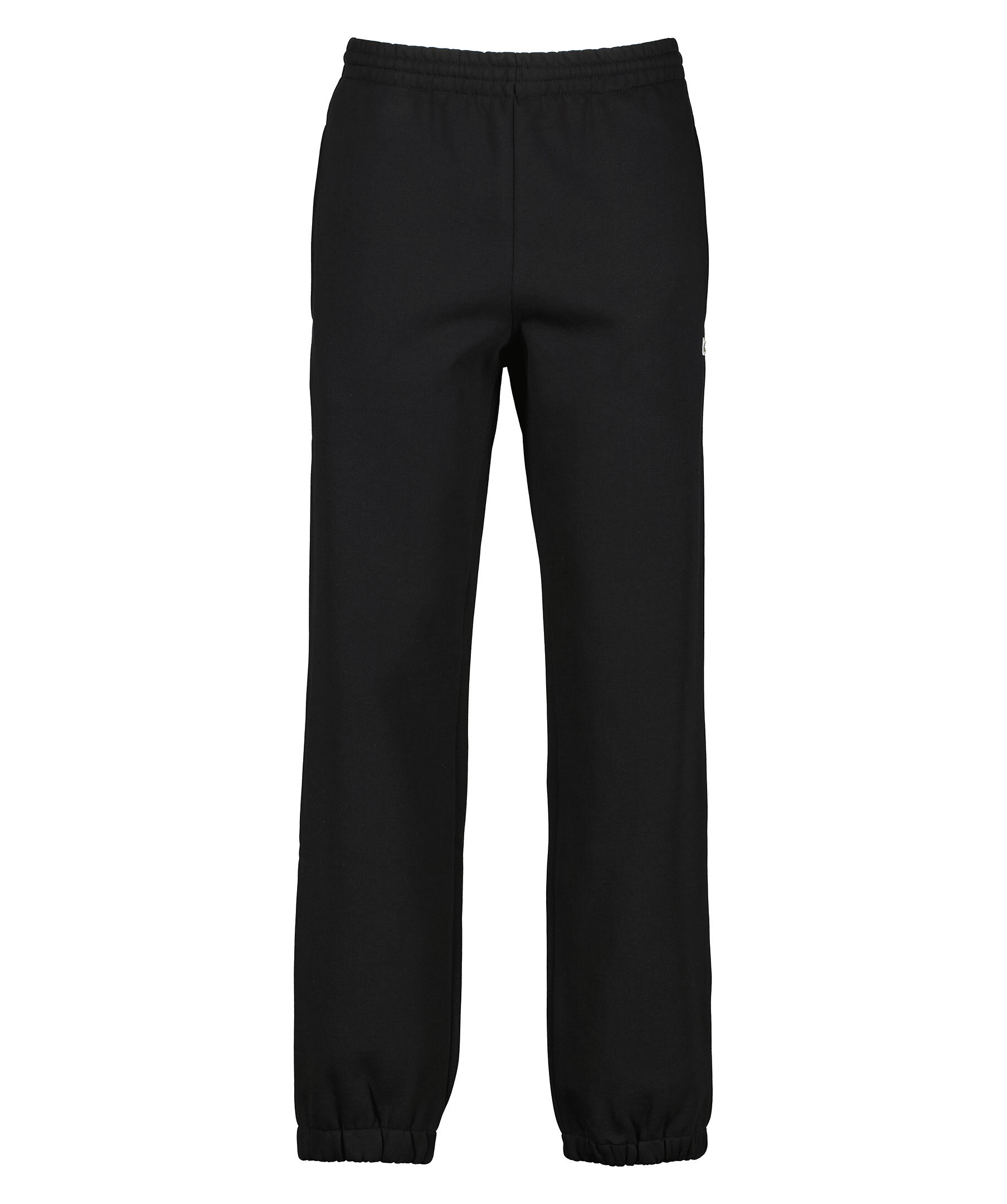 Svarta mjukisbyxor från Lacoste. Mudd i benslut och i midjan, i midjan finns också en dragsko med snörning. Två fickor i sidorna och en liten, broderad logotyp på den vänstra sidan. Tillverkade i bomullsblandning med mjuk borstad insida.