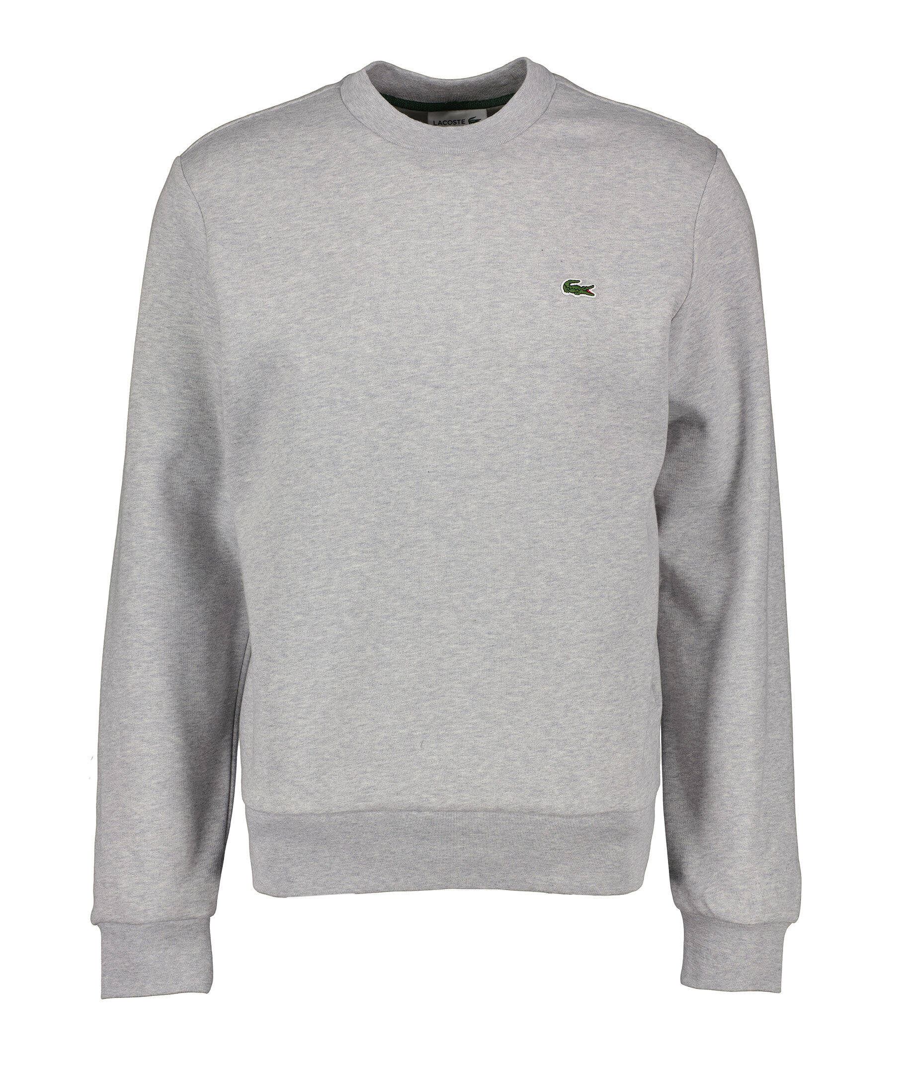 Grå sweatshirt från Lacoste. Broderad patch med logotyp på vänster bröst och rundad halsringning. Ribbstickade mudd i ringning, ärm- och plaggslut. Borstad insida. Tillverkad av en bomullsblandning.