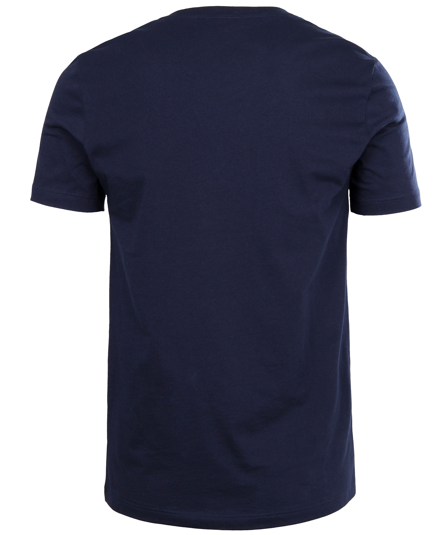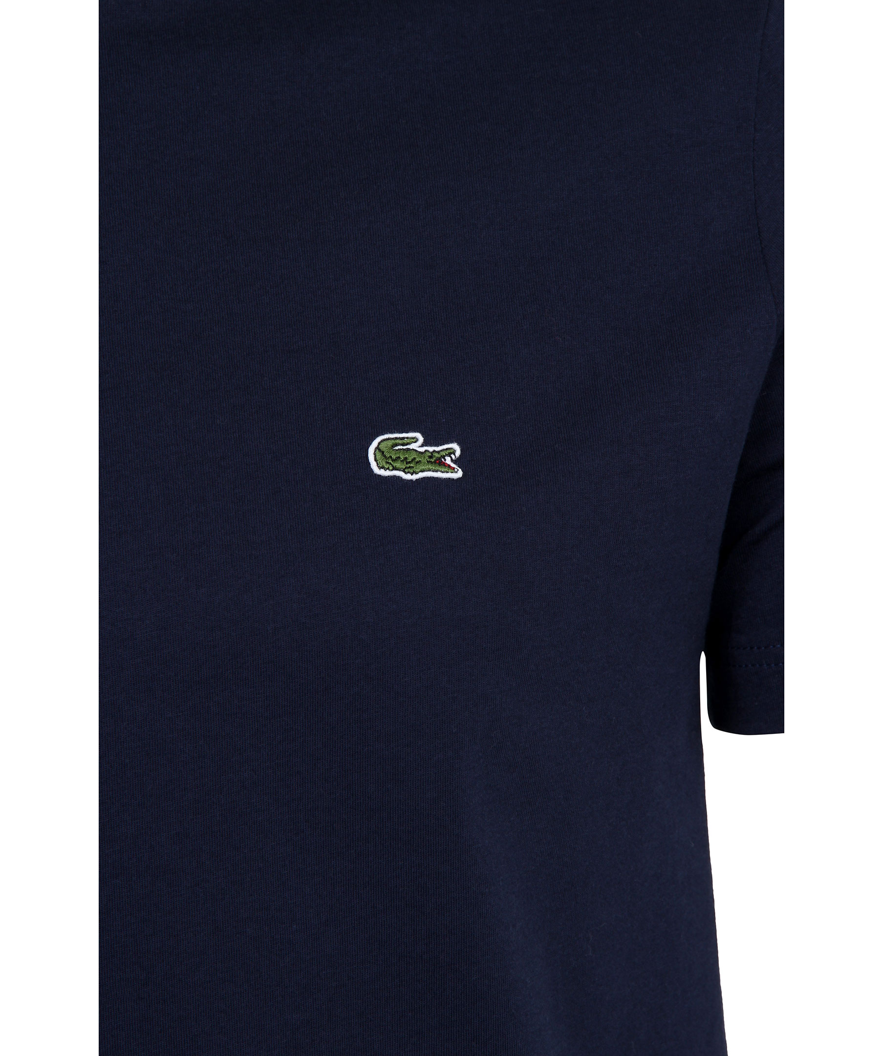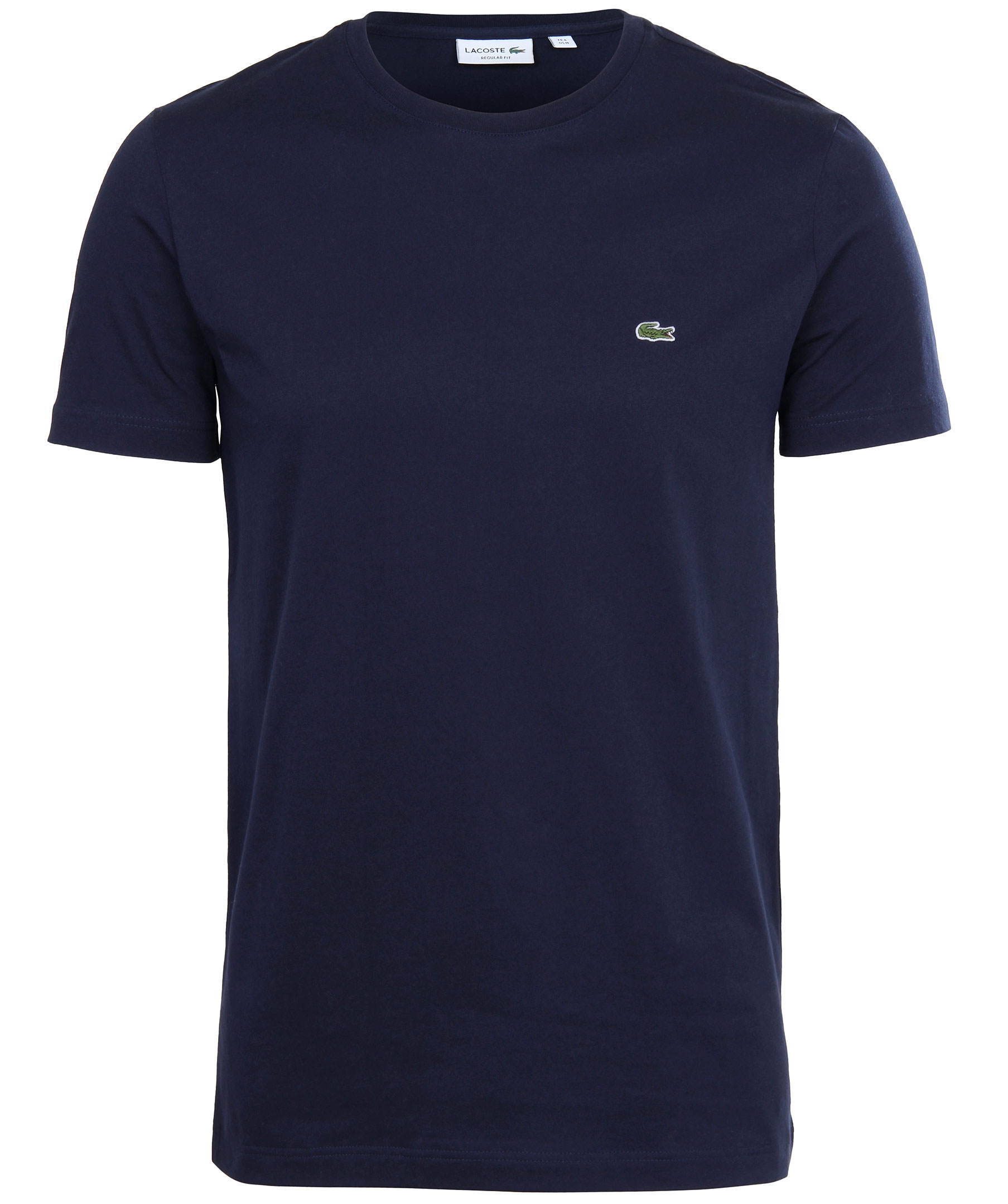 Marinblå t-shirt från Lacoste med broderad krokodil på bröstet. Rundad halsringning med ribbstickad mudd. Tillverkad i 100% Bomull.